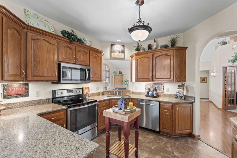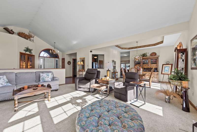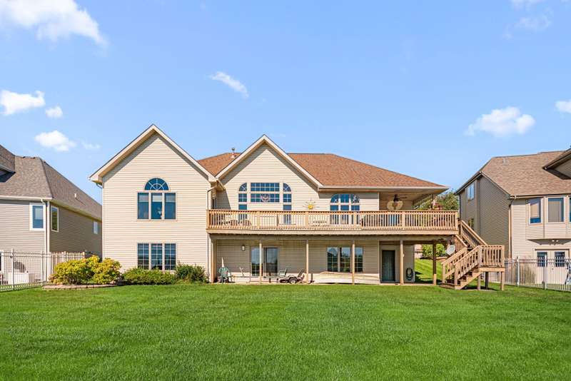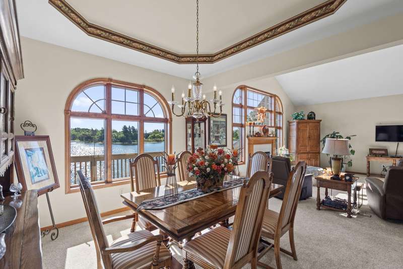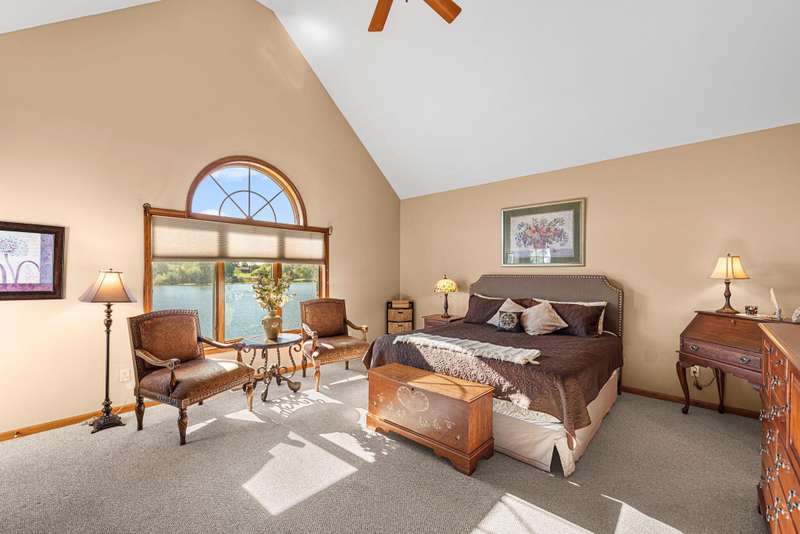 This beautifully maintained ranch-style home features 3 spacious bedrooms, 3.5 bathrooms, a dedicated home office, and a finished walkout basement--offering the perfect blend of comfort and functionality. The open-concept main floor boasts stunning lake views, a modern kitchen, and a seamless flow to the large deck--ideal for entertaining or relaxing outdoors. Each bedroom includes generous closet space, with walk-in closets in the primary suite and guest rooms. Downstairs, the fully finished walkout basement provides expansive additional living space, complete with a large rec room, full bath, and private entry--ideal for a guest suite, in-law quarters, or multi-generational living. Enjoy peaceful mornings by the lake, work-from-home flexibility, and a home that adapts to your lifestyle. Don't miss this exceptional opportunity to own waterfront property with room for everyone! Whether you're working from home, hosting guests, or enjoying peaceful lakefront mornings, this home has it all!