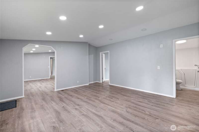Stylishly Remodeled & Move-In Ready! This spacious 3-bedroom, 2-bathroom home is a stunning alternative to new construction or an ADU. Currently located in a well-maintained park with space rent, this home can also be purchased and moved to land you own, offering affordability for any lifestyle. Enjoy vaulted ceilings throughout for a light and airy feel. The updated kitchen features a large island, ample storage, and newer appliances—ideal for gatherings. One bathroom includes a walk-in tub for added comfort. Freshly painted inside and out, the home also includes a bonus room perfect for an office, den, or playroom. Sitting on a fully fenced lot with two storage sheds (if you prefer to stay in the community), this home is a must-see!