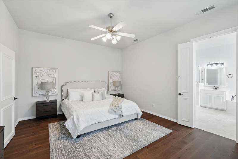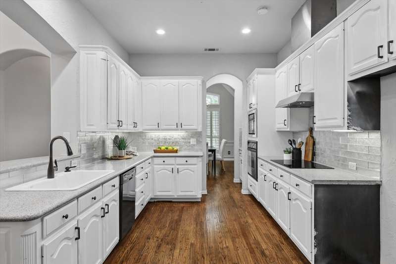 GREAT VALUE UNDER 600K! GATED COMMUNITY. HOMES GO INTO THE 700K in the neighborhood! Welcome to luxurious living in University Park, Irving's prestigious gated community! Nestled minutes from the renowned Las Colinas Country Club, Mandalay Canal, and the vibrant Entertainment District, this home at 3215 Ricci Ln offers an unparalleled lifestyle. Boasting 4 bedrooms and 3 full baths, including a downstairs primary suite, revel in warm hardwood flooring, an inviting open floor plan, and a generous game room or large 4th bedroom with a full bathroom and closet upstairs. The kitchen features 42-inch cabinets, a farmhouse deep sink, granite counters, and an induction cooktop for incredibly fast and precise temperature control. Major updates include a roof replaced in 2023, water heaters (2019 & 2021), and energy-efficient windows installed within the past five years. Community perks abound, from scenic walking trails to a beach volleyball court, basketball court, playground, swimming pool, clubhouse, and gym. Dont miss your chance to call this impeccably maintained property home!