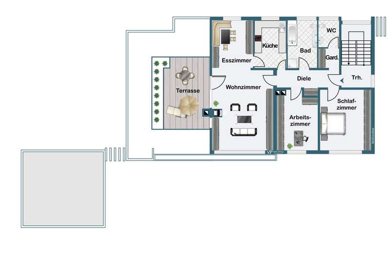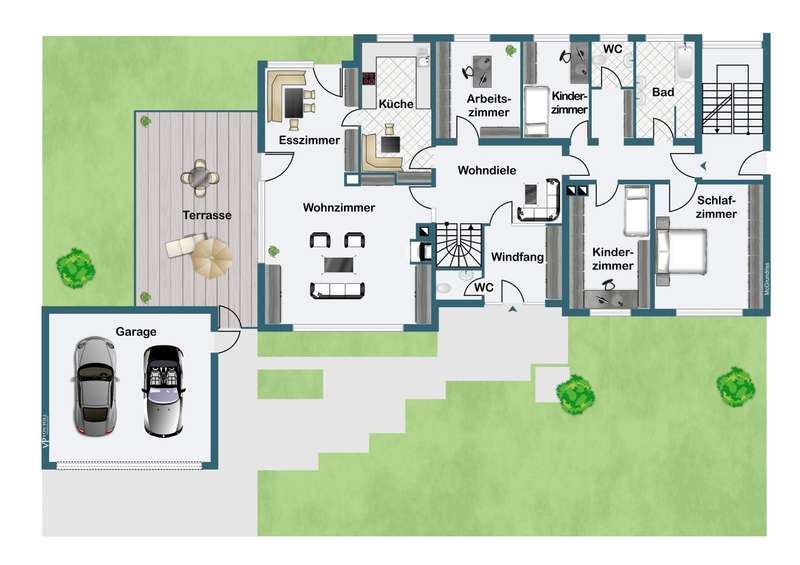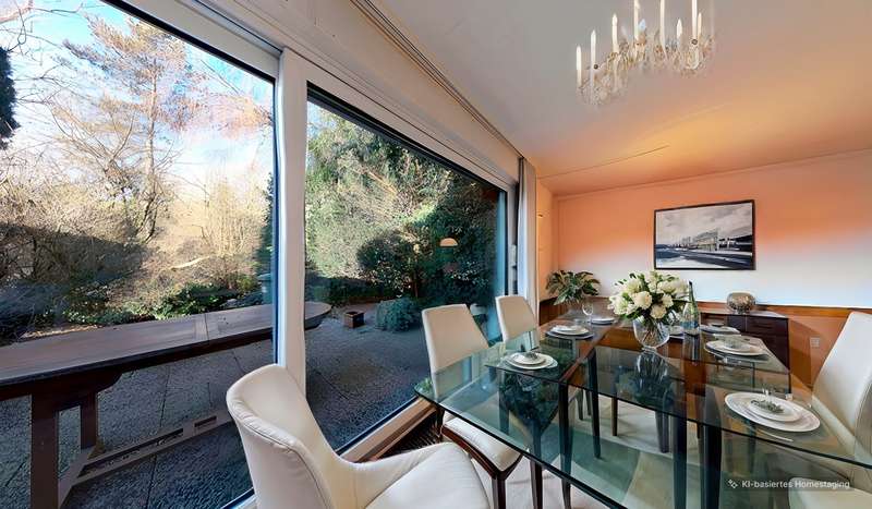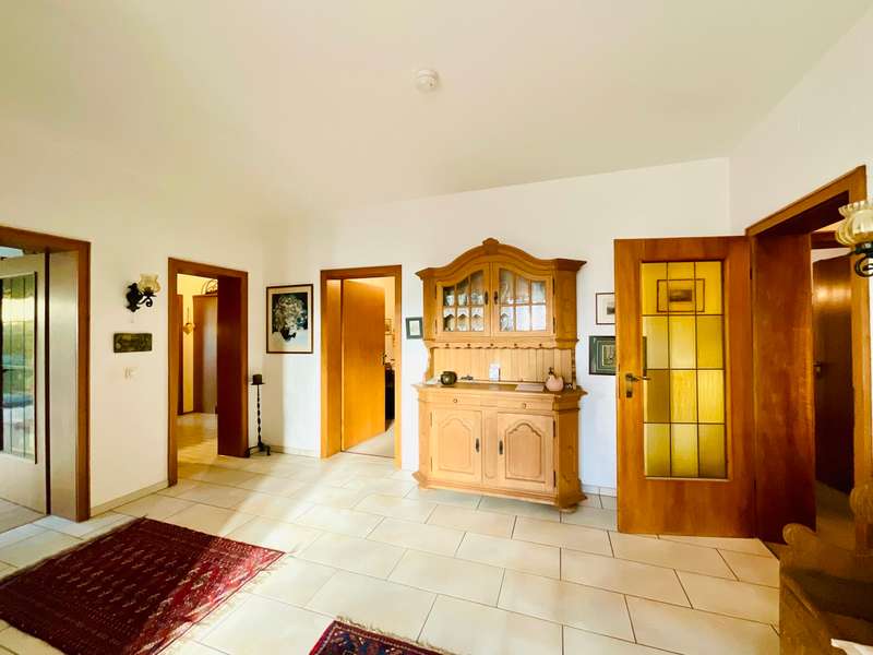 Completed in 1975, this detached one- to two-family house still impresses today with its generous total living space of over 235 m², its large plot (approx. 1,201 m²) and its absolutely prime location in a very quiet and traffic-calmed side street in Mülheim-Broich. Tranquillity and discretion are very important here. The Uhlenhorst and the Nachtigallental are within walking distance of your front door. A jogging and cycling route to the Uhlenhorst runs directly behind your property. The solidly built property has been continuously modernized (e.g. roof, heating, windows, bathrooms) and is now used as a two-family house. The first floor apartment offers approx. 143 m² of living space, which is distributed over a spacious entrance hall, two guest WCs, a full bathroom, a kitchen and a spacious living/dining room as well as four bedrooms and/or study rooms. The upper floor is accessed via a separate entrance and staircase and comprises around 92 m² of living space. Here, too, the new owner has two further bedrooms, a modernized full bathroom, a guest WC, a kitchen and a spacious living/dining room. The upper residential unit has a southwest-facing roof terrace and has been rented to a quiet tenant for 14 years. If required, the apartment can be vacated in 2025. The basement with a modernized shower room, a guest room and a party room, as well as further cellar rooms, completes the large property. A total of three garages and four parking spaces are available for your vehicle fleet, rounding off our attractive real estate offer. The large detached house is ideal as a two-generation home or as "living and working under one roof". A family of several people with the corresponding home office requirements will also find the right property in our offer. If required, we will be happy to provide you with an online viewing link.