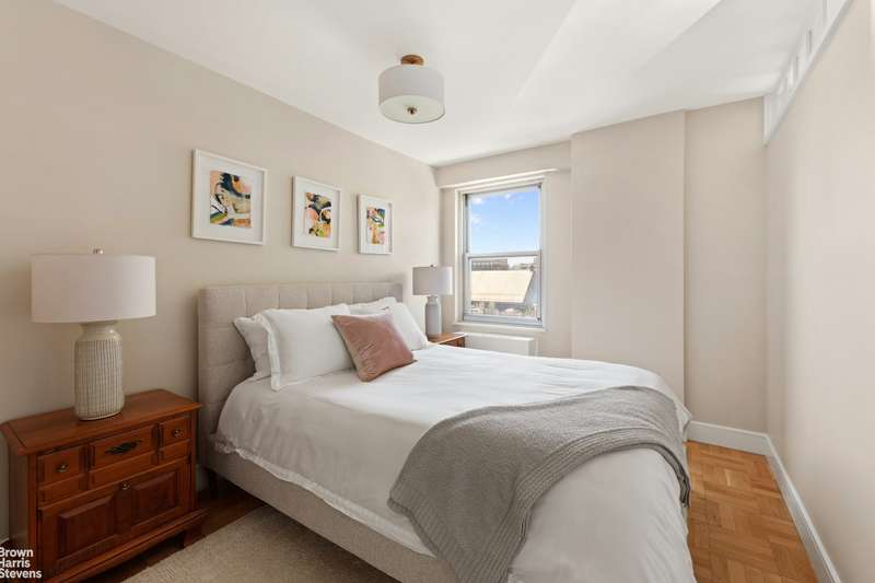 Spacious, Sunny Junior 1 with a South facing ;living/dining area is adorned with hardwood floors throughout. It has ;a renovated galley kitchen with a quartz countertop and custom ; cabinetry. The bedroom is also south facing and it leads to a dressing area with room ;for a vanity or dresser and two ample closets that lead into the newly renovated bath. ; The bath has attractive ceramic tiles and a Carrara marble vanity. Upon entering the gracious entryway, you are greeted by two large custom closets.