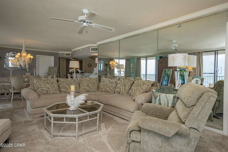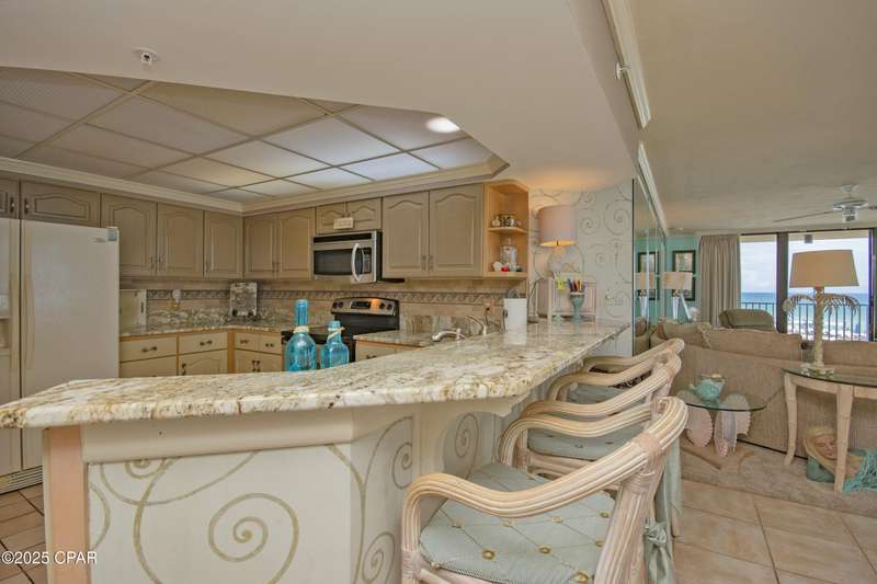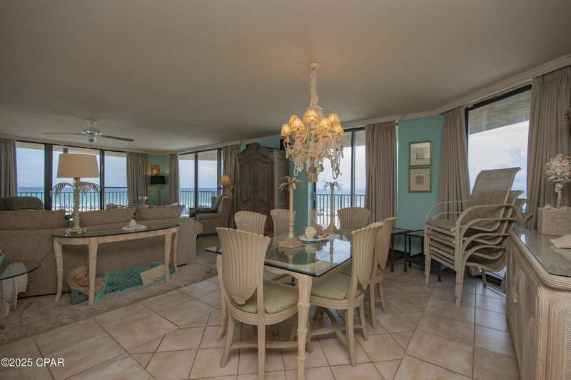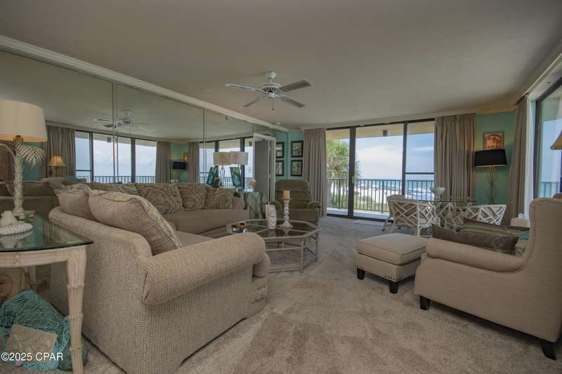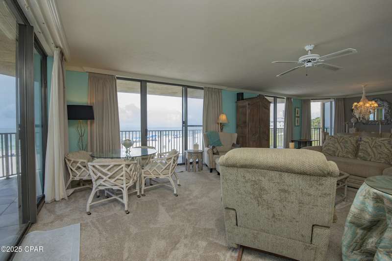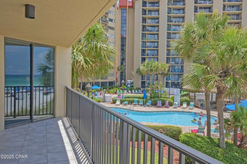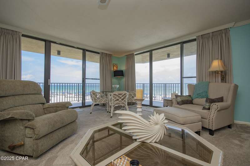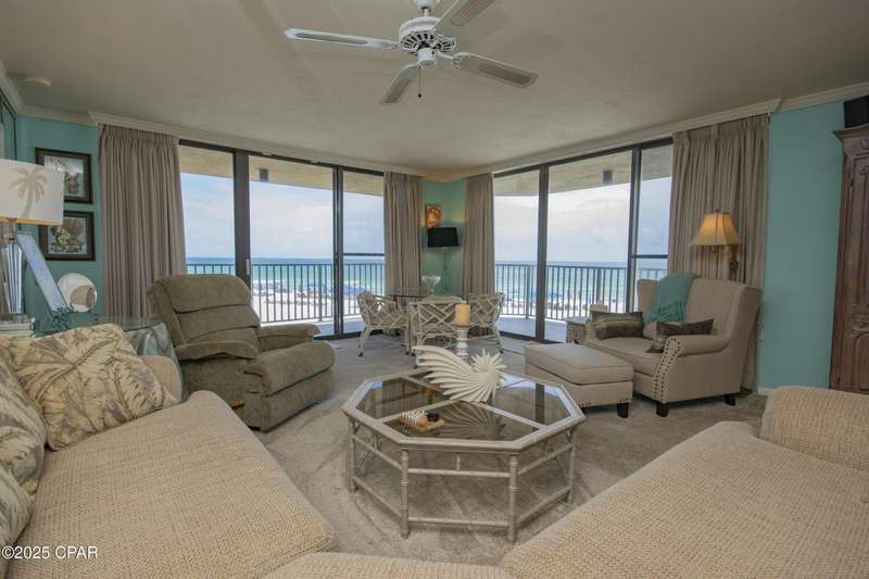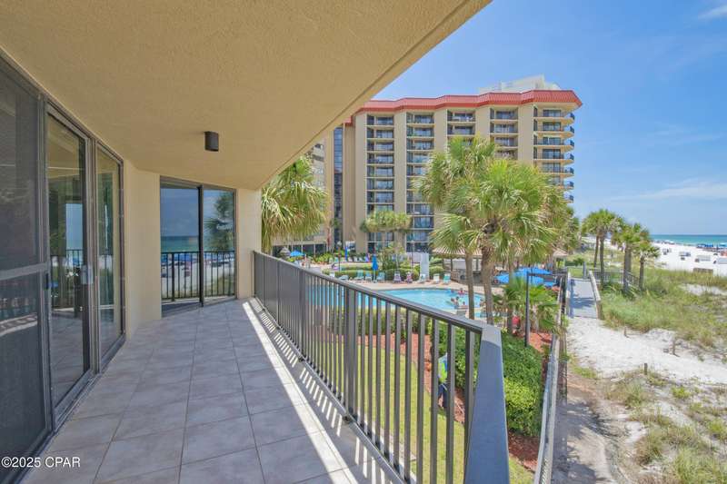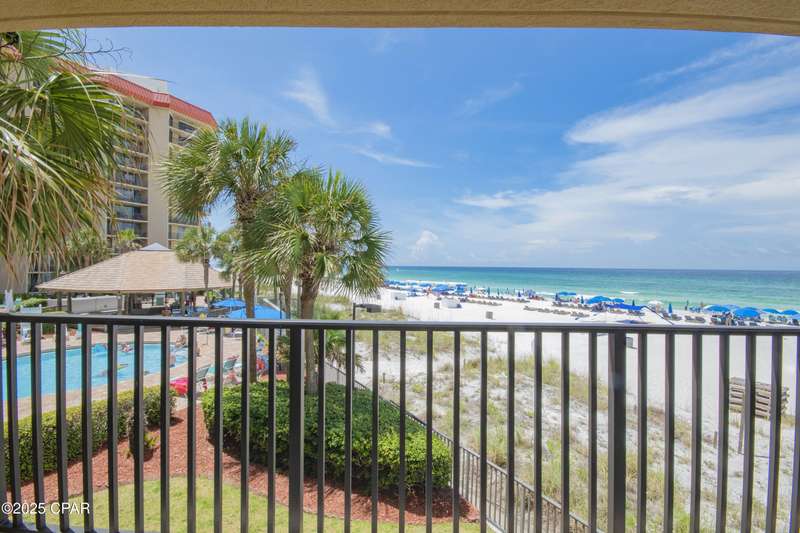 Rarely available Summerhouse ''WRAP-A-ROUND'' Unit. Owners seldom turn loose of these coveted units. If VIEWS are important to you then there is not a better one to be found up and down the beach. You can find larger, more upscale units but you can't find a better view on Panama City Beach. Your view is not obstructed by other buildings or anything else in a Summerhouse Wrap. This is a true unobstructed 180 degree view up and down the beach, not only from the 61-foot balcony but from also inside the unit. This large unit has two master suites with two full baths with an oversized living area. Summerhouse has a reputation of being a family resort and has guest that have been coming for over 30-years. The unit is nicely furnished and accented. It has been a non-rental family unit for a number of years. A Summerhouse Wrap is all about the views. Ceiling to floor windows from one end of the unit to the other give you an almost complete 180-degree view. If you are interested in rental income then the WRAP units are the first choice among visitors. With normal owner usage rental income should be in the $55K-$75K plus per year and for an owner who handles their own unit their potential revenue can be much higher Both bedrooms face the beach, one has a king bed in it and the guest bedroom has two full beds in it. The unit has a fully equipped kitchen and has an adjoining pantry. The countertops, backsplash, harware and cabinets have all been updated. There is plenty of room in this kitchen for the gourmet chef of a pile of sandwich makers. Amenities at Summerhouse include two pools, one which is heated, a kiddie pool, hot tub, gulf front gazebo, handicap ramp to the beach, tennis, pickleball, rachetball, and shuffleboard courts, BBQ area with commercial gas and charcoal grills, a gulf front owners lounge and meeting area, and onsite HOA and rental offices. The Thomas Dr. location makes it convenient to grocery stores, retail and souvenir stores, area restaurants, and close to most of our areas' fishing, diving, and sightseeing fleets. St. Andrews State Park is conveniently located at the end of Thomas Dr.There is nothing better than a sunset over the water and this unit will give you the opportunity for a spectacular sunset every day of the year.The convenient second floor location makes it ideal for family use or as a high end investment condo rental. If you are looking for the best view on Panama City Beach you need to see the view from Wrap-A-Round Unit #215 today.Make Summerhouse, ''YOUR SUMMERHOUSE''NOTE: New Washer/Dryer on July 14