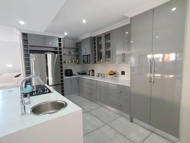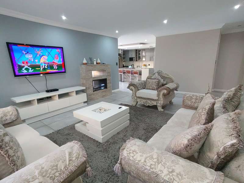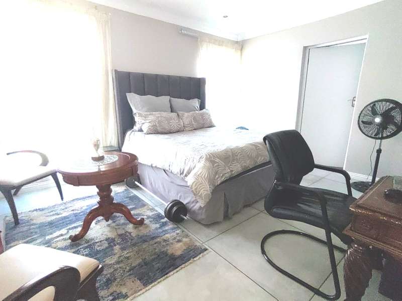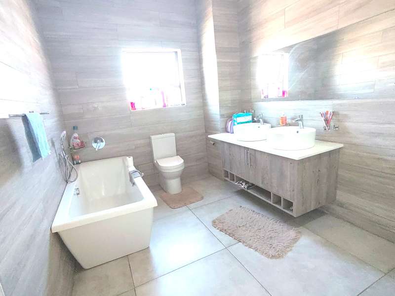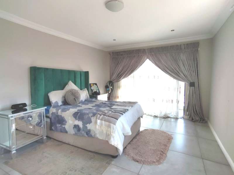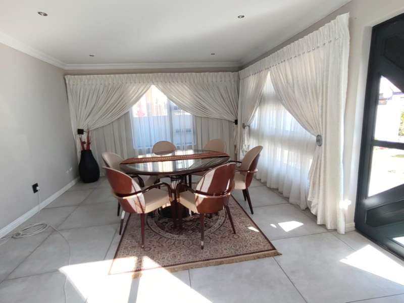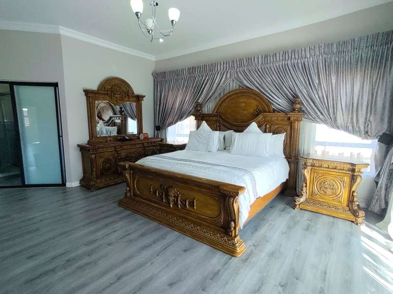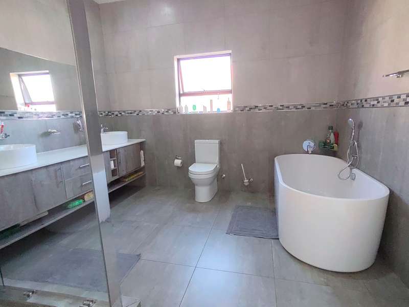 Discover luxurious living in this expansive 5-bedroom, double-storey home nestled in a prestigious golf estate. Situated on a 548 sqm stand, this property offers the perfect blend of elegance and comfort. Modern kitchen with Caesarstone countertops, a gas stove, a center island work surface, and a breakfast counter, all complemented by polished vinyl cupboards. The scullery provides additional convenience. The ground floor boasts a guest toilet, formal lounge with a cozy fireplace, a dining area, and a guest bedroom with an ensuite bathroom. Upstairs, you'll find a study, a pajama lounge, three bedrooms sharing a full bathroom, and a master suite with a private ensuite bathroom featuring double vanities. Enjoy breathtaking views from the balconies. Additional amenities include a storeroom, domestic quarters, and double garages. The outdoor area is perfect for relaxation and entertainment, with a sparkling swimming pool. Located in a sought-after golf estate, you'll have access to a clubhouse, golf shop, and proximity to shopping complexes, schools, main routes, and amenities. Don't miss out on this exceptional property!