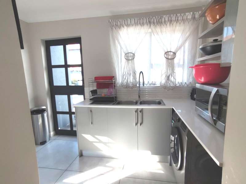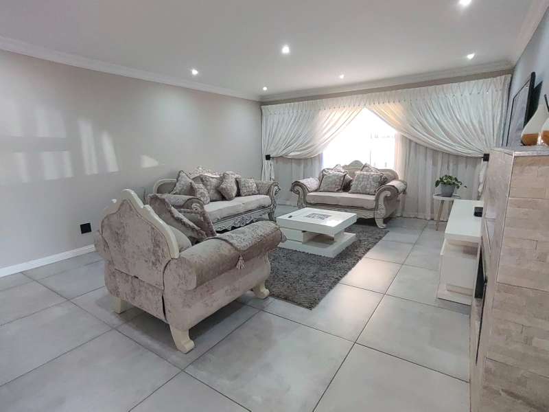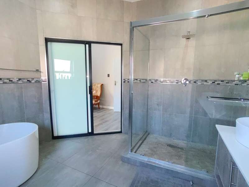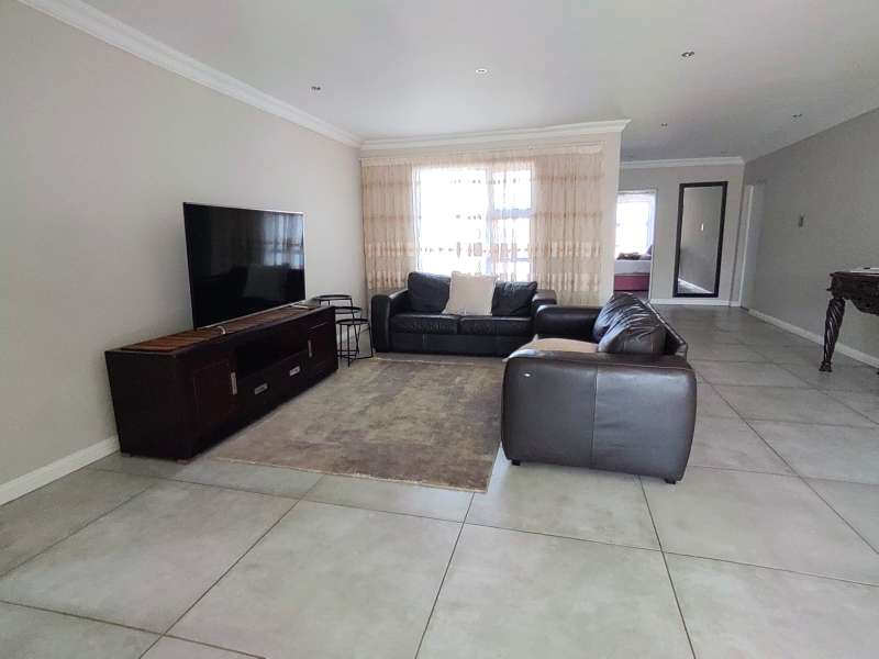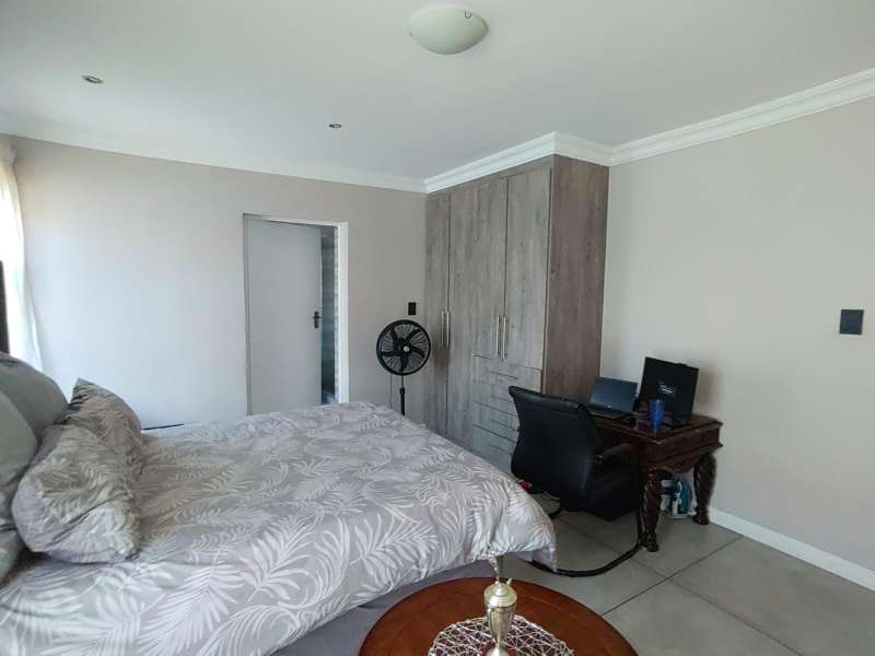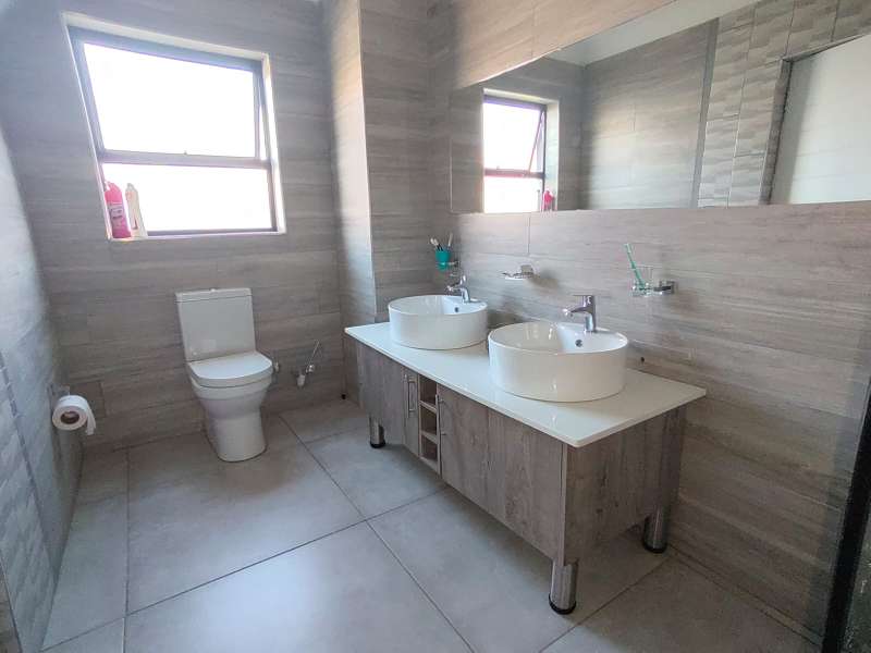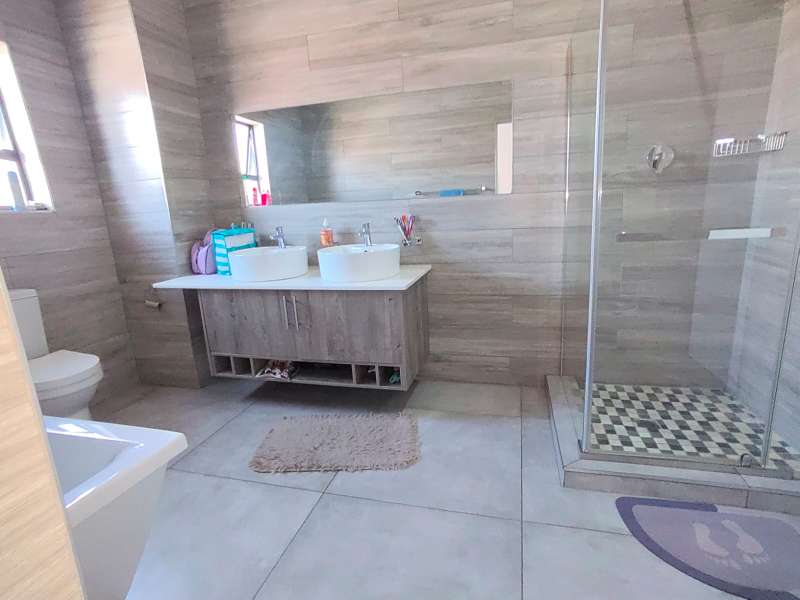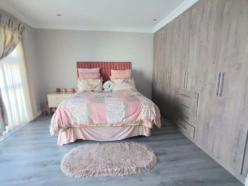 Discover luxurious living in this expansive 5-bedroom, double-storey home nestled in a prestigious golf estate. Situated on a 548 sqm stand, this property offers the perfect blend of elegance and comfort. Modern kitchen with Caesarstone countertops, a gas stove, a center island work surface, and a breakfast counter, all complemented by polished vinyl cupboards. The scullery provides additional convenience. The ground floor boasts a guest toilet, formal lounge with a cozy fireplace, a dining area, and a guest bedroom with an ensuite bathroom. Upstairs, you'll find a study, a pajama lounge, three bedrooms sharing a full bathroom, and a master suite with a private ensuite bathroom featuring double vanities. Enjoy breathtaking views from the balconies. Additional amenities include a storeroom, domestic quarters, and double garages. The outdoor area is perfect for relaxation and entertainment, with a sparkling swimming pool. Located in a sought-after golf estate, you'll have access to a clubhouse, golf shop, and proximity to shopping complexes, schools, main routes, and amenities. Don't miss out on this exceptional property!