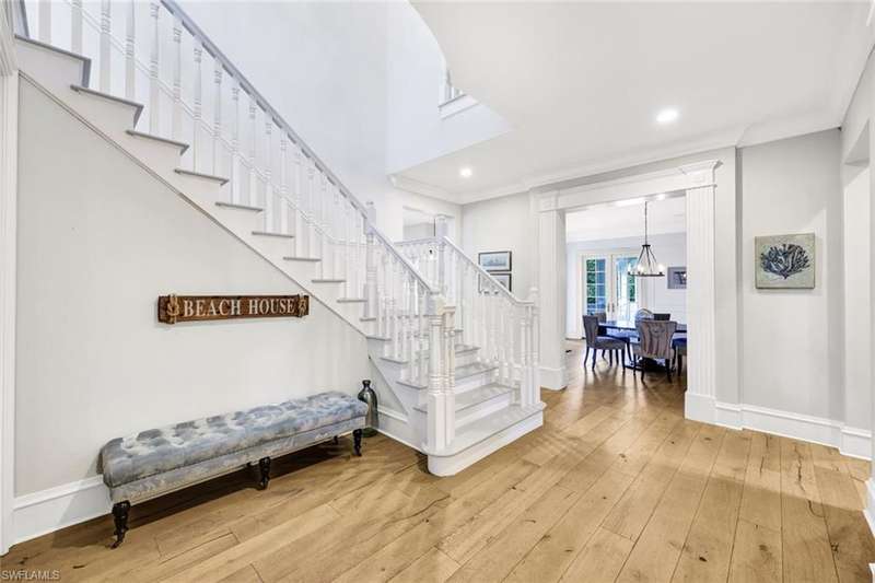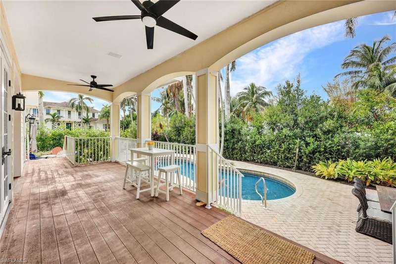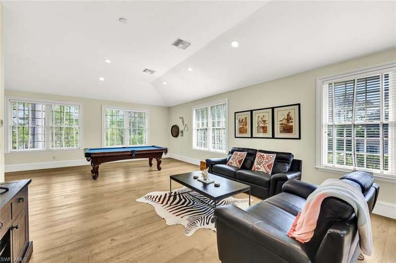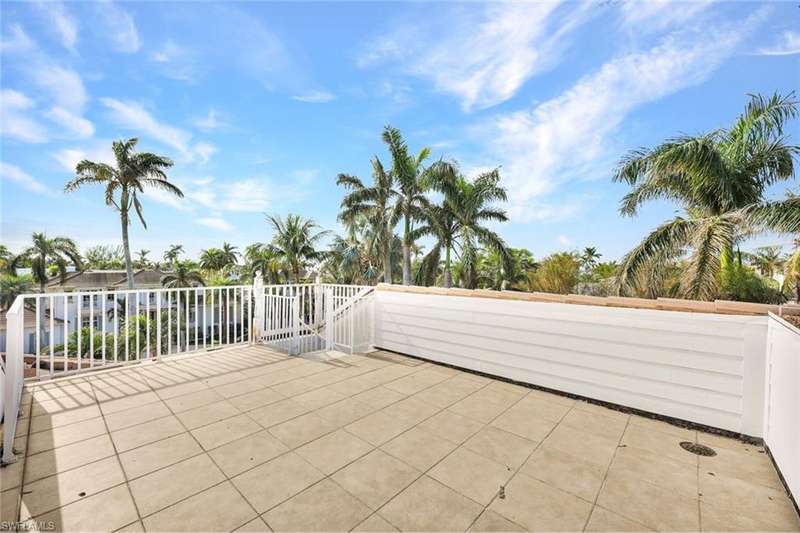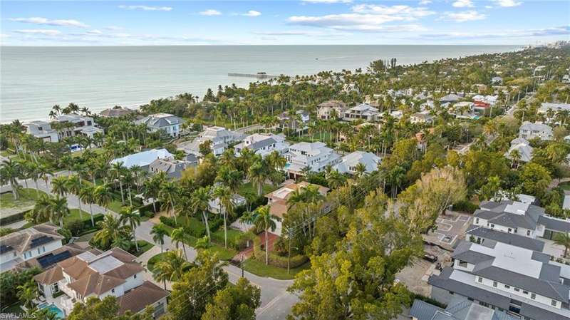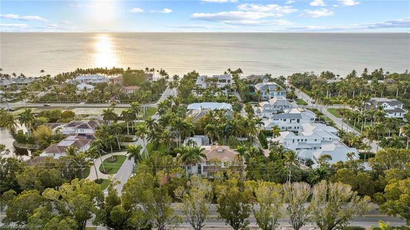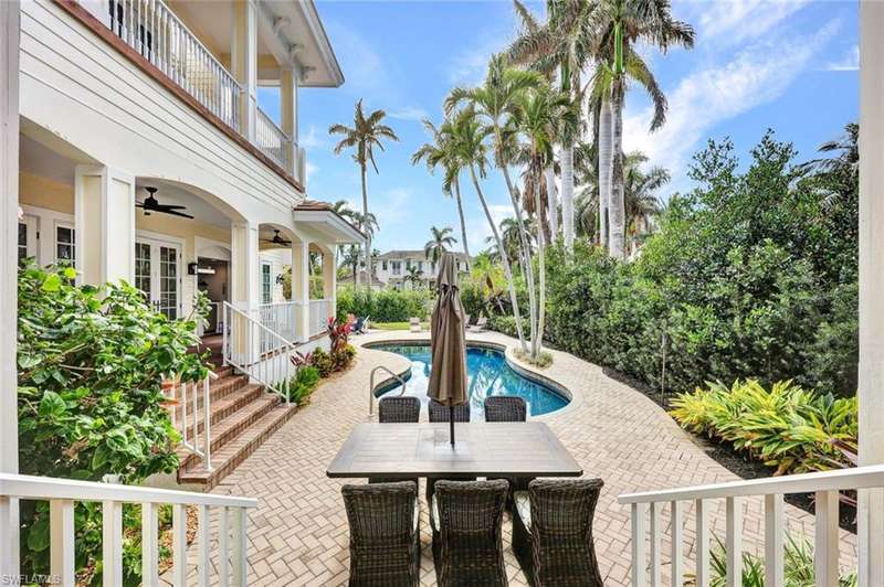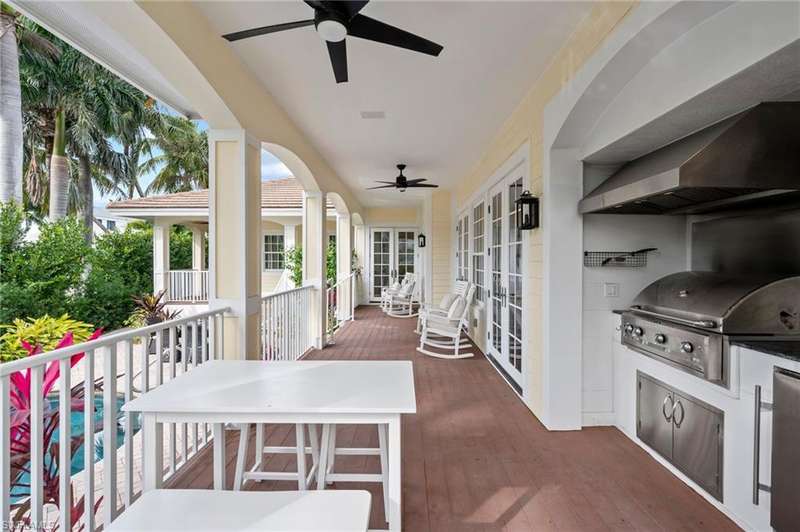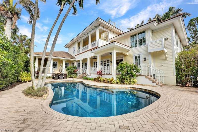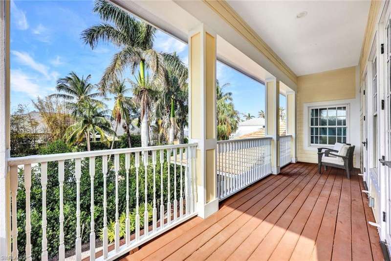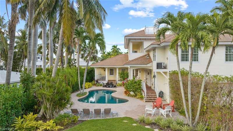 Nestled in the prestigious Aqualane Shores, just one block from the beach, this two-story Old Florida home offers easy access to the beach, just a short walk. Located on a 100x150 lot with 5 bedrooms + den and 5 1/2 bathrooms spread over 5,300 square feet, the residence provides ample space for comfortable living, the perfect rental for multi-family use with an owner's suite on the first level and on the 2nd level. Enjoy the convenience of walking to the beach or 3rd St and revel in the Florida lifestyle with multiple wraparound porches and balconies. Inside, the home showcases wood flooring and an open floor plan that seamlessly connects the chef's kitchen, living room, and bedrooms. A striking staircase leads to the second level, revealing additional bedrooms, living space, and a game area offering billiards, sitting area and large flat screen tv. Enjoy western sunsets from the special rooftop sundeck. Unwind by the lagoon-style pool, complete with outdoor kitchen and multiple si