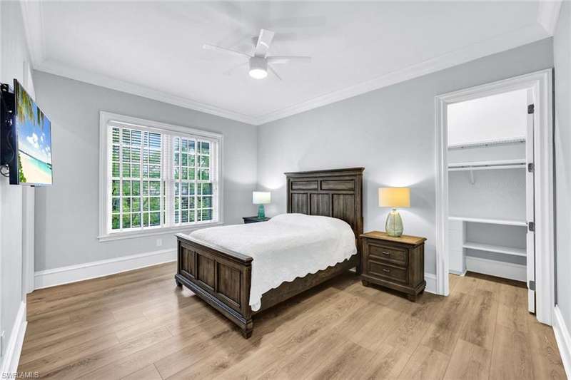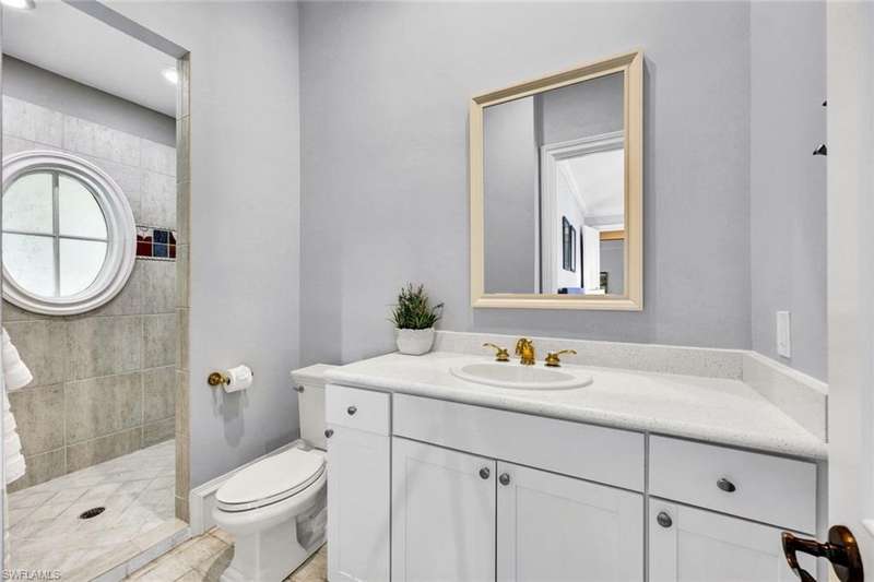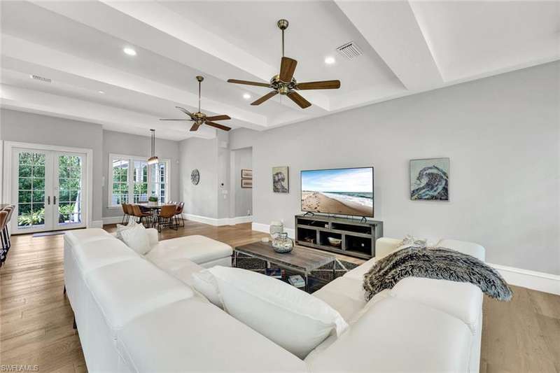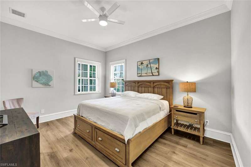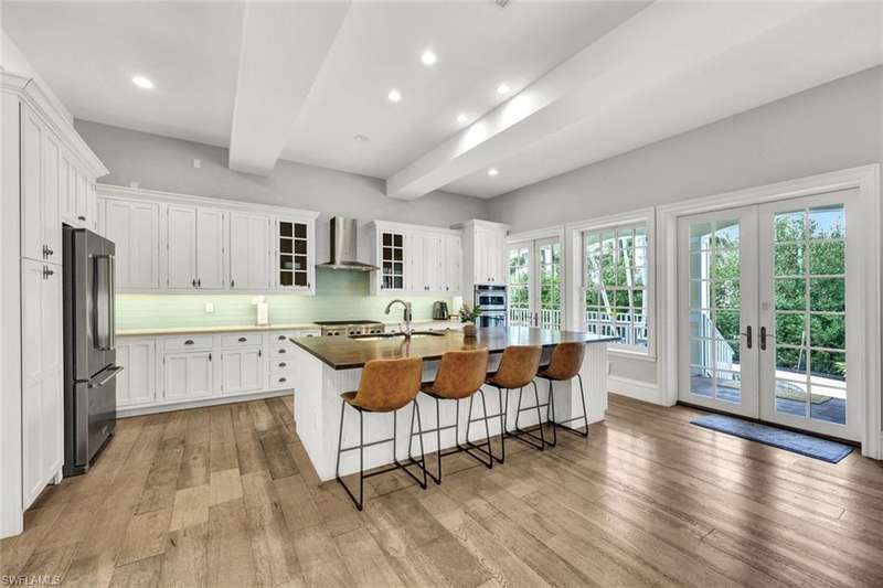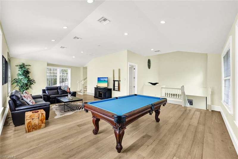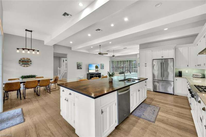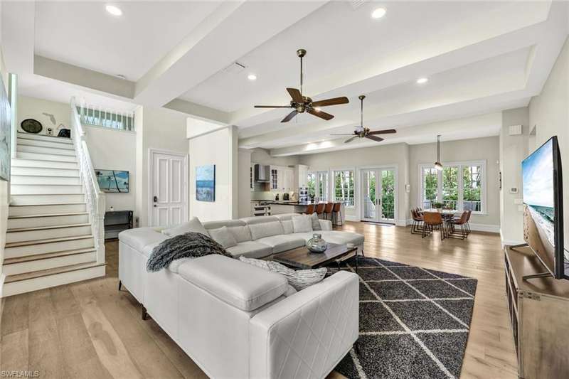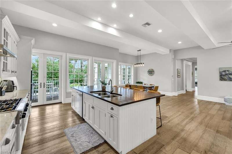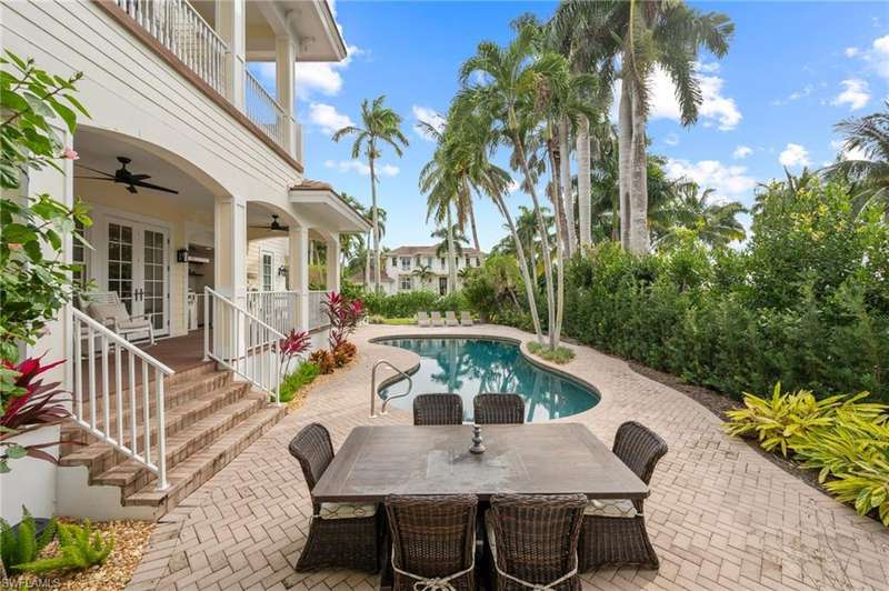 Nestled in the prestigious Aqualane Shores, just one block from the beach, this two-story Old Florida home offers easy access to the beach, just a short walk. Located on a 100x150 lot with 5 bedrooms + den and 5 1/2 bathrooms spread over 5,300 square feet, the residence provides ample space for comfortable living, the perfect rental for multi-family use with an owner's suite on the first level and on the 2nd level. Enjoy the convenience of walking to the beach or 3rd St and revel in the Florida lifestyle with multiple wraparound porches and balconies. Inside, the home showcases wood flooring and an open floor plan that seamlessly connects the chef's kitchen, living room, and bedrooms. A striking staircase leads to the second level, revealing additional bedrooms, living space, and a game area offering billiards, sitting area and large flat screen tv. Enjoy western sunsets from the special rooftop sundeck. Unwind by the lagoon-style pool, complete with outdoor kitchen and multiple si