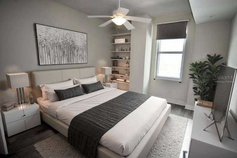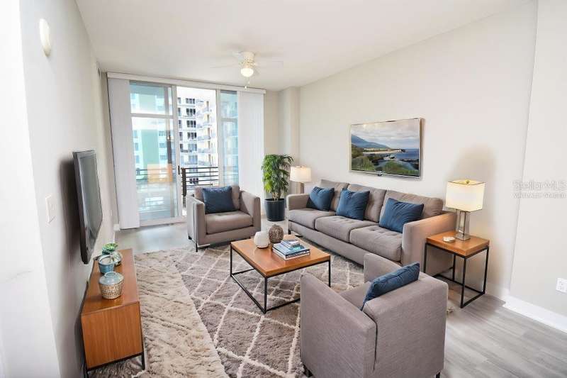 Seller is offering a credit of $5900 to cover 6 MONTHS of HOA fees with an accepted offer - save thousands right away! Live the high life in this stunning 2 bed, 1 bath condo perched on the 14th floor, offering sweeping skyline views from your own private balcony and abundant natural light. At 1,050?sq?ft, soaring 9+ foot ceilings, and tile flooring throughout, this home feels expansive and luxurious. The kitchen is a chef's dream with abundant cabinetry, a gourmet Viking gas range and hood, a built-in trash compactor, and newer stainless-steel dishwasher and fridge. You’ll love the added convenience of your own in-unit washer and dryer. The spacious secondary bedroom is perfect for a guest room, home office, or a cozy retreat. The elegant bathroom features a stylish double-sink floating vanity and a large, spa-like walk-in shower. The master suite is a true sanctuary with custom built-in shelving for all your storage needs. This downtown beauty offers not only a chic living space but also a wealth of resort-style amenities, including a well appointed fitness center, pools, hot tubs, grills, and even a dog run for your furry friends. Plus, you’re just steps away from Tampa's vibrant Channelside district, with dining, shopping, museums, E. Madison Park with Pickleball, Shuffleboard and a Dog Park, Amalie Arena, the Aquarium, Riverwalk, and so much more right at your doorstep. The HOA covers AC maintenance, gas, water, sewer, trash, amenity access, and 24-hour concierge services, so you can relax and enjoy worry-free living. Schedule a viewing today and start living where you love—right in the vibrant heart of Downtown Tampa.