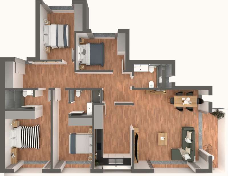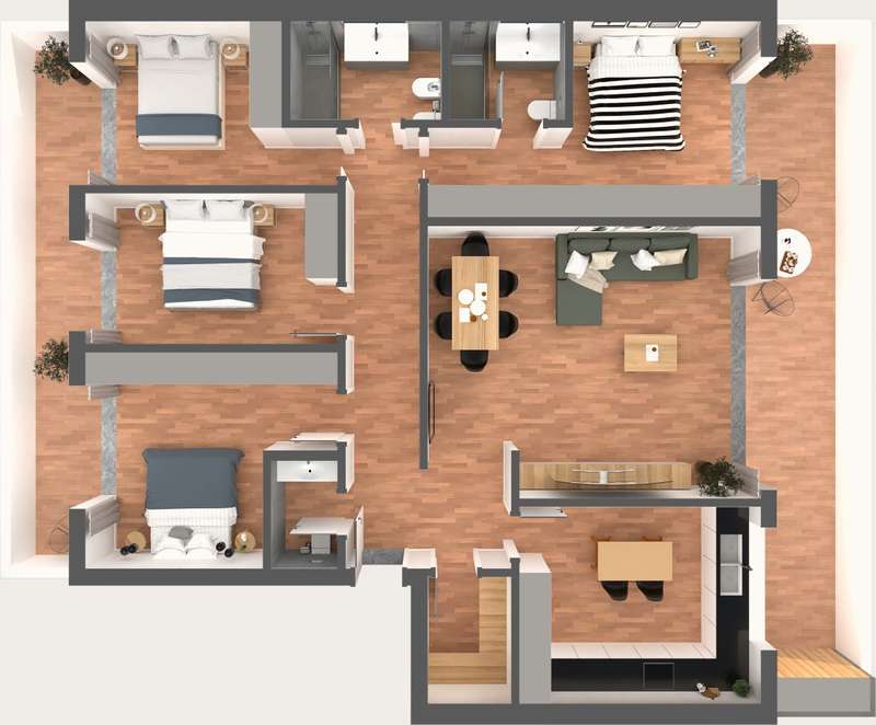 In Tavira, Algarve, for sale are brand-new four-bedroom apartments in a south-facing building with breathtaking sea views. Each apartment has a large living and dining area, a kitchen, four bedrooms, two of which are en suite, a total of three toilets, a balcony and a garage. Each apartment on the top level has a spacious private terrace, ideal for enjoying the Algarve climate. Excellent location in the heart of Tavira, just five minutes walking from the mall, ten minutes from the city centre, and thirty minutes from Faro International Airport. CHARACTERISTICS:Area: 131 m2 | 1 412 sq ft Bedrooms: 4 Bathrooms: 3 Garage: 3 Energy efficiency: A FEATURES: Four bedrooms Two suites Garage Balcony Terrace