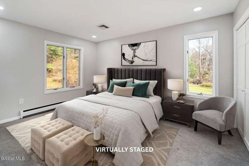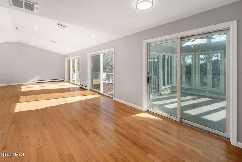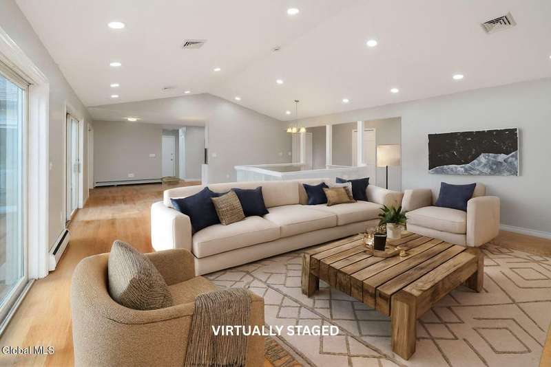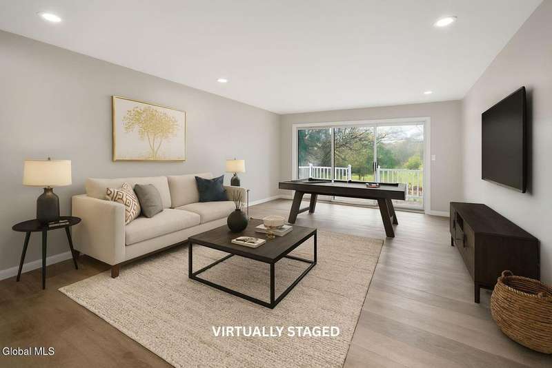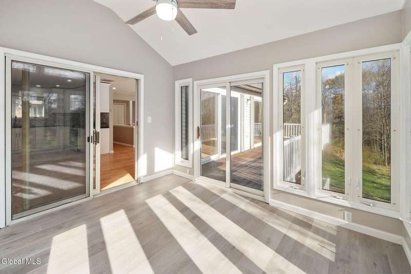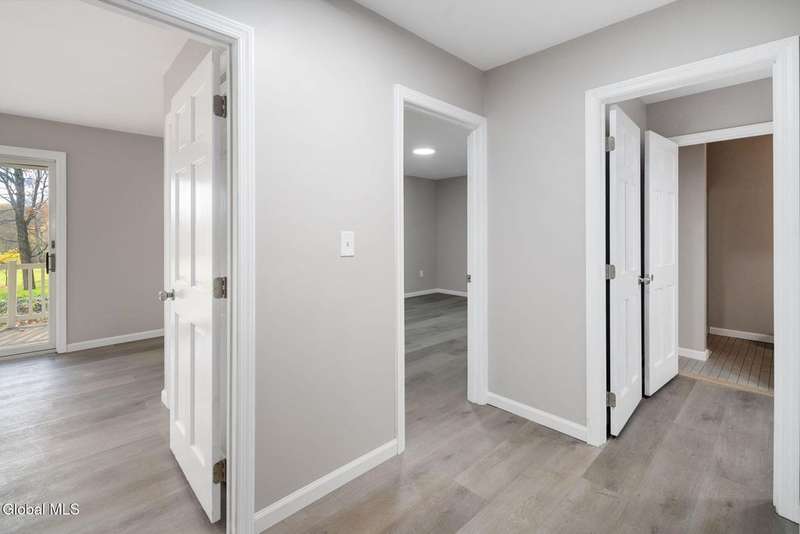 Welcome to this spacious multi-level home which has been completely redone offering comfort, and plenty of space to personalize. The main floor features a large open living room with glass doors leading to the back deck overlooking 6+ acres. Huge kitchen ideal for gatherings, with a laundry room and half bath conveniently located off the kitchen with access to a large two-car garage. On the main level you'll find the primary bedroom suite along with two bedrooms, and a second full bath. An open stairwell connects the main level to the lower level leading into a spacious Family room with triple sliding glass doors. along with two bedrooms each with sliding glass doors to the backyard, and a full bath. A den or perfect for possible theater room, bar or entertainment area just off the family room. Outside, enjoy an expansive back deck and a sunroom. Located in a desirable Coxsackie neighborhood, easy access to exit 21B Thruway (5 minutes 3.8 miles) Albany (30 Minutes 25 miles) NYC ( 2 hrs. 117 Miles) HSA Home Warranty included!!!