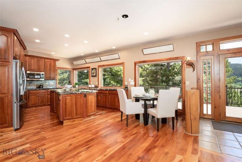 Welcome to 11540 Taiga Trail - situated on 20+/- acres in Bridger Canyon and bordering Bridger Bowl Ski Area, this remarkable property captures the essence of the Montana mountain lifestyle. With expansive views, towering trees, and privacy, the home feels like a luxurious treehouse retreat-yet it's just 25 minutes from Downtown Bozeman. Designed for adventure and relaxation, the 4,334+/- SF residence offers year-round access to hiking, biking, skiing, and ATV trails right from your doorstep. Located in the coveted Flaming Arrow community, the home features 3 bedrooms, a bunkroom/office, and 3.5 bathrooms. The open-concept main level is anchored by a stunning wood-burning fireplace and features vaulted ceilings, floor-to-ceiling windows, and a seamless connection between the kitchen, dining, and living areas. An open loft, main-floor primary suite, and mudroom/laundry area round out the upper level. The walkout lower level includes two additional bedrooms, full bath, a versatile bunk room or office, a large family room with fireplace, a dedicated theater area, and a workshop with an additional powder bath-ideal for hobbies or tuning up outdoor gear. Outdoor living takes center stage with an expansive wraparound deck and built-in outdoor kitchen, offering the perfect setting for entertaining or taking in the canyon's breathtaking sunsets. A lower-level patio and a permanent glamping platform with Montana Canvas tent create even more opportunities to enjoy the outdoors in style. Watch elk, moose, deer, and bears wander the property, or stargaze beneath the clear Montana sky. The property includes an attached 2-car garage, a detached 3-car garage with a concrete floor and room for recreational vehicles, plus a smaller workshop with fenced dog run-plenty of space for gear, tools, and toys. This is more than a home-it's a private, mountain sanctuary offering unmatched beauty, privacy, and adventure.