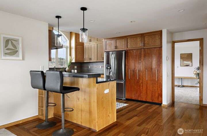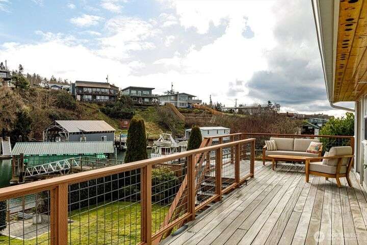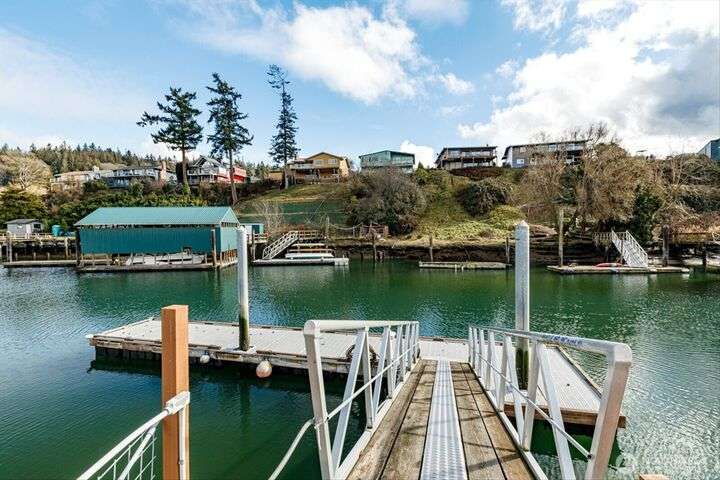 Embrace the ultimate waterfront lifestyle with this beautiful craftsman home, complete with a ~50 ft dock equipped with water and power, perfect for boating, fishing, and crabbing adventures. Thoughtfully designed for comfort & function, the home boasts Brazilian cherry wood floors, custom kitchen cabinetry, a 36-inch range with hood, and freshly updated interiors with new carpet, fixtures, & paint. The lower level offers a cozy propane fireplace, wet bar, & full bath, creating a welcoming retreat. Step outside to enjoy ironwood decks, a large patio, & fully irrigated landscaping w/raised garden beds. With an oversized two-stall garage, heated shop, whole-home generator, and dock, this home is a rare waterfront opportunity.