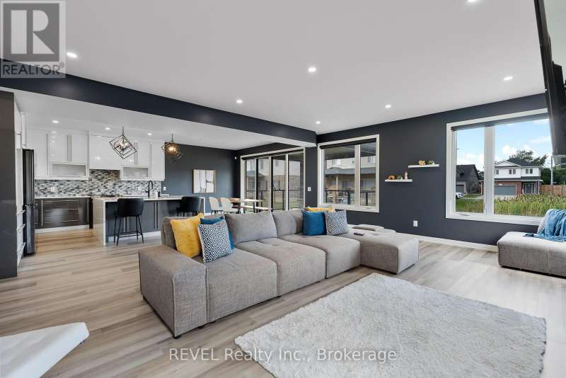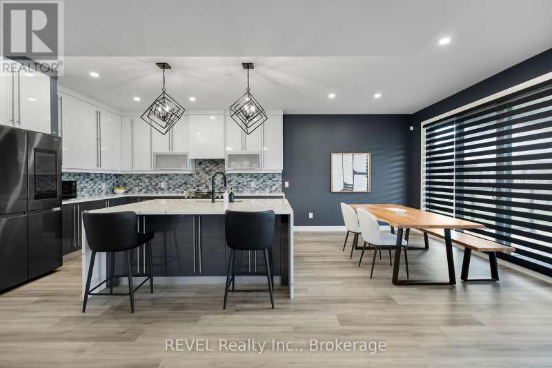 Welcome to 7365 Jonathan Drive, a custom-built home that embodies modern elegance and thoughtful design. With over 3,000 sq. ft. of living space, 4 bedrooms, and 4 full bathrooms, this residence showcases craftsmanship, comfort, and style throughout.The main floor boasts soaring ceilings and an open-concept layout designed for both everyday living and elevated entertaining. Just off the foyer, a private office offers the perfect space for working from home. At the heart of the home lies a chefs dream kitchen featuring quartz countertops and backsplash, a massive island with quartz waterfall counterspace, high-end s/s appliances, soft-close cabinetry, and an oversized pantry.The living and dining areas flow effortlessly to the backyard, where a covered porch is ideal for family BBQs and outdoor relaxation. A statement oak staircase with glass railings enhances the homes airy feel and leads to the upper level, where every detail has been thoughtfully planned.The primary suite is a true retreat, offering two separate walk-in closets and a spa-inspired 5-piece ensuite with a floating live-edge vanity, double sinks, a freestanding soaker tub, and a large glass shower with custom river-rock inspired tiling. The second and third bedrooms share a stylish 4-piece bath, while the fourth bedroom enjoys its own private 3-piece ensuite with a beautifully tiled glass shower.The unfinished lower level features tall ceilings, oversized windows, and a bathroom rough-in, providing the flexibility to create your ideal additional living space whether a recreation room, gym, or in-law suite.Beyond the home itself, the location offers an enviable lifestyle. Families will appreciate being surrounded by excellent schools and parks, while food and wine lovers can enjoy the areas award-winning wineries and restaurants. For leisure and recreation, nearby golf courses and walking trails make it easy to stay active and connected to nature.Book your private showing today! (id:7434)