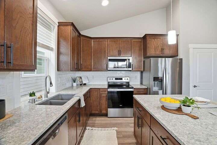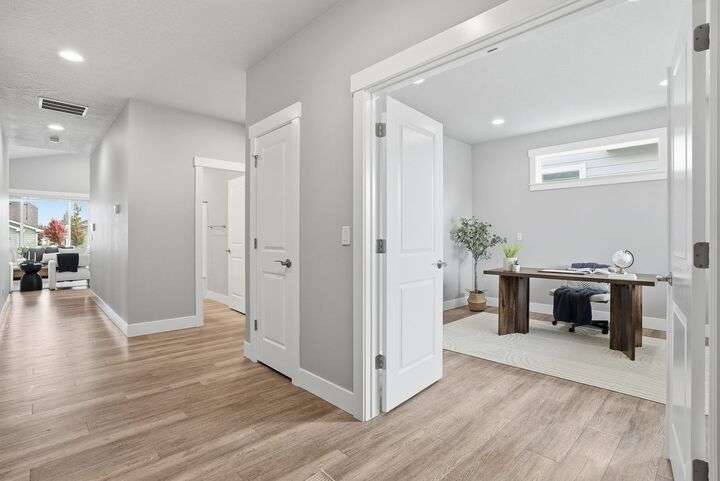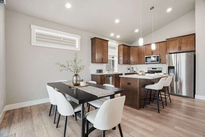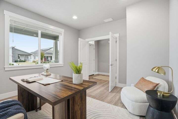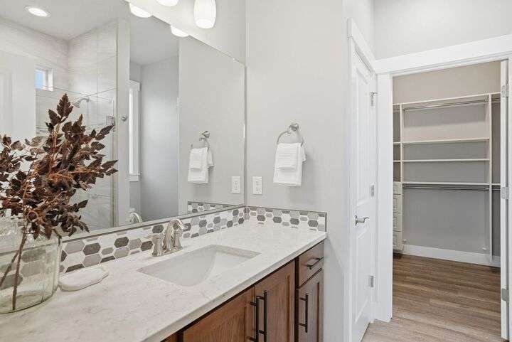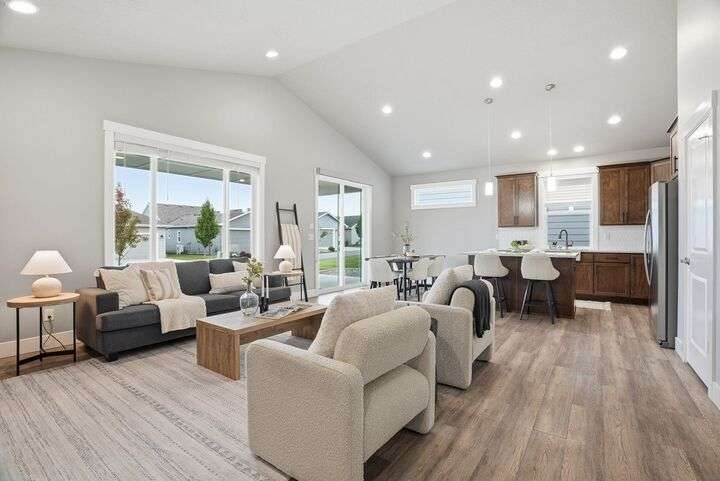 Experience refined living in this highly sought-after Arlington floor plan by Greenstone Homes, perfectly situated in Trutina at River District. This elegant single-level home features 3 bedrooms, 2 baths, and upscale finishes throughout — including quartz countertops, a custom-tiled walk-in shower, solar panels, and a designer closet system in the primary suite. The spacious 3-car garage and open-concept design elevate both style and functionality. Discover a perfect balance of elegance, comfort, and community in this exceptional Trutina residence.