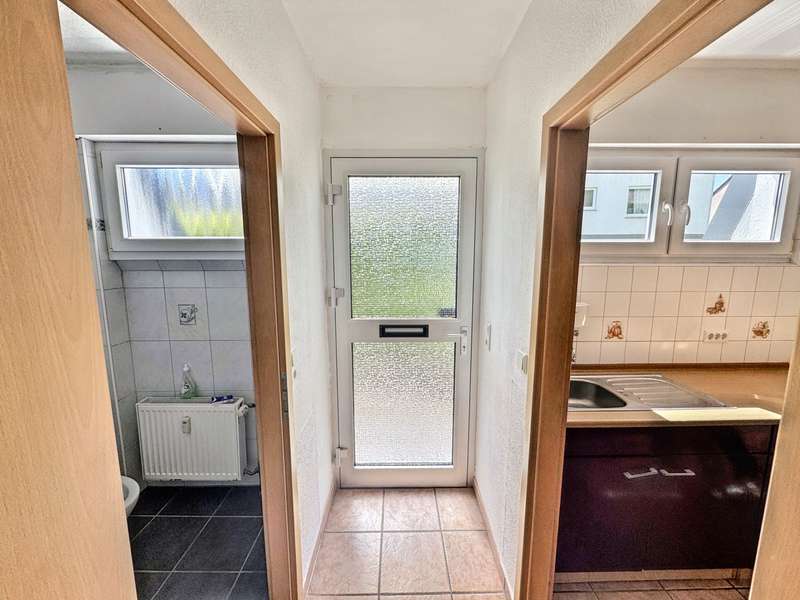 This special first floor apartment combines privacy, brightness and sophisticated living quality in a compact space - perfect for singles, first-time buyers or smart investors. The extraordinary character of the property is evident as soon as you enter: the private entrance with stylish glass door not only ensures a pleasant degree of independence, but also brings natural light into the entrance area and distributes it harmoniously throughout the apartment. The apartment is fully south-facing, which means sun all day long and a light-flooded living experience. The spacious living room/bedroom is particularly impressive with its wide window front, which makes the room appear bright, open and friendly. The kitchen and bathroom have been thoughtfully designed. Both rooms have high windows that not only let in natural light, but also allow optimal use of space - for kitchen units or bathroom furnishings, for example. The bathroom also scores with natural light and a neat appearance. Further advantages of this property: - The apartment is vacant and therefore available immediately. - All windows have been renewed and have shutters. - A communal laundry room is available. Thanks to the special combination of independence, south-facing orientation and good substance, this apartment offers a rare opportunity on the market - both for owner-occupiers who do not want to do without privacy and light and for investors who value a solid, easily rentable location.