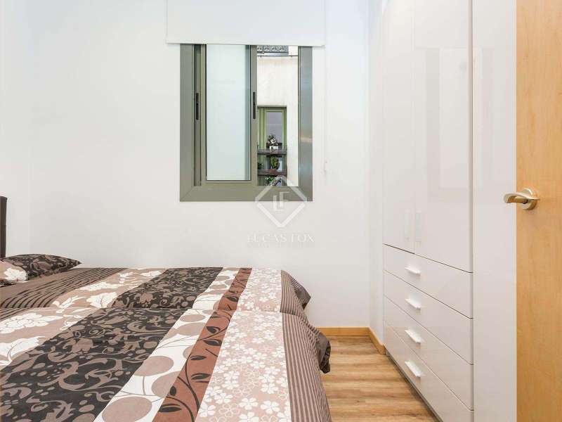 We find this attractive 2-bedroom apartment located very near Passeig de Gracia and Plaça Catalunya in Eixample Right. The property benefits from a central, yet quiet location. It is on the second floor of a stately building with a beautiful entrance hall and a lift. The apartment has an approximate built surface area of 70 m², officially registered as 67m², and has been renovated whilst maintaining the original Modernista period features. It has wooden floors, high ceilings and tasteful neutral decor. There is a spacious living room – dining room, an equipped kitchen, 2 double bedrooms and a bathroom with a bathtub. The property is peaceful and overlooks an interior block patio. Ideal as a second home in the city or as an investment given its 5% potential rental yield.