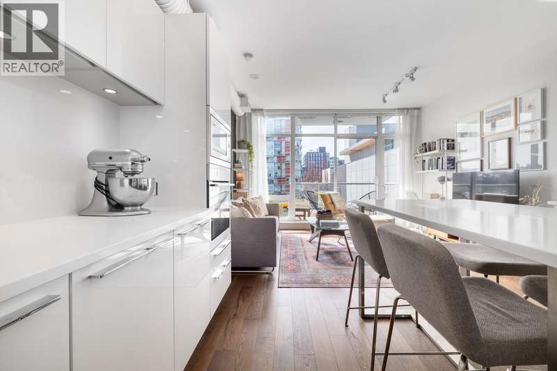 Experience Olympic Village living at Meccanica by Cressey. Welcome to this stylish and immaculately maintained studio. This bright and airy end unit boasts a desirable south facing exposure, flooding your home in natural sunlight throughout the day. Prepare to be wowed by the expansive kitchen with an incredible amount of sleek counter space, featuring a kitchen island that doubles as a prep and dining. Soak up city views on your balcony. The versatile layout allows for the creation of two distinct office areas, offering perfect flexibility for work and study. Enjoy an abundance of custom built-ins, year-round comfort with A/C, and the convenience of a large laundry/storage room. Parking & storage included! Amazing amenities and location is unbeatable! (id:58403)