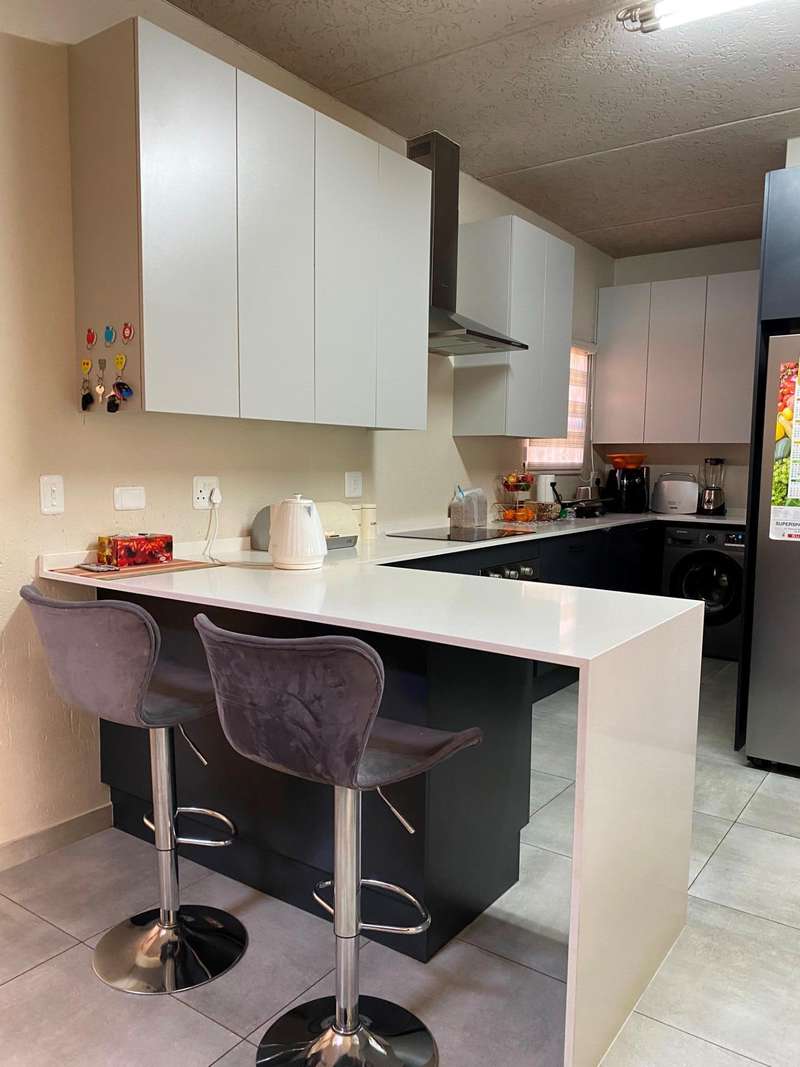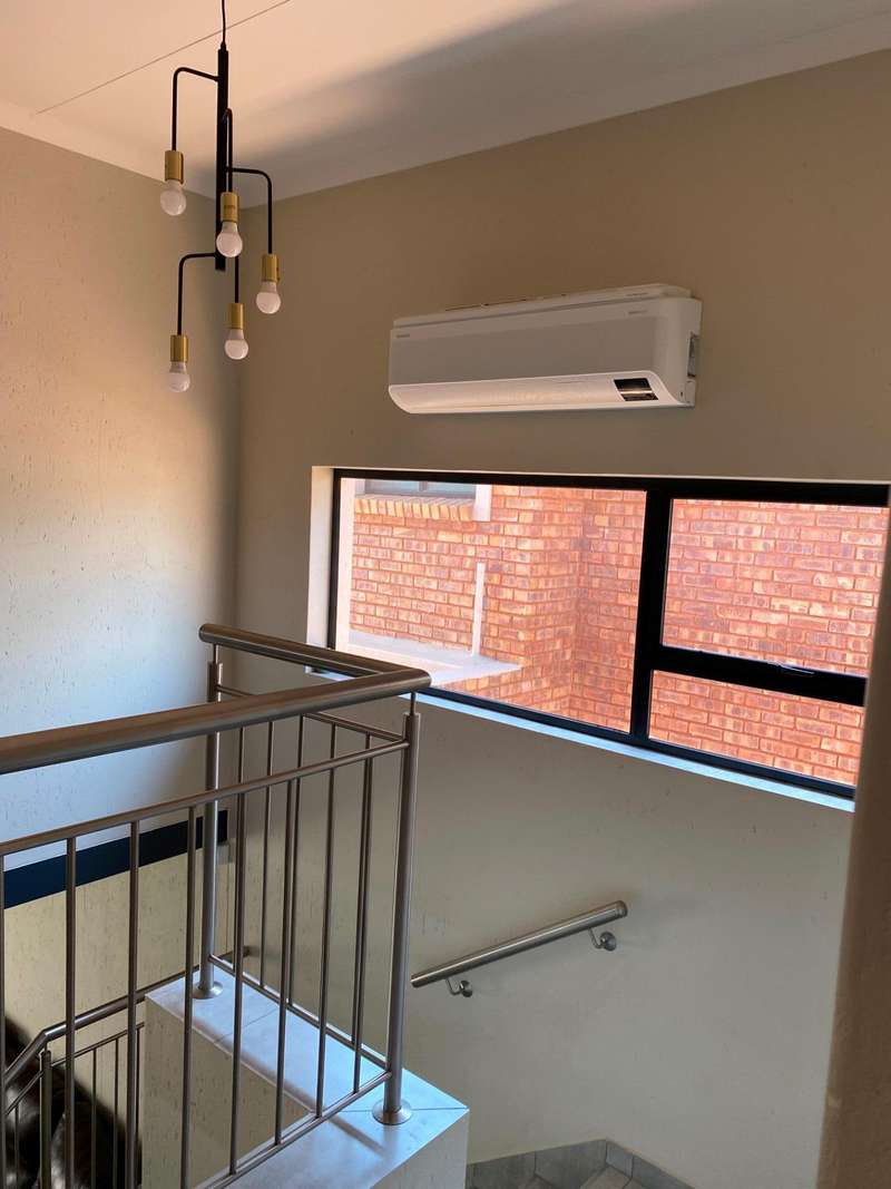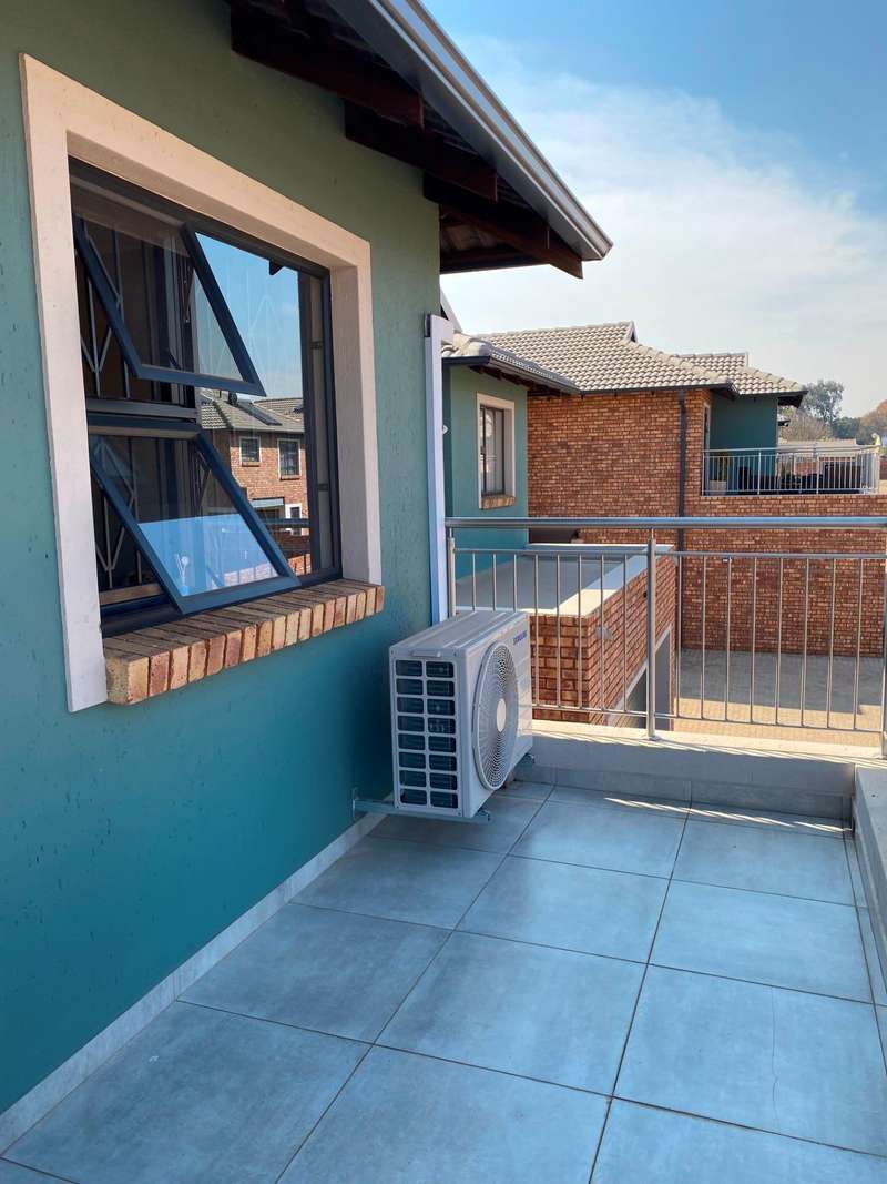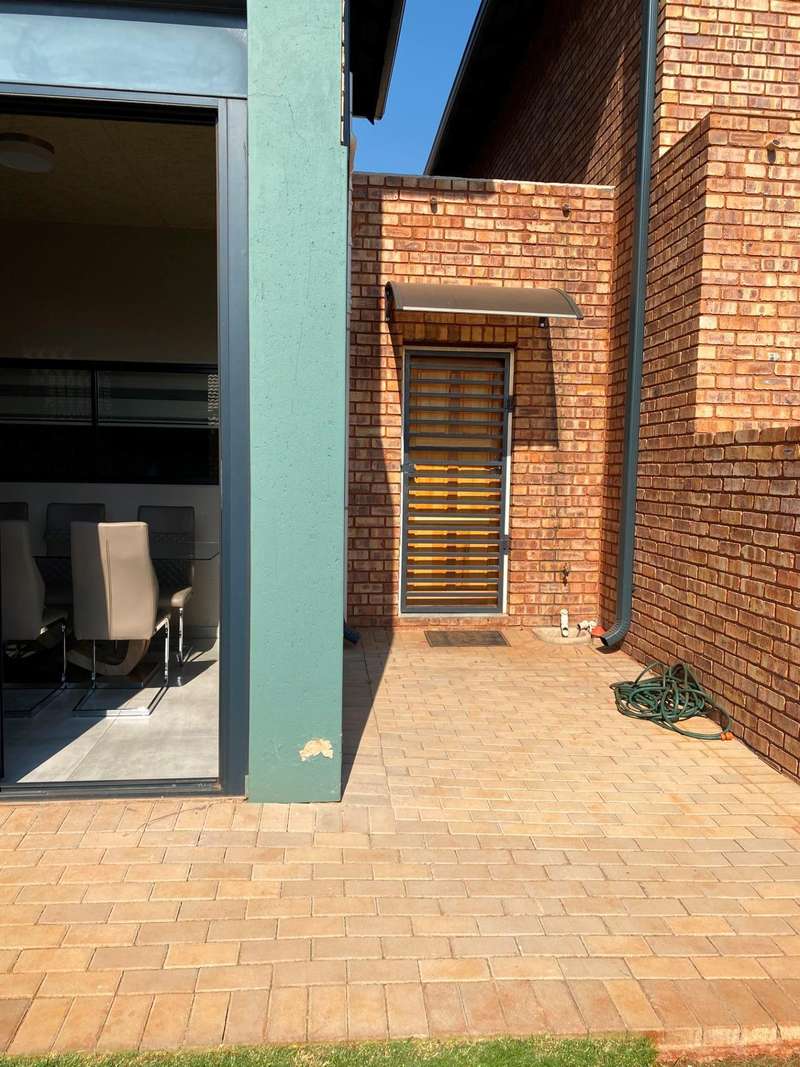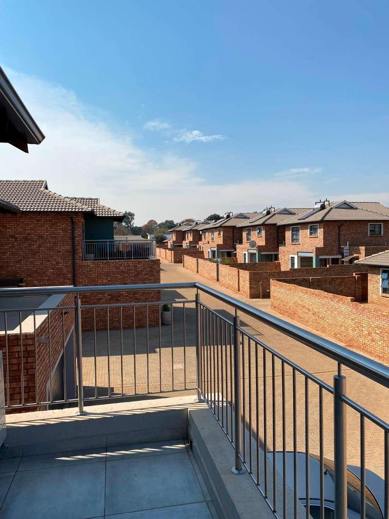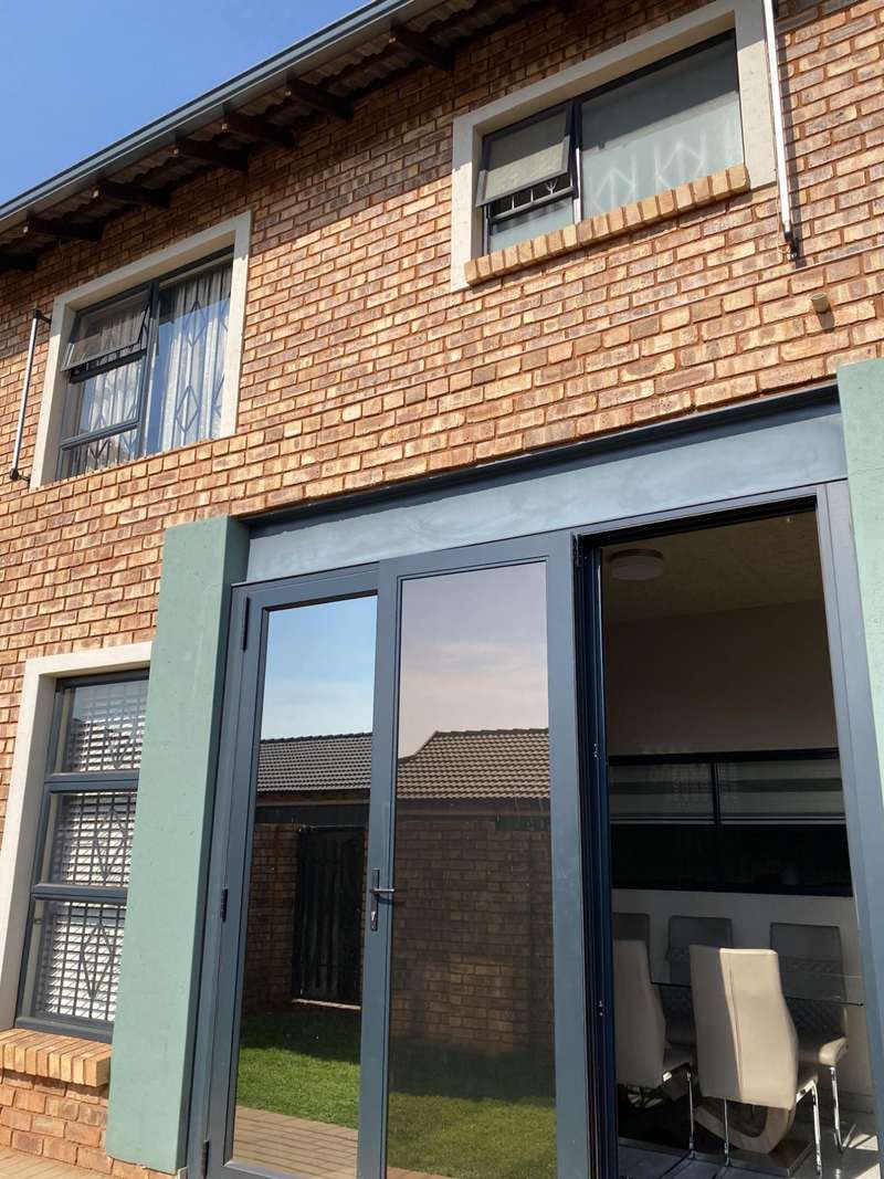 3 Bedroom house for sale in Rynfield AH Newly built, low maintenance complex, double storey home with superior finishes NOW available for sale. Consisting of 3 bedrooms upstairs, 2 bathrooms, main en-suite and sliding door opening onto balcony. Stainless steel balustrades with gamzine on the bottom of the staircase. Guest toilet downstairs. Open plan kitchen and living area. Kitchen is ultra modern with caesarstone counter tops, plus a separate scullery. This is the centre piece of the home which is perfect for modern living and entertainment onto an enclosed patio. There are security burglar bars and sliding doors onto a good sized private garden. Aircon and modern blinds on windows remain. Double garage motorized, plus extra parking bay at the front door. Security alarm and outside beams. EXTRAS INCLUDE 1 x 5kw inverter 1 x Battery 5 x Solar panels Pre-paid electricity Pet friendly The complex has 24hr security access control, electric fencing and 2.1m external boundary walls. Easy access to N12 and major routes, shopping centre and OR Thambo International airport. A peaceful escape from urban chaos - a sound long term investment. Call today to view !!!!!!!