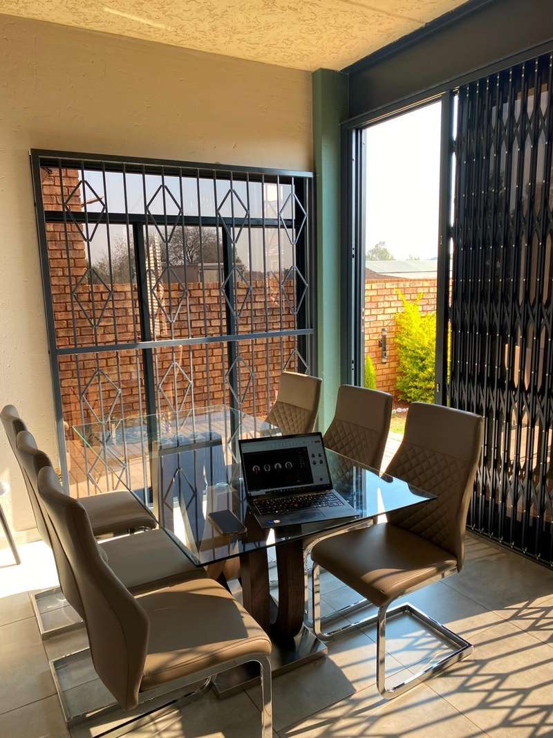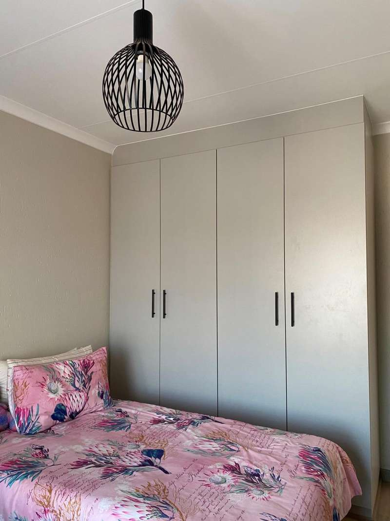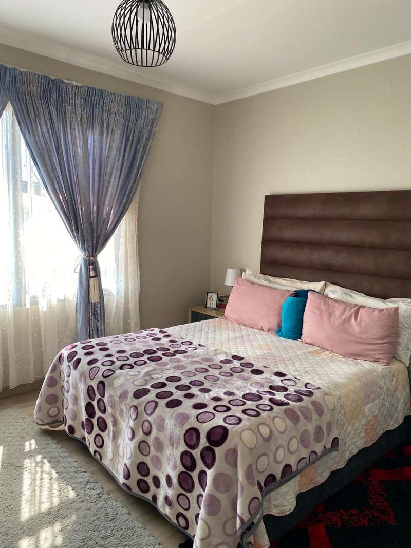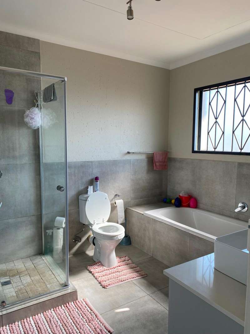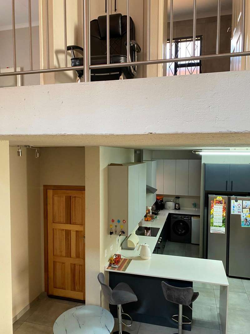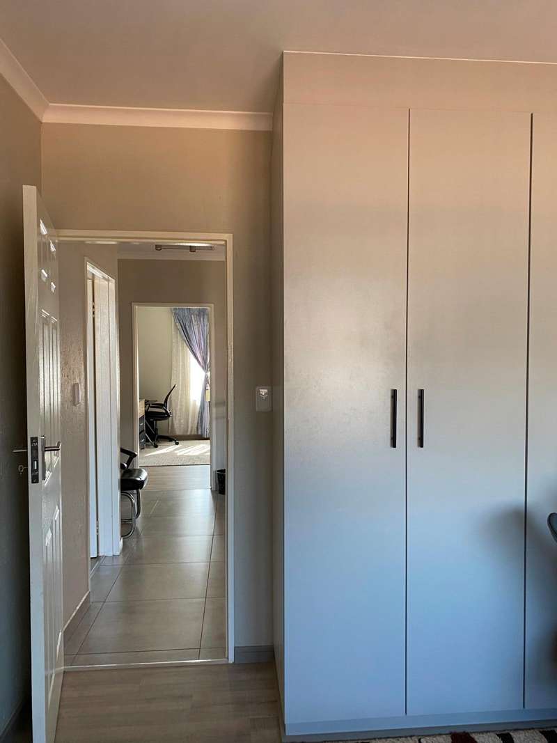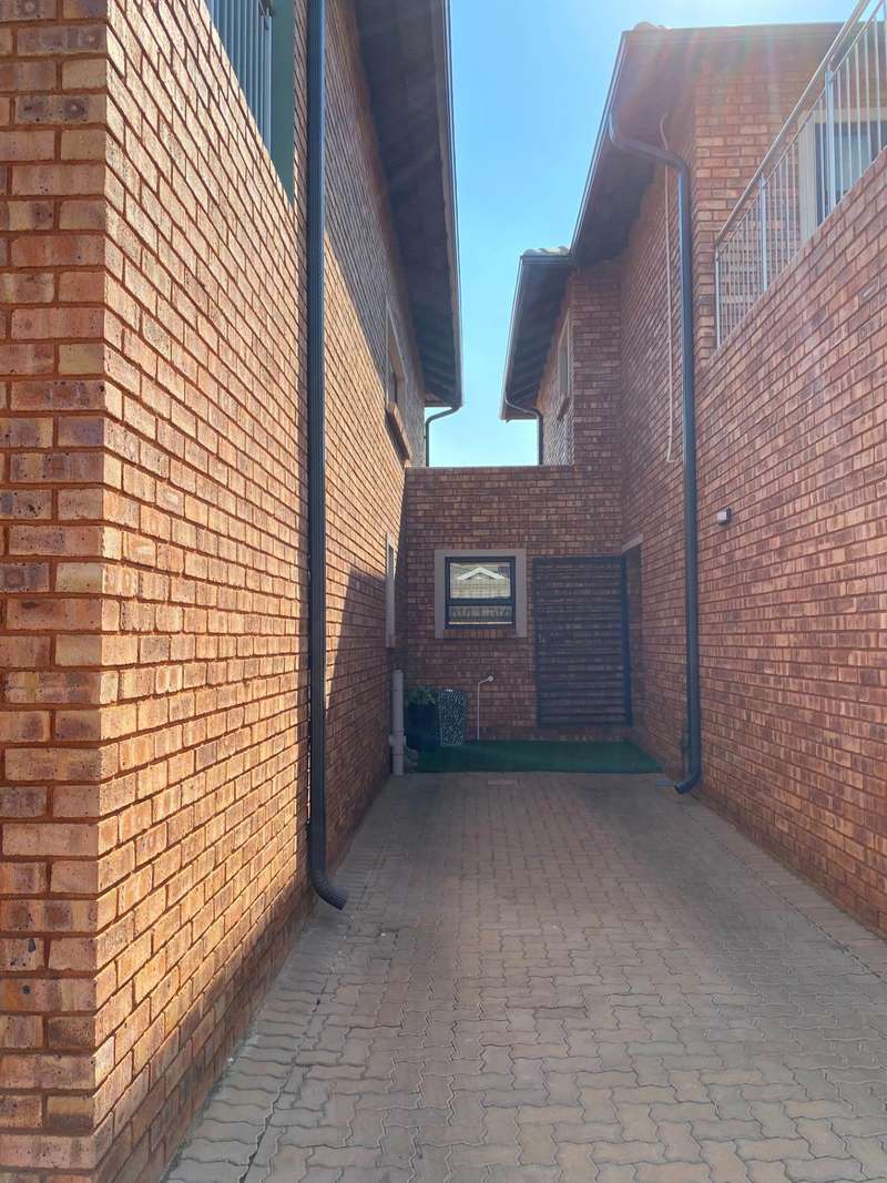 3 Bedroom house for sale in Rynfield AH Newly built, low maintenance complex, double storey home with superior finishes NOW available for sale. Consisting of 3 bedrooms upstairs, 2 bathrooms, main en-suite and sliding door opening onto balcony. Stainless steel balustrades with gamzine on the bottom of the staircase. Guest toilet downstairs. Open plan kitchen and living area. Kitchen is ultra modern with caesarstone counter tops, plus a separate scullery. This is the centre piece of the home which is perfect for modern living and entertainment onto an enclosed patio. There are security burglar bars and sliding doors onto a good sized private garden. Aircon and modern blinds on windows remain. Double garage motorized, plus extra parking bay at the front door. Security alarm and outside beams. EXTRAS INCLUDE 1 x 5kw inverter 1 x Battery 5 x Solar panels Pre-paid electricity Pet friendly The complex has 24hr security access control, electric fencing and 2.1m external boundary walls. Easy access to N12 and major routes, shopping centre and OR Thambo International airport. A peaceful escape from urban chaos - a sound long term investment. Call today to view !!!!!!!