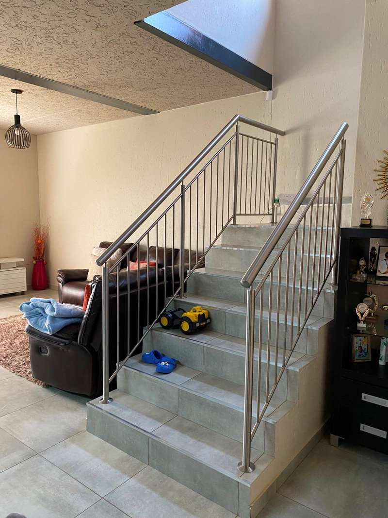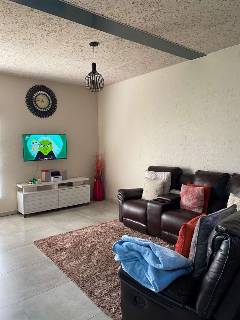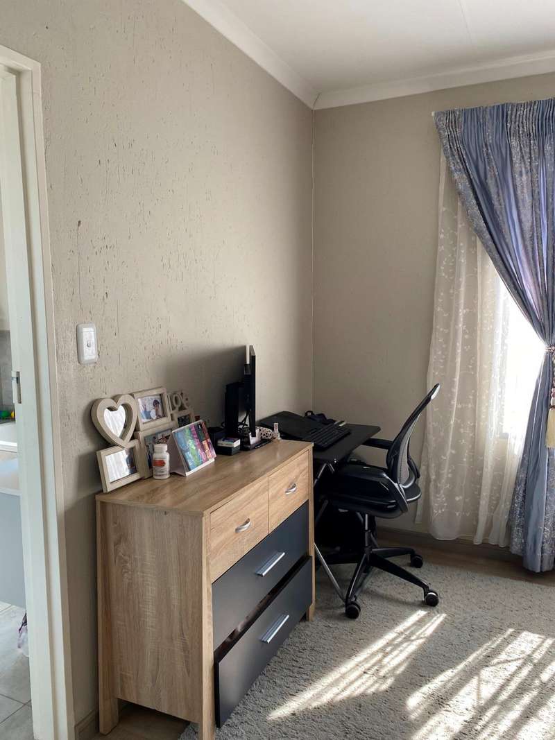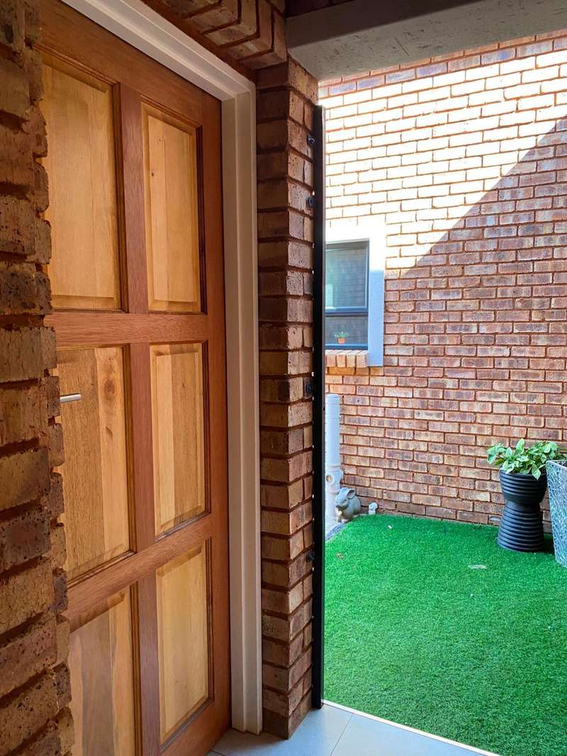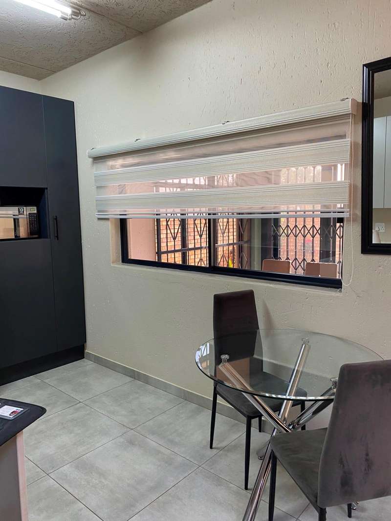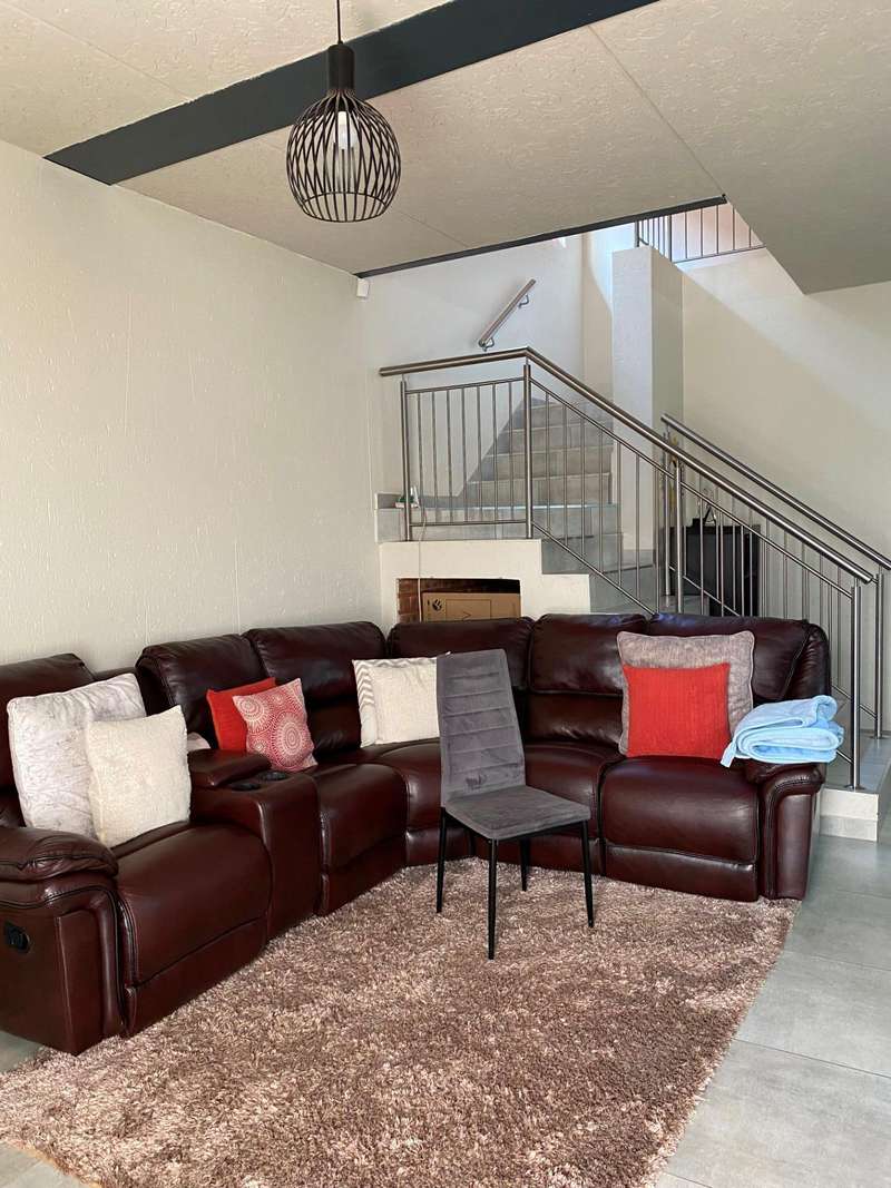 3 Bedroom house for sale in Rynfield AH Newly built, low maintenance complex, double storey home with superior finishes NOW available for sale. Consisting of 3 bedrooms upstairs, 2 bathrooms, main en-suite and sliding door opening onto balcony. Stainless steel balustrades with gamzine on the bottom of the staircase. Guest toilet downstairs. Open plan kitchen and living area. Kitchen is ultra modern with caesarstone counter tops, plus a separate scullery. This is the centre piece of the home which is perfect for modern living and entertainment onto an enclosed patio. There are security burglar bars and sliding doors onto a good sized private garden. Aircon and modern blinds on windows remain. Double garage motorized, plus extra parking bay at the front door. Security alarm and outside beams. EXTRAS INCLUDE 1 x 5kw inverter 1 x Battery 5 x Solar panels Pre-paid electricity Pet friendly The complex has 24hr security access control, electric fencing and 2.1m external boundary walls. Easy access to N12 and major routes, shopping centre and OR Thambo International airport. A peaceful escape from urban chaos - a sound long term investment. Call today to view !!!!!!!