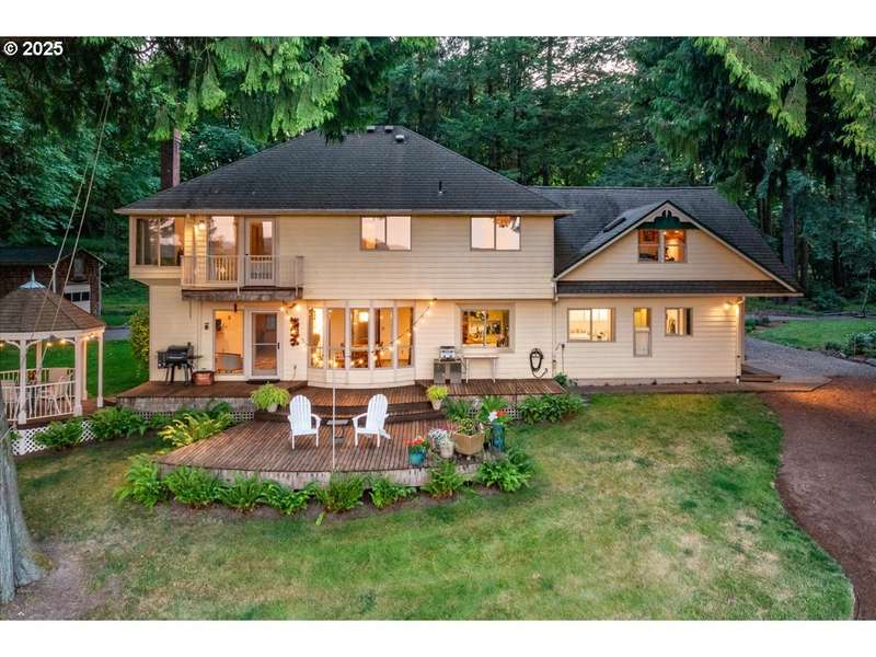 Expansive Private Park of your own with breathtaking water and mountain Views. Nearly 6ac of private, wooded, setting and access to miles of running/hiking/horseback riding trails . This new-era Farmhouse-style home offers stunning panoramic views of the Lewis River valley and Cascade foothills with the most amazing sunrises! With mature landscaping, fruit trees, and native vegetation, it provides private access to river trails and wetlands—ideal for outdoor living. Dine al fresco in the gazebo. Thousands of resident and migratory birds are just out the windows of the main living area, stunning home office, large kitchen, and spacious primary bedroom. Separate entrance opens multi-gen opportunities. The sun shines in over the home and grounds with a thoughtfully built powered workshop with plenty of RV, Toy and Boat storage. The property abuts the Clark County Legacy Parklands and Lewis River Greenway (will soon extend from Paradise Point to Silverstar).Dog-friendly community is tucked away and amazingly peaceful, giving you the country lifestyle while just being minutes from Costco, shopping, entertainment, ilani casino and resort, and I-5. Truly special home and property. Make your appointment to experience this property today. OPEN 11/2 from 11AM-1PM!