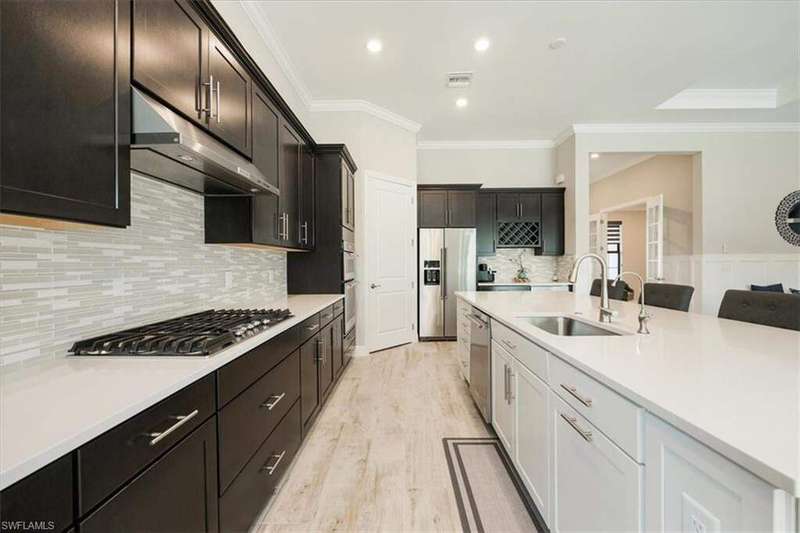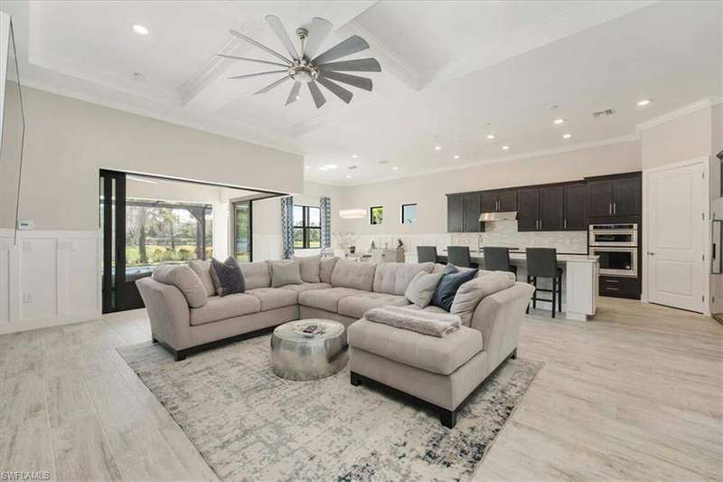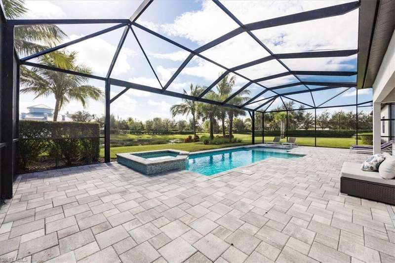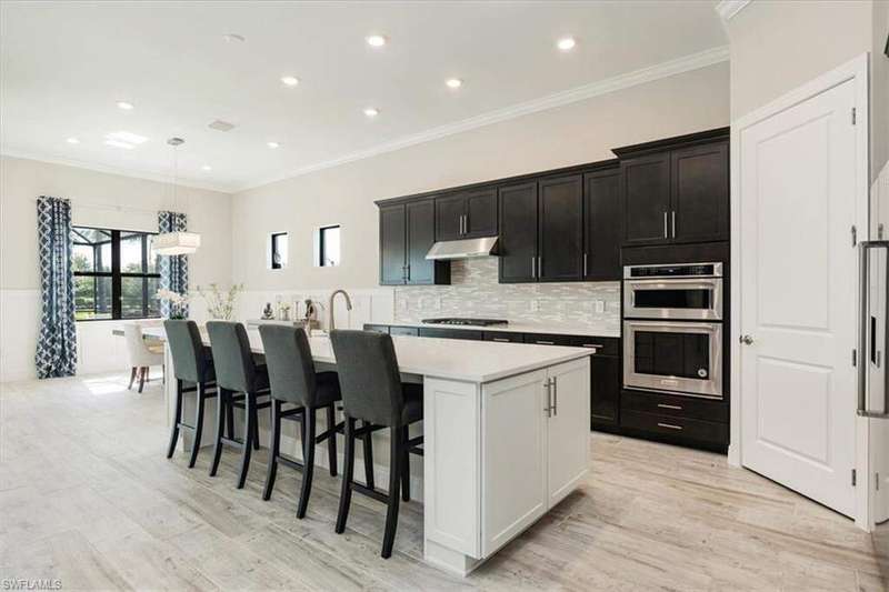 Welcome to Greyhawk at Golf Club Of the Everglades, a natural gas & beautiful Golf community located in North Naples off Vanderbilt Beach Rd! This upgraded & thoughtfully designed "Pinnacle model" features a heated saltwater pool & spa, outdoor kitchen, whole home natural gas generator for peace of mind, hurricane impact windows and doors, x flood zone, and is ideally located just steps from the Amenity Center (Tiki bar! Community Pool! Gym! Social Events & more!) Offering true resort-style living in a gated, guard-attended community. This home features 3 spacious bedrooms, plus den/office/4th bed option. 2 en-suite style bedrooms for guest privacy and convenience. Also features a lot of thoughtful upgrades- including tray ceilings, crown molding, wainscoting, and designer finishes throughout, along with an open-concept great room highlighted by an elegant wood-and-stone feature wall with electric fireplace. Kitchen has the larger upgraded island with extra storage, natural gas cooking, Kitchen Aid appliances, built-in microwave and oven, and a custom wine & coffee bar with wine cooler and storage pantry. 3-car extended garage with epoxy flooring truly fits 3 cars- or 2 large suvs and the Golf cart! Enjoy seamless indoor-outdoor living with zero-corner sliding doors opening to the expansive extended lanai featuring a picture screen cage, outdoor natural gas kitchen, and a heated saltwater pool and spa with sun shelf, bubbler, and color lighting. Reverse osmosis whole-house filtration system and a separate kinetico drinking system at the sink. Community Lifestyle: Greyhawk residents enjoy a vibrant social calendar and exceptional amenities, including a resort-style pool and spa, outdoor tiki bar, full-service indoor and outdoor dining, fitness center, yoga/pilates studio and classes, tennis, pickleball, bocce, and walking trails. The community is golf-cart friendly and offers golf privileges at the Golf Club of the Everglades May- October for any and all residents. Golf membership information and social membership information available in supplements. Greyhawk is a wonderful place to live, whether its year round or your winter get away- you wont be disappointed with this lifestyle here in paradise!