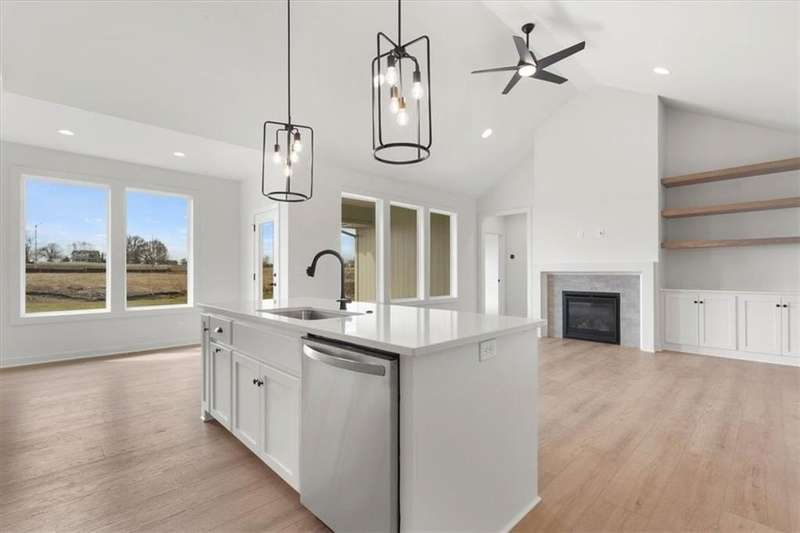 Highlands lot 24R. The Clover plan built by Roeser Homes. This home is a custom build job. PICTURES ARE OF A SIMILAR HOME. This great open plan includes arched doorways and a vaulted family room and kitchen ceiling! Just the right amount of space with the owner's suite and a second bedroom and bath on the main floor with a second living area on the lower level with daylight windows along with the third and fourth bedroom and third full bathroom. Tons of storage, too! Some of the other features of the home include gas cooktop, wall oven and microwave, and a gas fireplace. A nice sized pantry and laundry room are both right off the kitchen. The covered deck is protected on three sides! Enjoy golf course living in the beautiful Communities of Falcon Lakes!! Great highway access make all parts of the metro area easily accessible. It is less than 15 minutes to the Legends entertainment and shopping district and just 30 minutes to the airport. HOA provides lawn maintenance (mowing and treatments), maintenance of initial landscaping, snow removal over two inches, as well as paint, roof and gutters, as needed. Acclaimed Basehor-Linwood Schools!