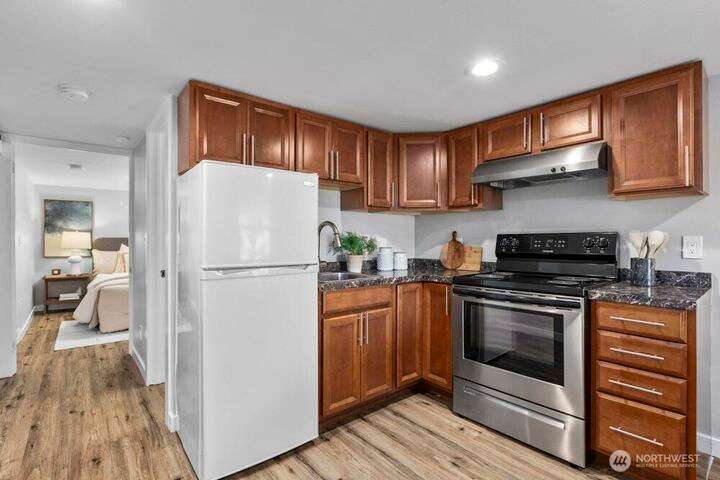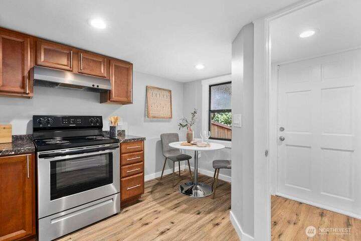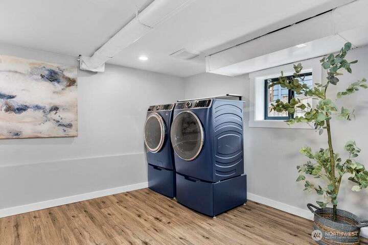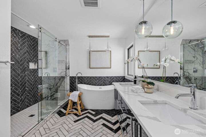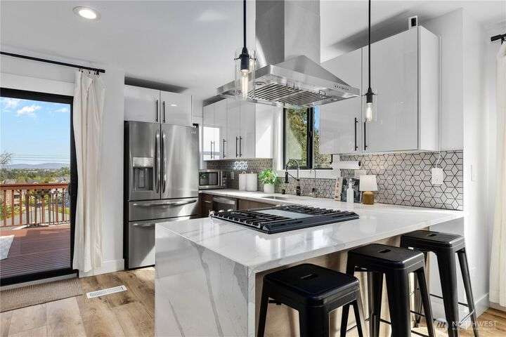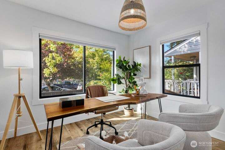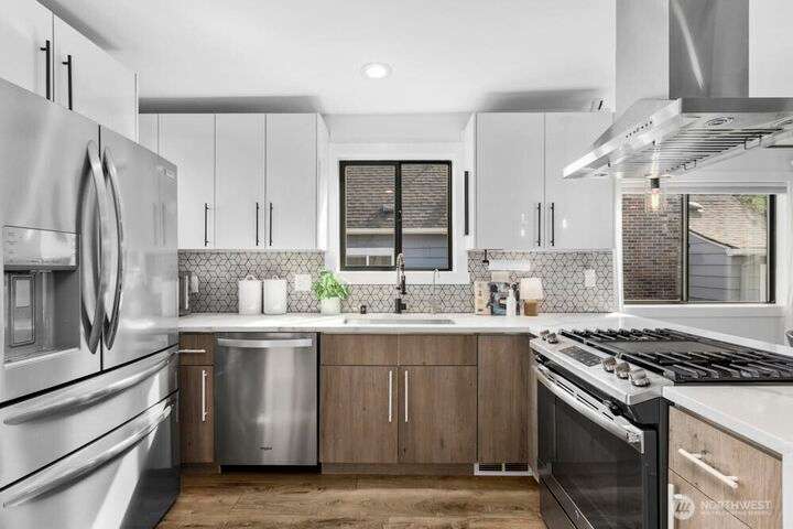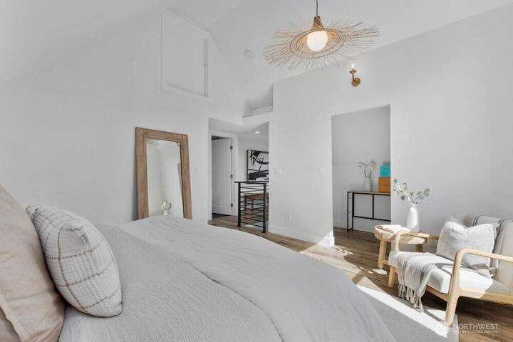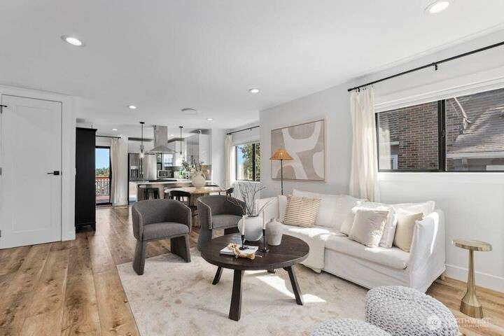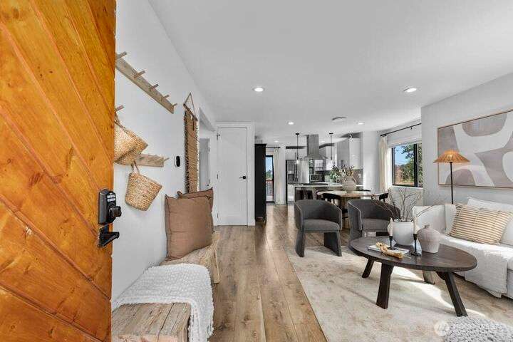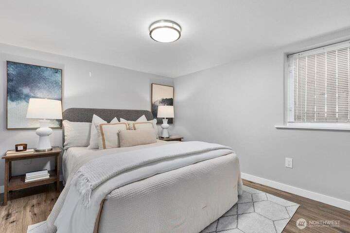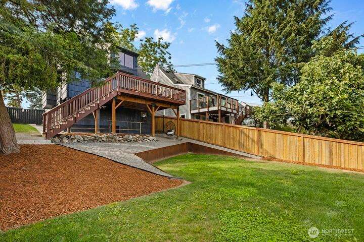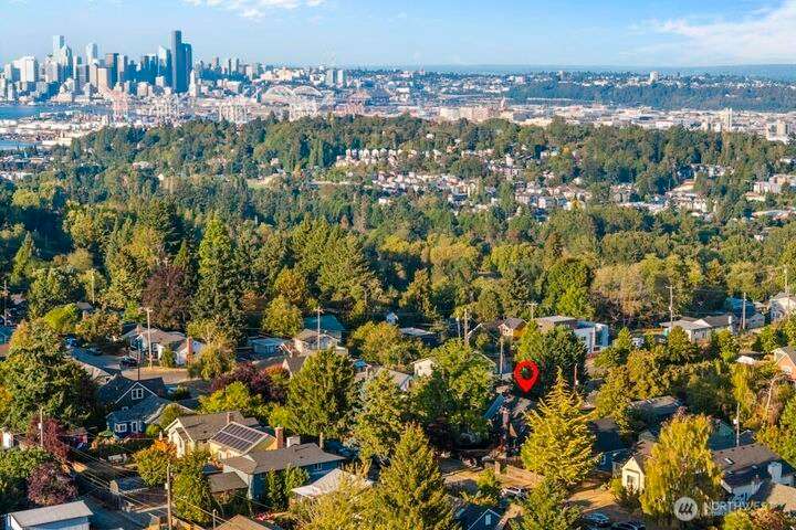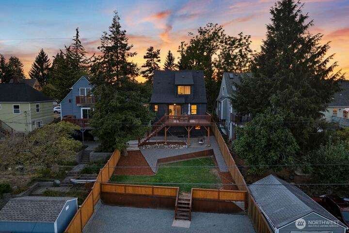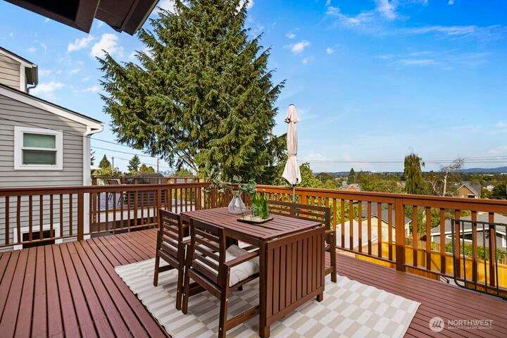 This renovated West Seattle Tudor is all about charm and lifestyle! Soak in the stunning Seattle skyline and Cascade views from your deck or retreat to the bright primary suite with spa-worthy bath. Cozy fires, lively dinners, or lazy Sundays—the wood-burning fireplace and open flow make it all easy. Fresh updates include new furnace/AC, paint, lighting, landscaping, and a refinished deck. The finished basement with its own entrance, kitchen, and bath is perfect for guests or rental income. Head to California Ave for the farmers market, coffee shops, shopping + restaurants, or visit nearby Alki Beach and Lincoln Park for beach days and sunsets. Two fenced parking spots & a huge garden-ready yard complete this gem! 4th bed is non-conforming.