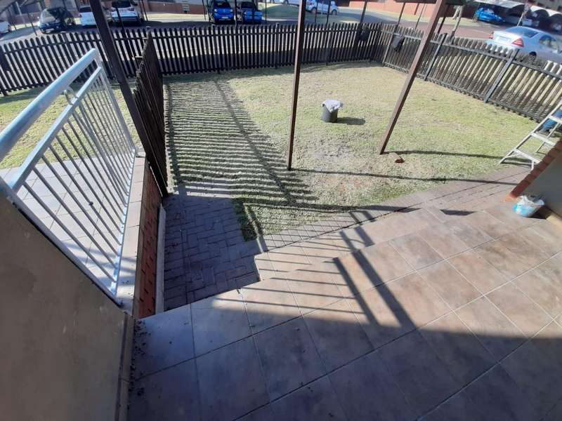 Ground floor apartment in a 24 hour security complex. Pet friendly Featuring 2 bedrooms - each with built in cupboards, 1 bathroom with bath and shower, modern kitchen, lounge area, single covered parking space. Communal pool, braai area and play ground for the kids in the complex. Prepaid electricity. Water included in the rental amount. Situated in Reyno Ridge, Witbank area, close to schools, shopping centres and various churches as well as easy access to main routes and public transportation.