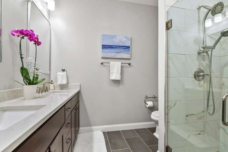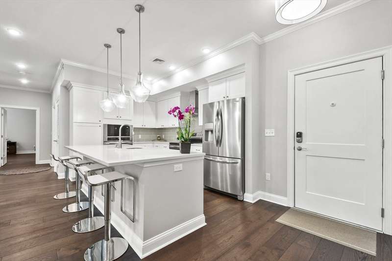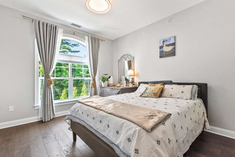 You do not want to miss this beauty with over 2,300 sq ft in this Luxury 55+ Community. 2 OVENS - 12' Quartz Island - 2BRs, loft and 2.5 baths - Large Balcony with beautiful wooded view. FABULOUS SYCAMORE 3 STYLE. Turnkey community - WHERE ALL THE EXTRAS ARE INCLUDED. UNDERGROUND PARKING. OPEN FLOOR PLAN. Hardwood,, quartz countertops in kitchen and baths, white cabinets, SS appliances and subway tile backsplash in kitchen and tiled bathrooms and showers. 9 ft ceilings & beautiful crown molding in the HUGE open concept living room, dining room and kitchen. Woodcrest AMENITIES include an ELEVATOR, COMMUNITY ROOM, kitchen, FITNESS AREA on 1st floor and SOLARIUM on 3rd floor. Situated in a quiet location minutes from Patriot Place, Brigham & Women's Foxboro health facility, Rte. 95 and Rte. 1 & 3 commuter rail stations. Storage room included. Includes garage parking space #28 with 150 amp service, storage unit #15, and second parking space #18.
