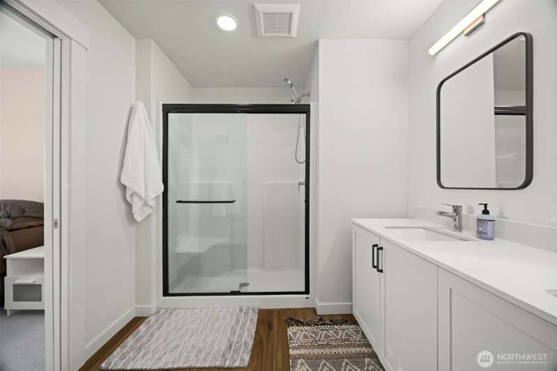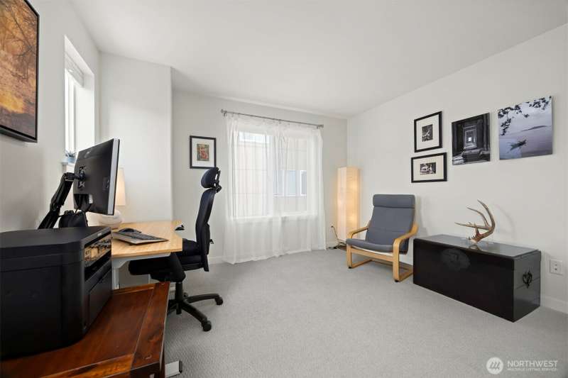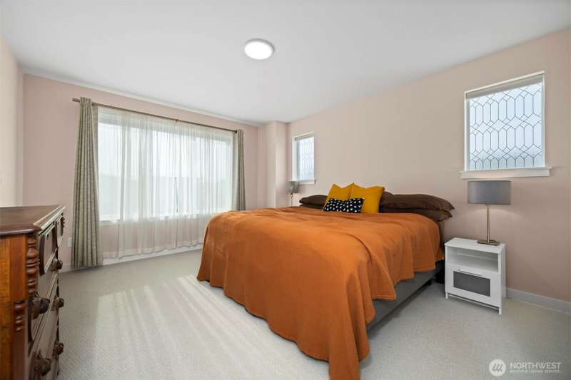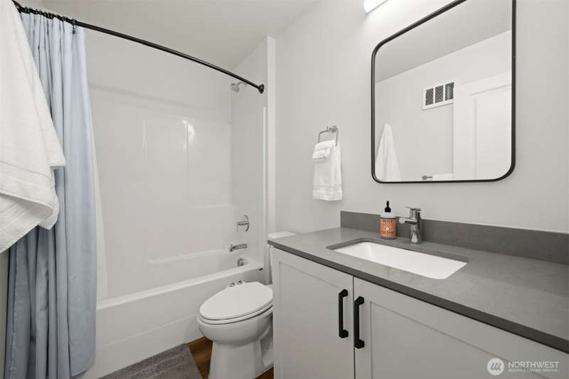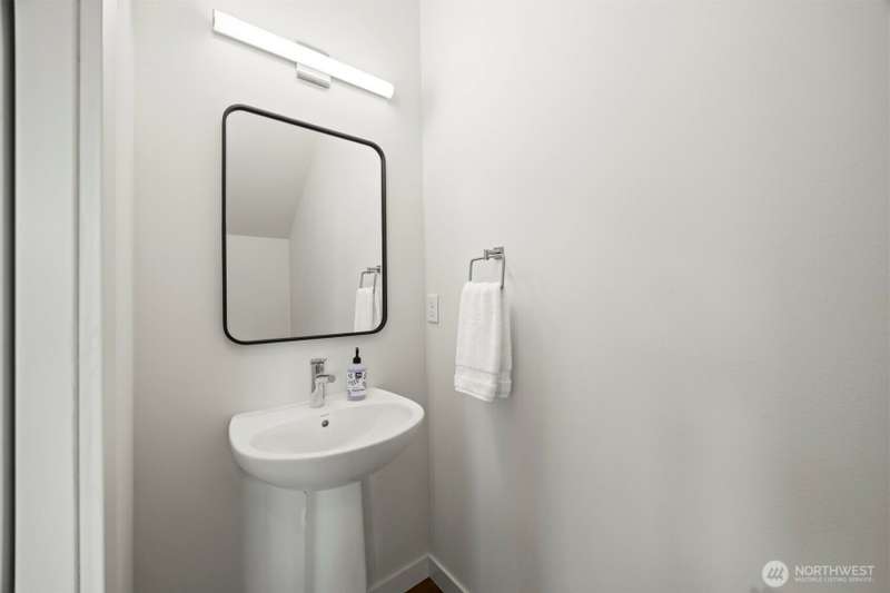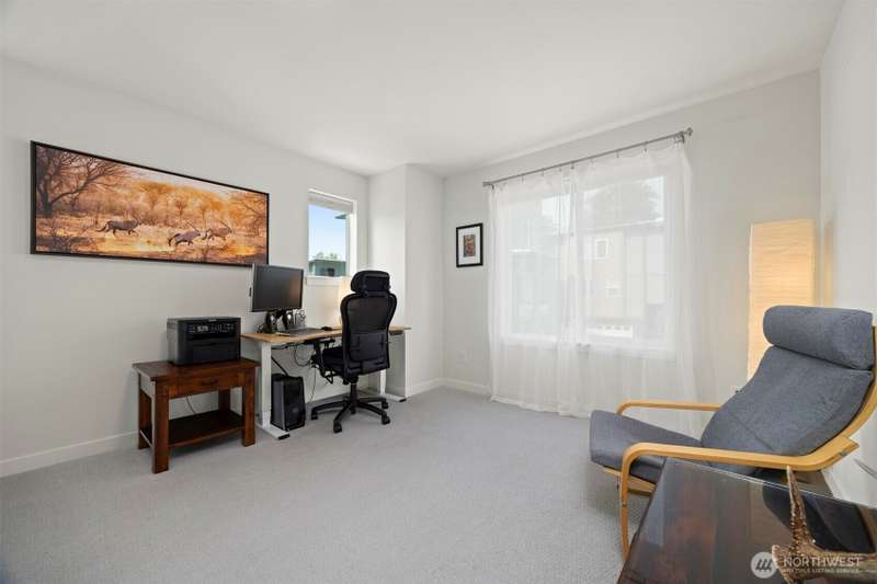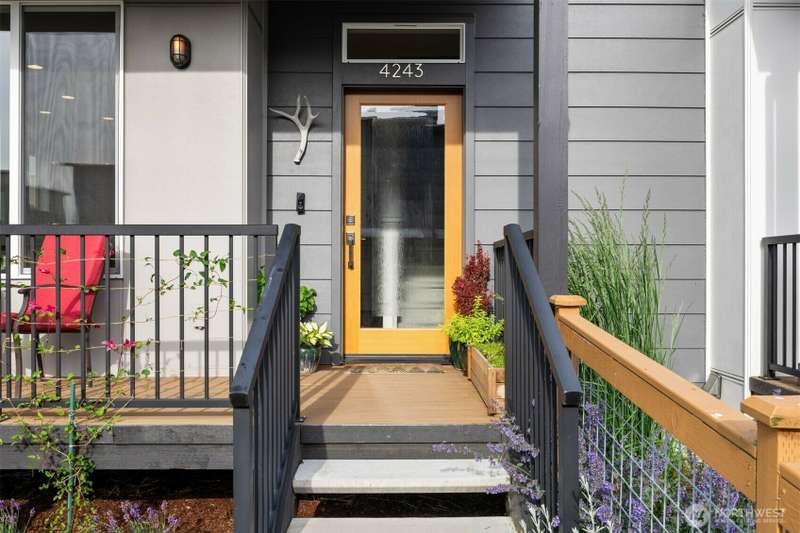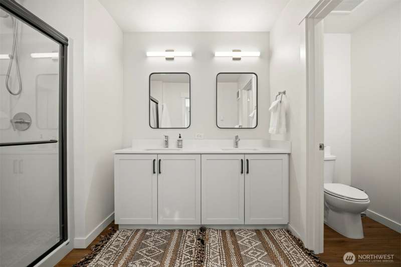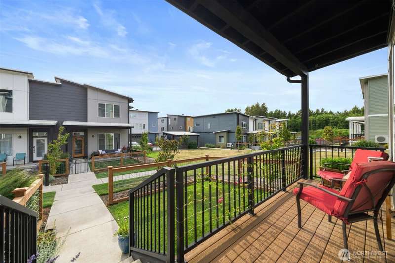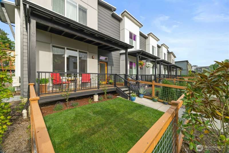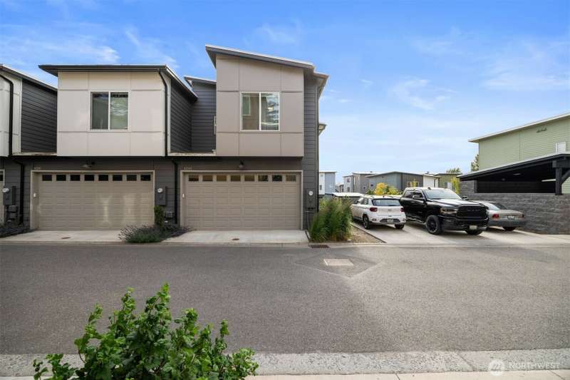 Sleek NW contemporary style meets everyday comfort in this energy-efficient end-unit townhome. Open-concept great room features 9’ ceilings, LVP flooring, & modern kitchen w/quartz counters, two-tone cabinetry, & eat-in bar. Luxe primary suite boasts a spa-like bath w/laundry nearby. 2nd bedroom & full bath perfect for guests! Stay cozy year-round w/high-efficiency mini-split system & 80-gal hybrid heat pump H2O heater. Enjoy the warmth of a fireplace, sip coffee on your charming front porch, or step into the green space just outside your door. 2-car garage adds convenience, all minutes from I-5, shopping, restaurants & trails