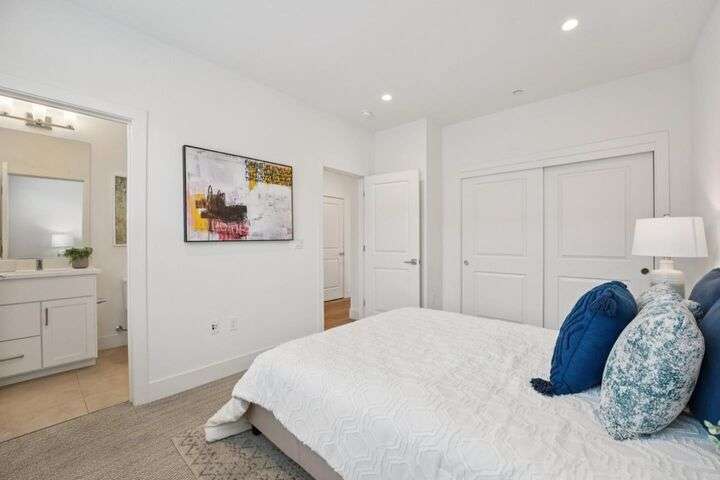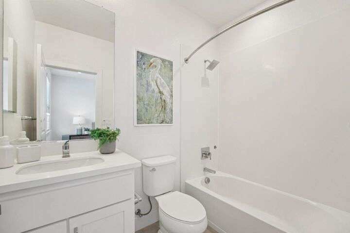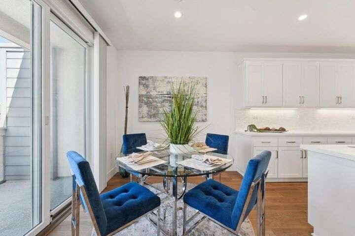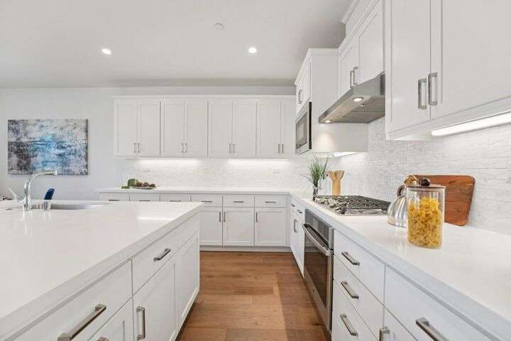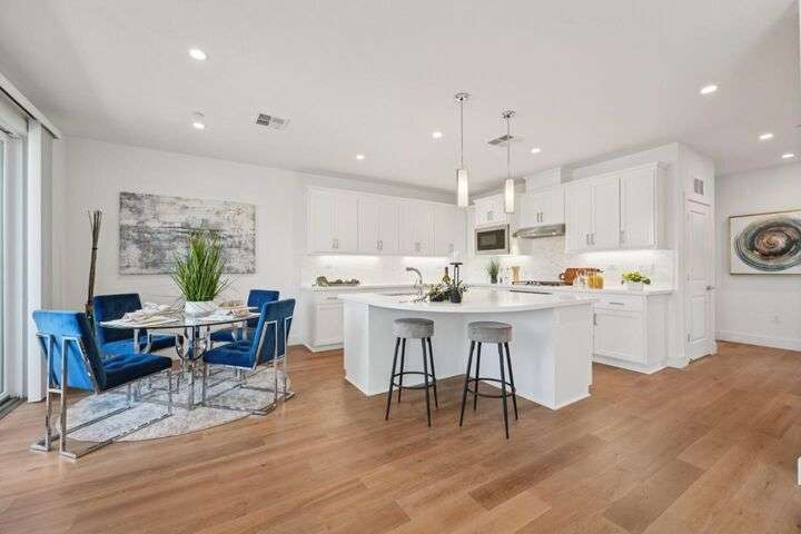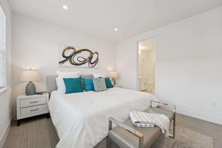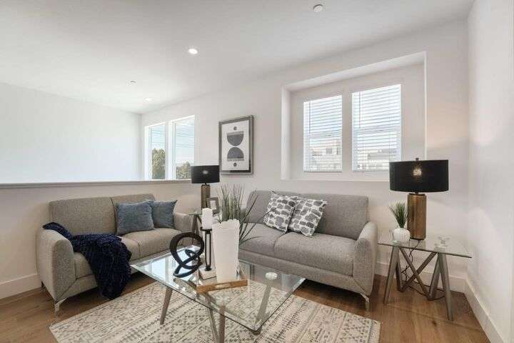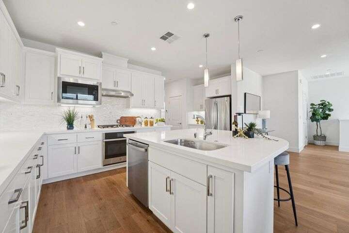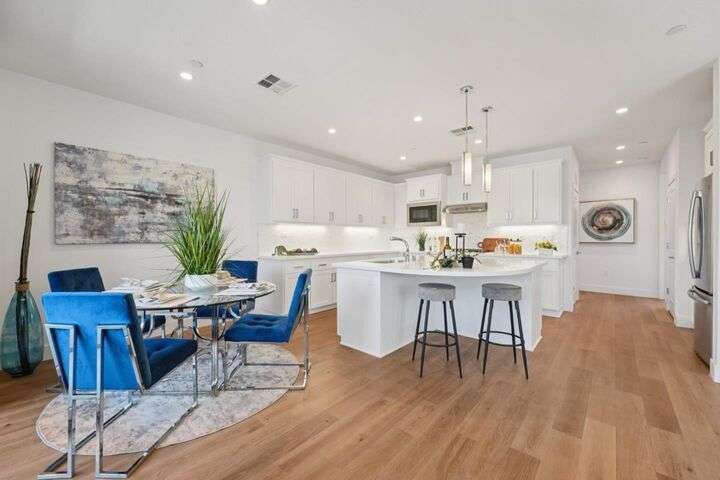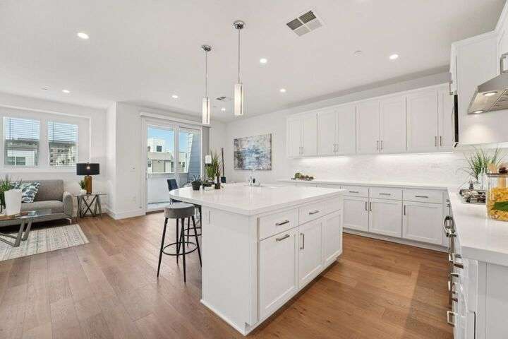 Welcome to this stunning newer-construction top-level condo, offering two private bedroom suites plus a powder room. Bright and airy with abundant natural light, the home showcases an inviting open-concept design featuring a spacious great room, engineered wood floors, and a gourmet kitchen with a large island, quartz countertops, white cabinetry, and GE stainless steel appliances. Enjoy seamless indoor-outdoor living with a balcony off the main living area and open park space outside the front door. EV charging in the 2 car side by side garage. We Located in a vibrant new urban town, residents enjoy 3 acres of parks, a community garden, basketball court, playground, and picnic area. Perfectly situated for convenience, the community is just within a short walking distance from Costco and with an easy commute to Apple, LinkedIn, Nvidia, Facebook, Google, etc and CalTrain station. This home blends modern luxury, effortless style, and unbeatable convenience.