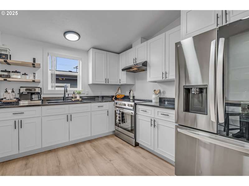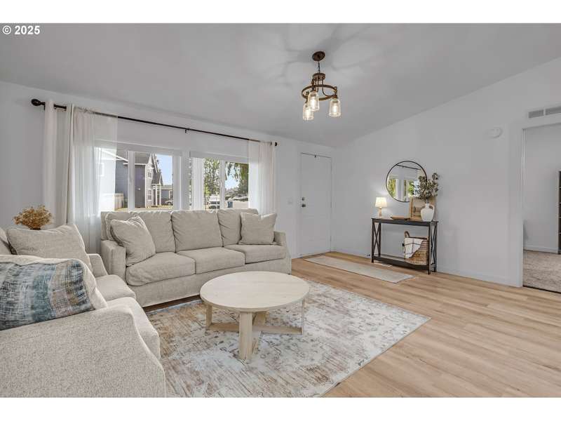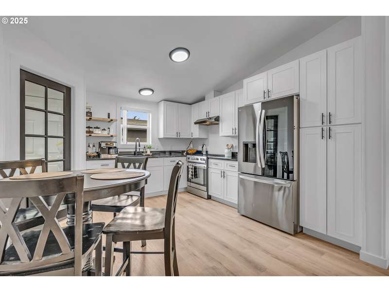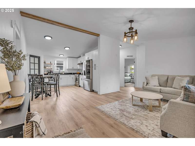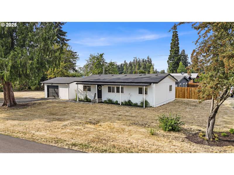 Welcome home to this beautifully updated 3-bedroom, 2-bath double wide manufactured home, perfectly situated on its own land on a generous corner lot. Recently remodeled with modern farmhouse style finishes, this home blends cozy charm with functional design. Step inside to an open floor plan featuring light, airy finishes that fill the space with warmth and natural light. The brand-new kitchen is the heart of the home, boasting sleek countertops, open shelving, and updated cabinetry perfect for home chefs and entertainers alike. The spacious primary bedroom is privately located on one side of the home, offering a full en-suite bath and plenty of room to relax. On the opposite end, you'll find 2 comfortable guest bedrooms and a second full bath, ideal for family or visitors. Additional highlights include a separate laundry room for added convenience and a detached garage offering extra storage or workshop space. The large, fully usable lot provides endless opportunities for outdoor activities, gardening, or simply enjoying your space in peace. With its thoughtful layout, stylish updates, and prime location of Aurora, this property is the perfect blend of comfort and country charm—ready for you to call it home.