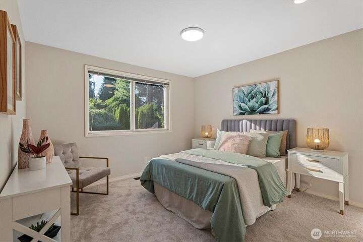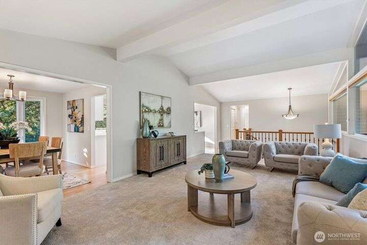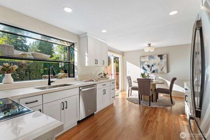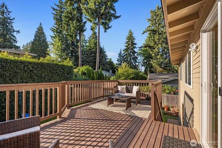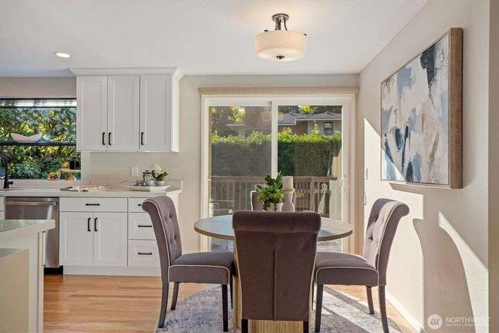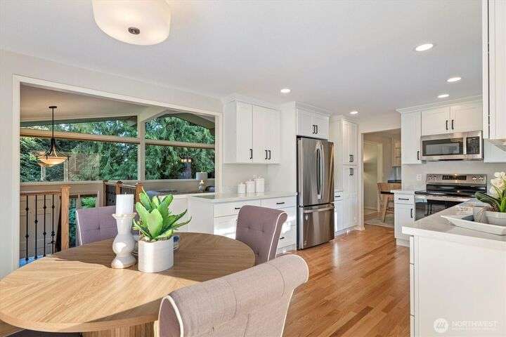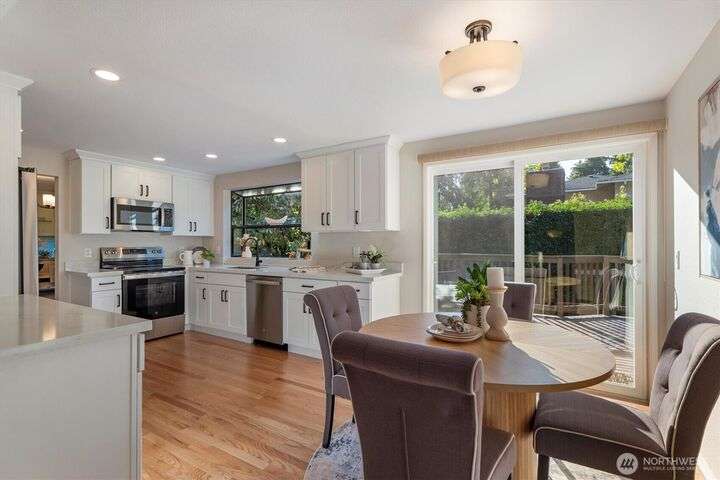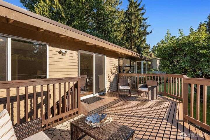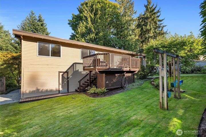 A newly remodeled classic home in desirable Enatai! 2 blocks to Enatai Elem & neighborhood park/playground; just 4 minutes to downtown. Functional & versatile layout features living, dining, & kitchen, plus 3 bedrooms & 2 bathrooms, on main level. Lower level includes 4th bedroom plus huge family room w/ bonus den/office/play area. Owner's suite w/ private bath, double closet, & deck. Excellent outdoor spaces around the private sunny yard, including 3 decks, lawn, play area, garden space, & storage shed. Updates include windows, roof, paint, closets, bathrooms, kitchen, flooring, lighting, & more. Quiet cul-de-sac street w/ low traffic. Long driveway w/ bonus parking space for guests and/or small RV/boat. XL garage w/ built-in storage.