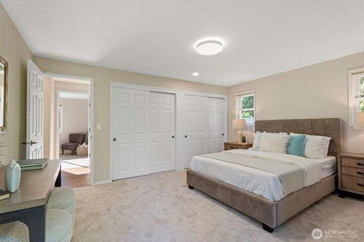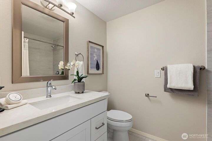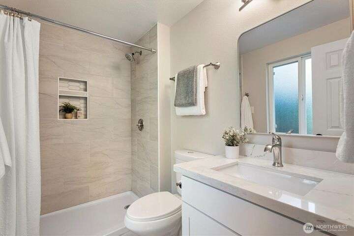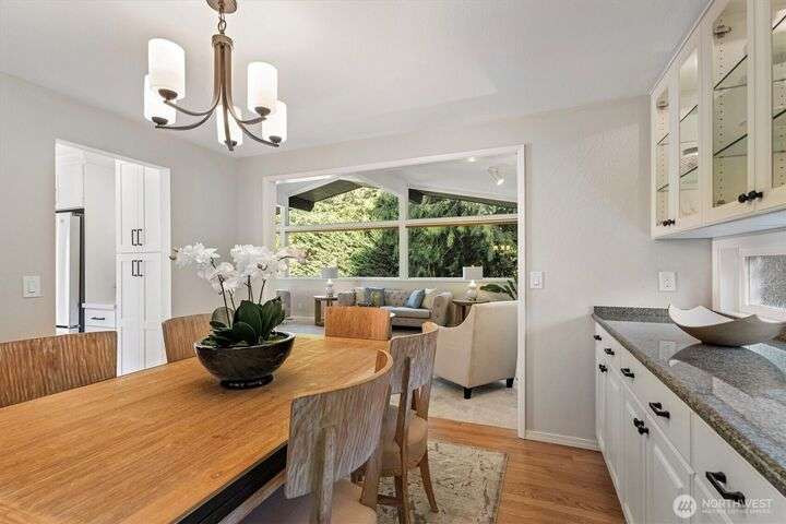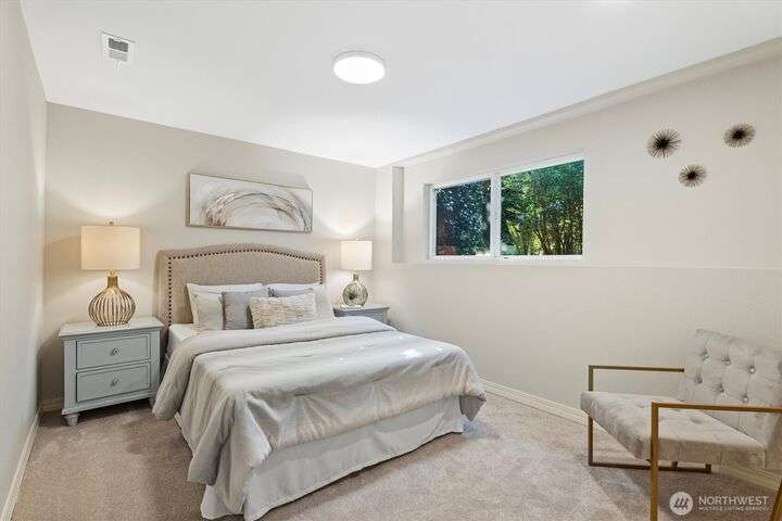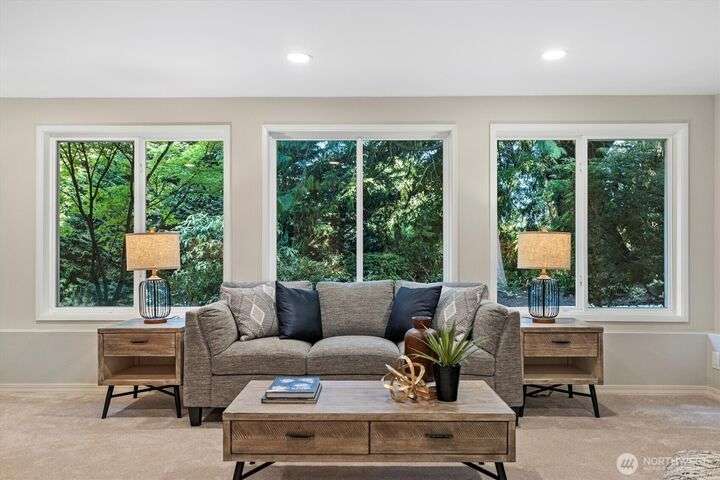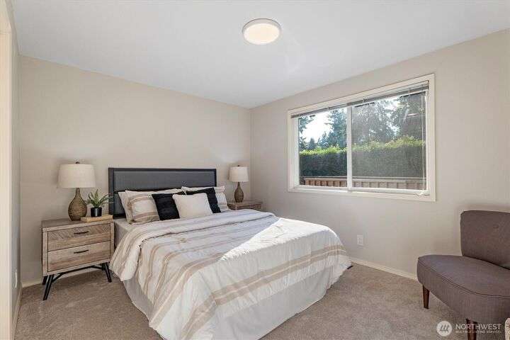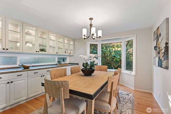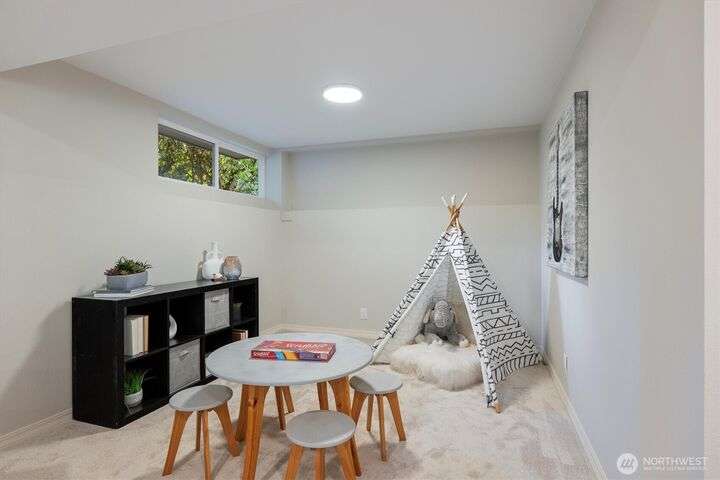A newly remodeled classic home in desirable Enatai! 2 blocks to Enatai Elem & neighborhood park/playground; just 4 minutes to downtown. Functional & versatile layout features living, dining, & kitchen, plus 3 bedrooms & 2 bathrooms, on main level. Lower level includes 4th bedroom plus huge family room w/ bonus den/office/play area. Owner's suite w/ private bath, double closet, & deck. Excellent outdoor spaces around the private sunny yard, including 3 decks, lawn, play area, garden space, & storage shed. Updates include windows, roof, paint, closets, bathrooms, kitchen, flooring, lighting, & more. Quiet cul-de-sac street w/ low traffic. Long driveway w/ bonus parking space for guests and/or small RV/boat. XL garage w/ built-in storage.