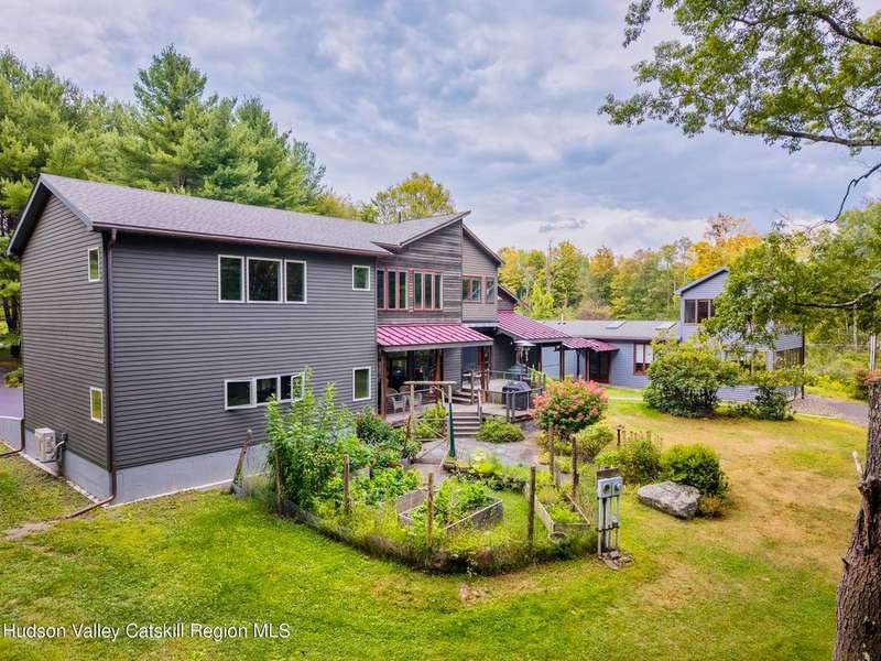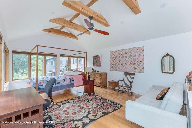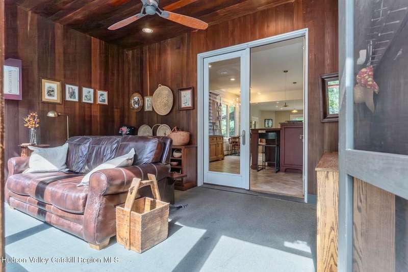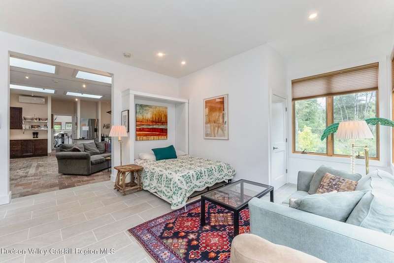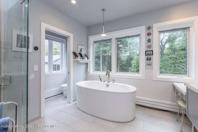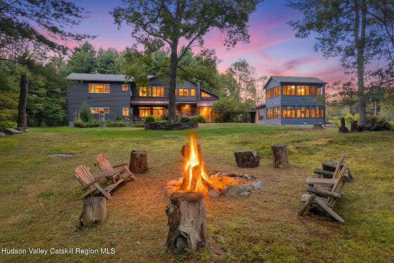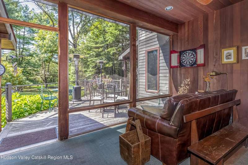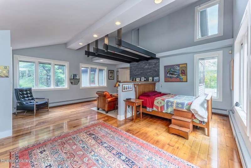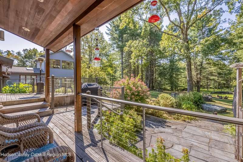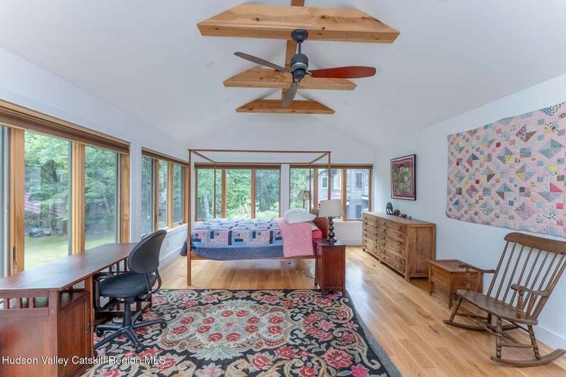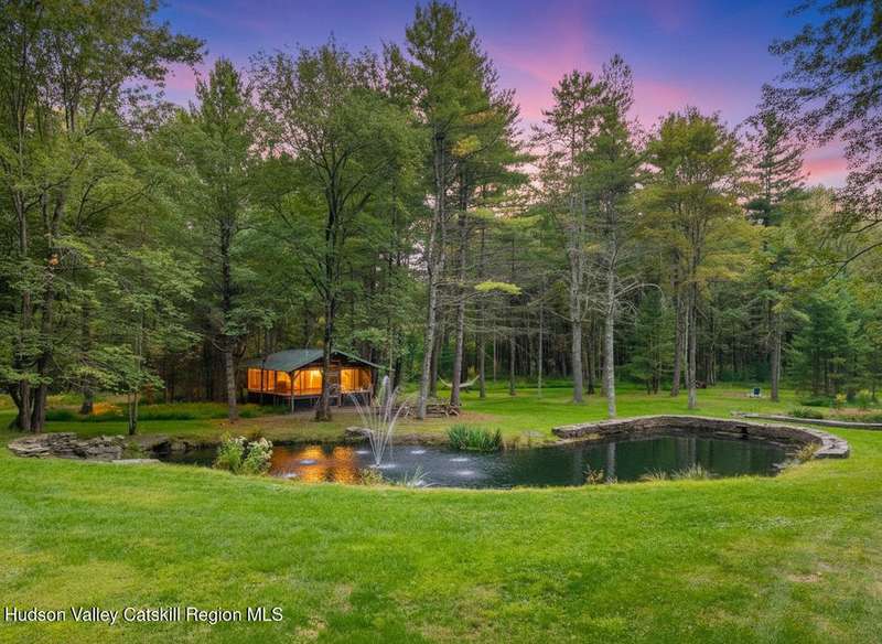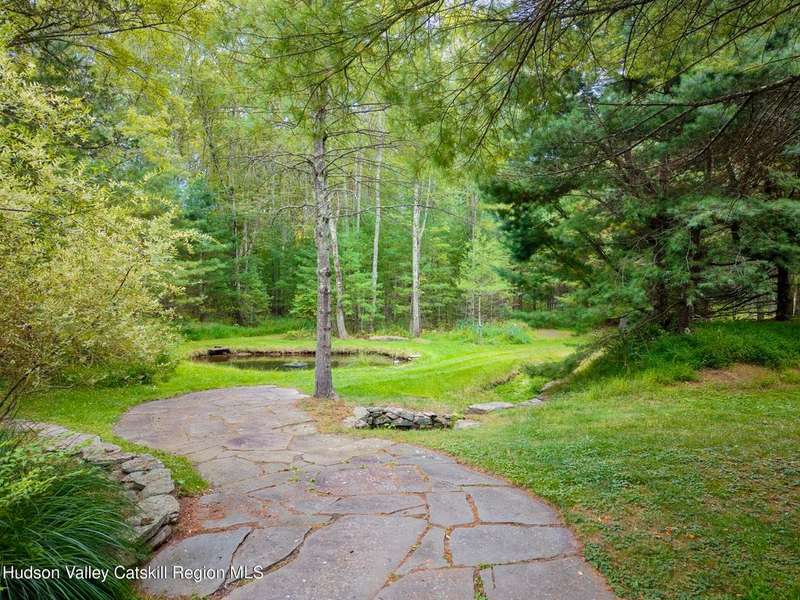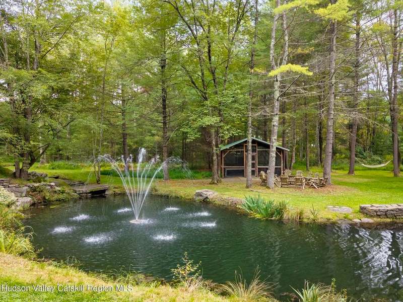 Set back down a long paved driveway, this property's picturesque setting provides complete privacy, breathtaking views and a tranquil atmosphere that truly defines country living at its finest. Discover the charm of this stunning 6 acre park-like property, featuring 3 ponds surrounded by stone walls (one with a timer-set fountain), meandering streams and frontage on the Rochester Creek. The adjoining property has been designated ''forever wild.'' For a unique outdoor experience, there is a custom built, equipped gazebo positioned to overlook the sparkling water ideal for outdoor entertaining and a cozy firepit to gather around and roast marshmallows. Custom built by a local craftsman and cabinet maker, this cedar sided masterpiece offers a peaceful retreat where every detail reflects thoughtful design and appreciation for nature's elegance. The custom gourmet kitchen is a chef's dream featuring top-of-the-line appliances, exquisite finishes, copious amounts of storage and ample space for culinary creativity. Hand pick fresh herbs and veggies from your own kitchen garden. Adjacent to the kitchen, the inviting screened room provides a serene space to enjoy morning coffee or relaxing evenings surrounded by nature. The multi-level deck with a view of the full backyard is a perfect place to dine and enjoy the hummingbirds, the great blue heron and fawns that prance about. All of this flows seamlessly into the large living room that overlooks the great outdoors. There is a large mudroom off the driveway that doubles as a game room with plenty of storage for shoes and coats. The primary suite is an oasis beyond compare tucked away from the other bedrooms. The bed is placed to look out on the ponds and luscious rear yard. Custom cherry floors, built-ins and outfitted closets add to the suite's luxuriousness. The bedroom's sitting room is a great place to unwind listening to music, watching a movie or cuddling up with a good book. Generously sized, but not overwhelming, this architectural gem offers private spaces while flowing perfectly for entertaining. A covered walkway leads to a stunning guest house with a gym and gracious living space which is beautifully designed. The main room hosts a generous kitchen, dining and sitting area with a stone fireplace. The living room/formal dining area is all glass and has a Murphy bed that can easily accommodate additional guests. Upstairs is a gracious bedroom overlooking the three ponds. Plenty of room to roam and enjoy luxurious living. You will never want to leave this paradise.