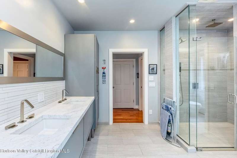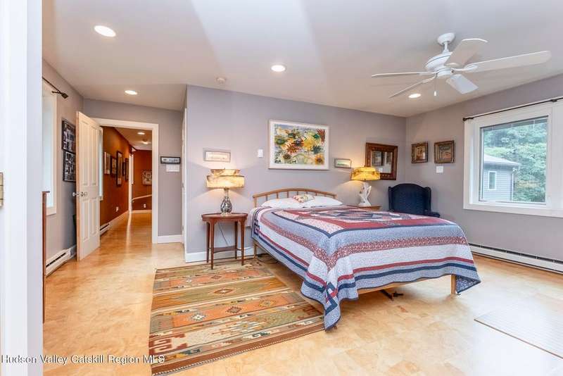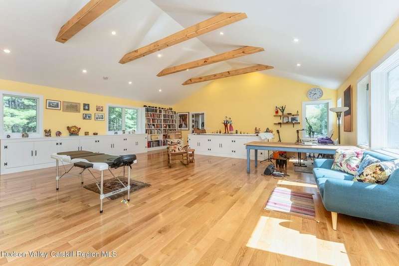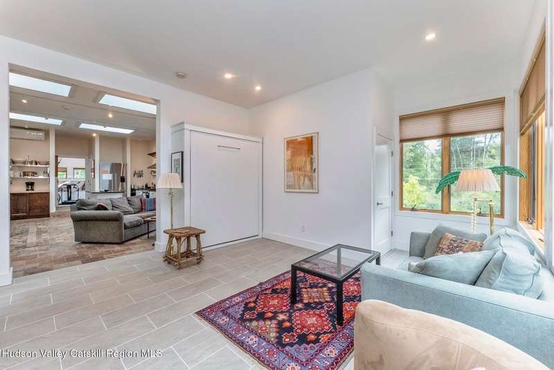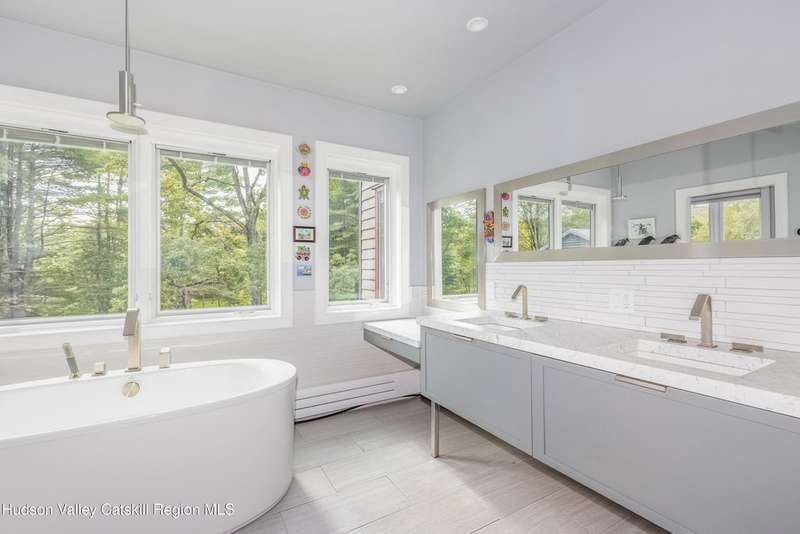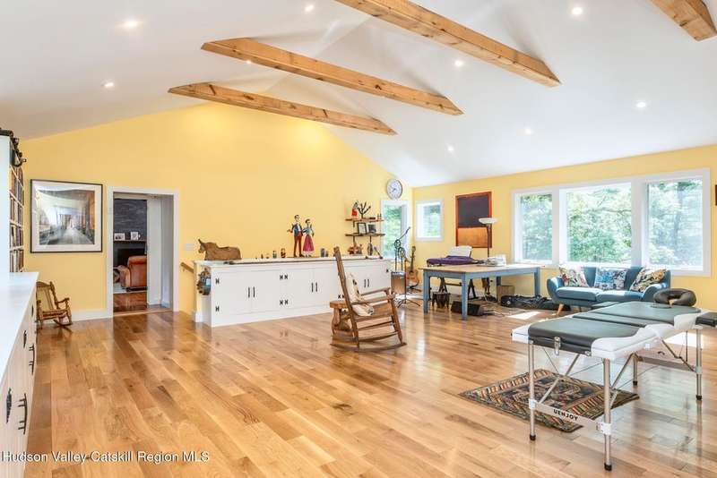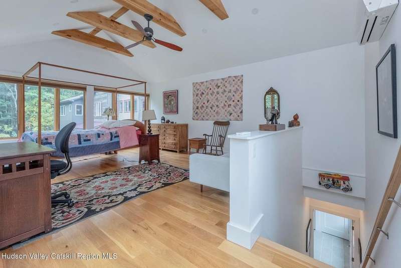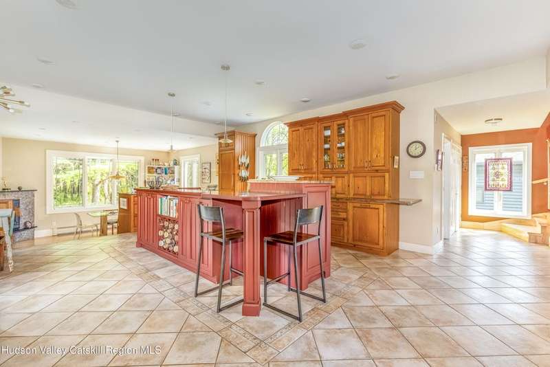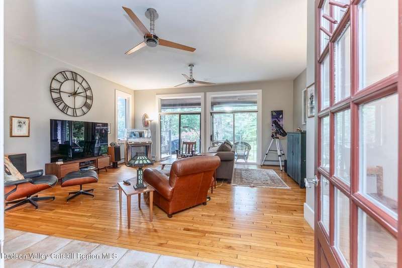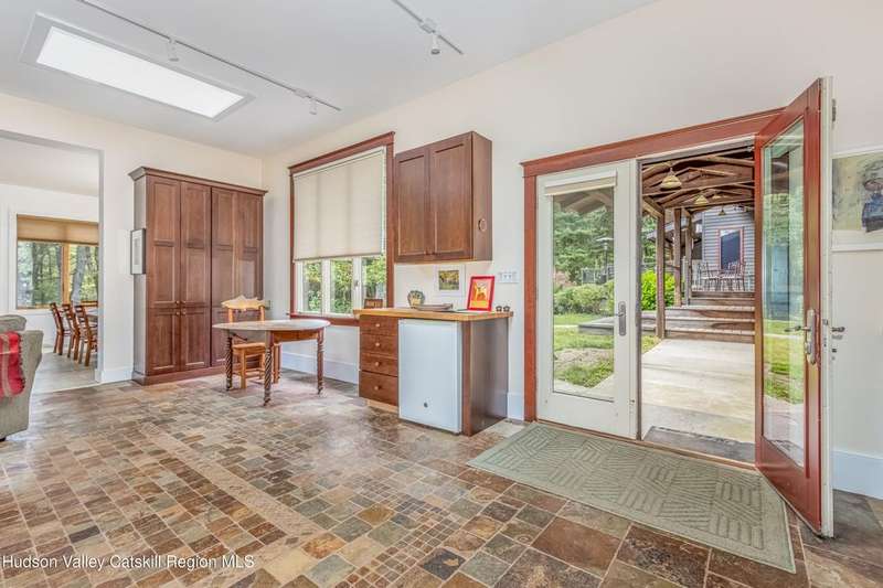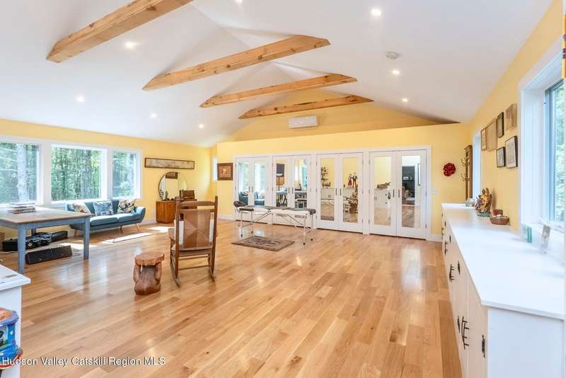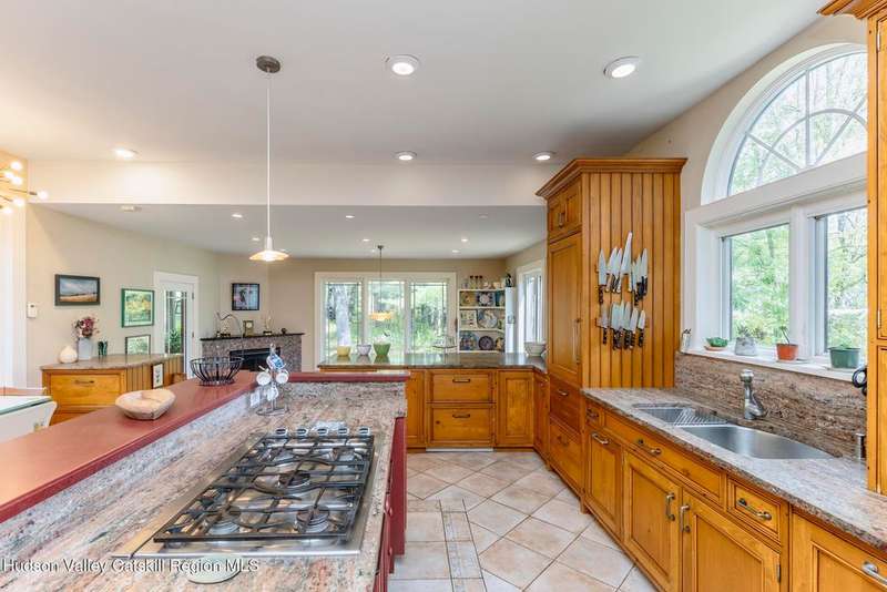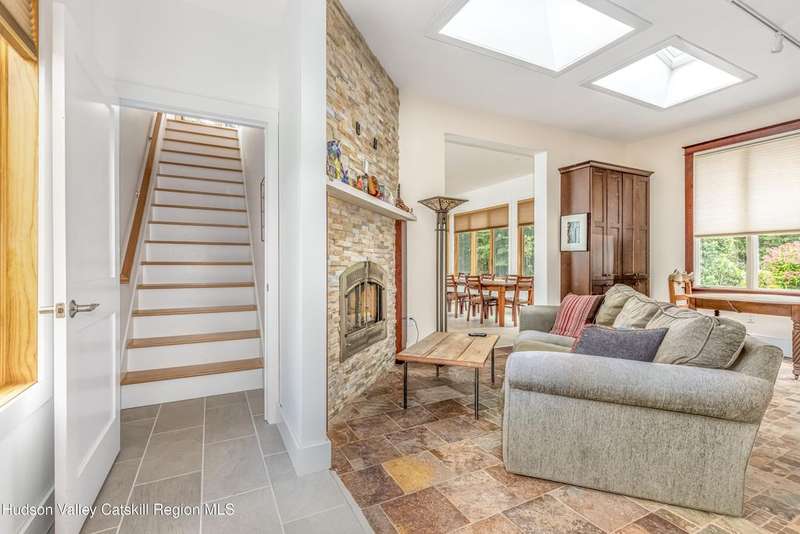 Set back down a long paved driveway, this property's picturesque setting provides complete privacy, breathtaking views and a tranquil atmosphere that truly defines country living at its finest. Discover the charm of this stunning 6 acre park-like property, featuring 3 ponds surrounded by stone walls (one with a timer-set fountain), meandering streams and frontage on the Rochester Creek. The adjoining property has been designated ''forever wild.'' For a unique outdoor experience, there is a custom built, equipped gazebo positioned to overlook the sparkling water ideal for outdoor entertaining and a cozy firepit to gather around and roast marshmallows. Custom built by a local craftsman and cabinet maker, this cedar sided masterpiece offers a peaceful retreat where every detail reflects thoughtful design and appreciation for nature's elegance. The custom gourmet kitchen is a chef's dream featuring top-of-the-line appliances, exquisite finishes, copious amounts of storage and ample space for culinary creativity. Hand pick fresh herbs and veggies from your own kitchen garden. Adjacent to the kitchen, the inviting screened room provides a serene space to enjoy morning coffee or relaxing evenings surrounded by nature. The multi-level deck with a view of the full backyard is a perfect place to dine and enjoy the hummingbirds, the great blue heron and fawns that prance about. All of this flows seamlessly into the large living room that overlooks the great outdoors. There is a large mudroom off the driveway that doubles as a game room with plenty of storage for shoes and coats. The primary suite is an oasis beyond compare tucked away from the other bedrooms. The bed is placed to look out on the ponds and luscious rear yard. Custom cherry floors, built-ins and outfitted closets add to the suite's luxuriousness. The bedroom's sitting room is a great place to unwind listening to music, watching a movie or cuddling up with a good book. Generously sized, but not overwhelming, this architectural gem offers private spaces while flowing perfectly for entertaining. A covered walkway leads to a stunning guest house with a gym and gracious living space which is beautifully designed. The main room hosts a generous kitchen, dining and sitting area with a stone fireplace. The living room/formal dining area is all glass and has a Murphy bed that can easily accommodate additional guests. Upstairs is a gracious bedroom overlooking the three ponds. Plenty of room to roam and enjoy luxurious living. You will never want to leave this paradise.