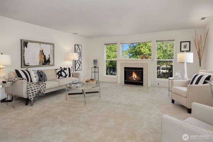 Providence Point Single Level Living. Beautifully maintained and thoughtfully designed, this end-unit all on one level offers effortless, low-maintenance living in style. The split-bedroom floor plan ensures comfort and privacy, while the open-concept living and dining areas bathed in natural light provide a warm and welcoming space for relaxing or entertaining, complete with a cozy fireplace perfect for cooler evenings. Enjoy your morning coffee in the cheerful kitchen nook or from the spacious viewing deck. All this in Highland Village of Providence Point’s vibrant 55+ community, where you'll find a wealth of amenities including clubs, activities, walking trails, transportation services, a library, and much more. Experience the lifestyle!