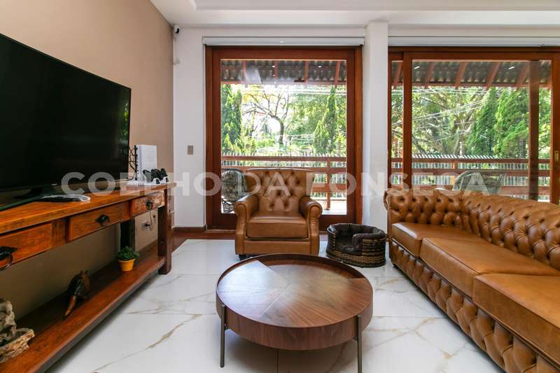 Casa com incrível terreno, muito verde e árvores frutíferas. Casa projetada para agradar seus filhos, com linda área de playground, várias casinhas de madeira, ponte e bancos, tudo integrado com a natureza. Imperdível! Piscina integrada à casa para receber amigos e desfrutar de tardes maravilhosas.