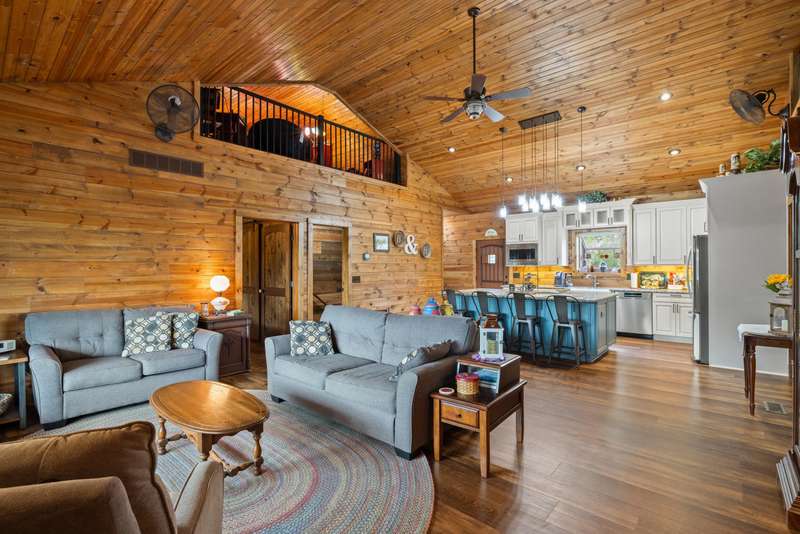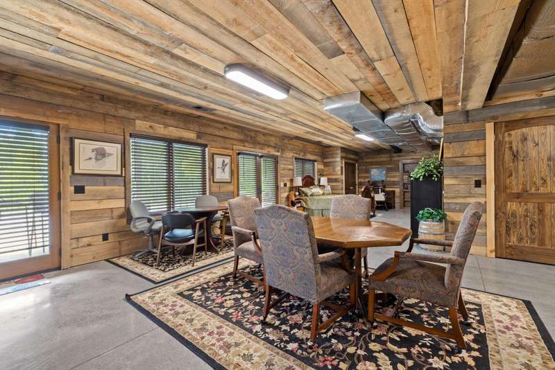 Designed with thoughtful craftsmanship and built for lasting quality, this one-of-a-kind lodge-style retreat is nestled on approximately 39.59 acres-just minutes from the heart of Frankfort, yet worlds away in feel. With wood-look steel siding and a high-grade metal roof, this home blends timeless rural charm with the benefits of energy efficiency and low-maintenance living. Inside, rich textures of reclaimed barn wood infuse warmth and character into the basement, garage, and spacious craft room. The heart of the home is an expansive great room, perfect for gathering, where vintage-style oscillating fans stir the fresh country air drifting through open windows. A large country kitchen anchors the living space, featuring granite countertops, soft-close cabinetry, a center island with cooktop, and seamless flow into the great room-ideal for entertaining. Three bedrooms each offer cedar-lined closets, while the three full bathrooms feature beautifully tiled walk-in showers. A versatile loft overlooks the main living area and serves as the perfect home office, reading nook, or hobby space.. The finished walk-out basement includes a generous entertainment space, wet bar, and accessible full bathperfect for hosting. Durable exposed concrete floors make post-party cleanup a breeze. Step outside to enjoy a partially covered wrap-around deck with pergola, a patio cooled by outdoor ceiling fans, and an outdoor shower with easy winterization access. A serene stocked lake with fountain and screened pavilionequipped with stone fireplace, water, and electricadds to the allure of the grounds. Other outdoor highlights include two additional ponds, a natural spring, orchard with apple, peach, and cherry trees, and a charming playhouse. For agricultural pursuits, the property includes a barn with water, electric, shed, and shop, plus a silo with feeding shed and ample fencingready for livestock or hobby farming. Additional features include: " Carrier geothermal system with humidifier and dehumidifier " Martin-brand windows and walkout doors " Triple-clamped metal roof " Easy drive-up access to basement level A rare opportunity to own a property that offers the peace and privacy of rural living without sacrificing modern convenienceswhere every detail invites you to relax, entertain, and enjoy nature in every season.