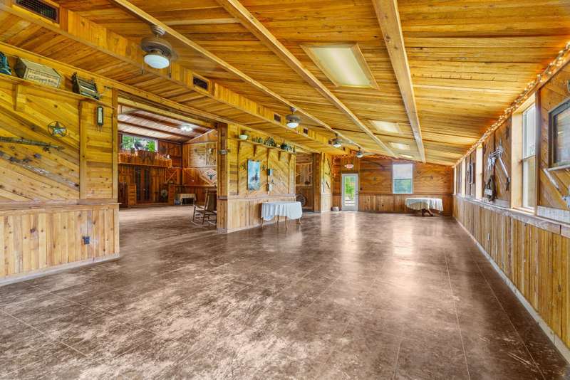 The Longhorn Hill Ranch Venue is a true getaway and a perfect place to raise a family, enjoy the ranch life, or escape the city. This barndominium features vaulted beamed ceilings, There are 2 huge doors where inside the facade says Jail and the other has a porch like look that can open for an outdoor experience. Notice there is a walk thru door if you want to leave the doors in place for a total indoor party. Trimmed w cedar wood for unique designs & themes. Providing a rustic western atmosphere the upstairs has living accommodations and a balcony overlooking the Ball Room. 2 bedrooms, Full kitchen ,3 baths, storage room. Less than 1 hour from downtown Dallas and DFW airport, this sprawling 63-acre Ranch offers large trees, a 32-acre lake ( owned by sellers and In soil and water conservation), a gazebo, lush pastures, This property is perfect for equine lovers. The Structure and gazebo are located near the lake to make a beautiful setting for weddings, cookouts, and pictures. Ideal location to live and work in a setting for family reunions, retreats, receptions, holiday parties, special birthdays, class reunions, bridal showers, church events, company picnics, & Christmas or New Year parties. Centrally located to many towns. Part of the property has ag exemption due to growing hay. No Mobile or manufactured homes will be added in deed restrictions. lake in a water and soil conservation area but per owners and survey is owned by the sellers. Buyer to verify if there are rules for the lake with Collin County SWCD. Additional 4 bedroom,3 bath, 2 living. Log House with shop on 3.5ish acres may be purchased with a year leaseback.