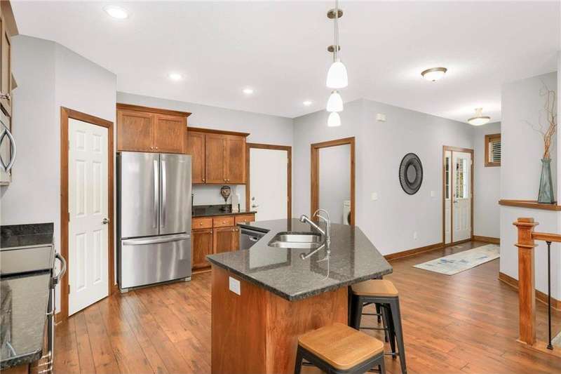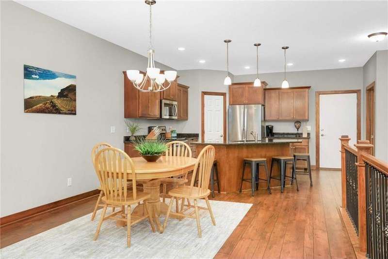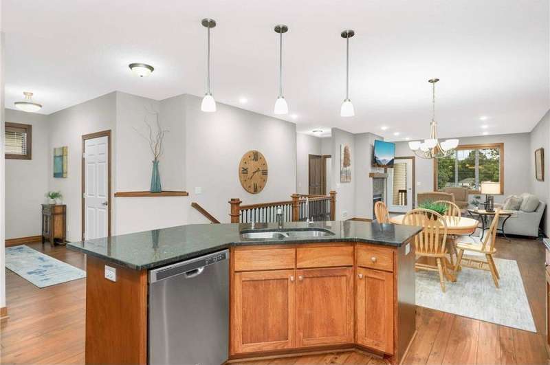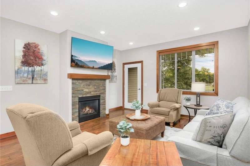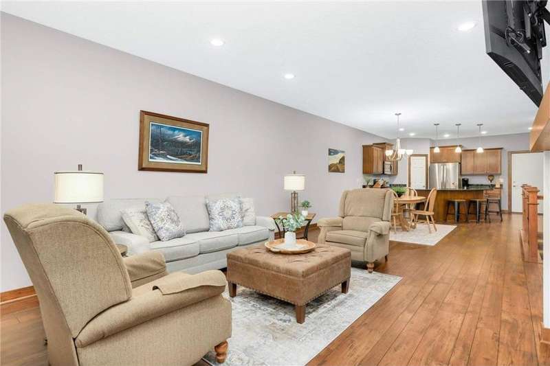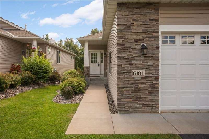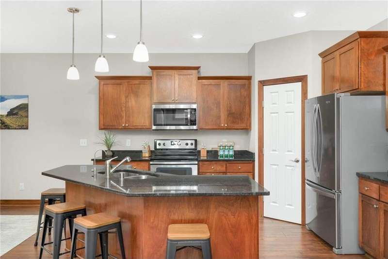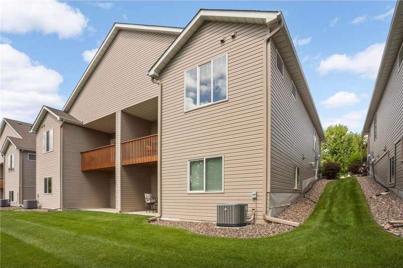Welcome to this beautiful, meticulously maintained 2018 built main level living end unit townhome featuring 2 bedrooms (both on the main), 3 bathrooms (including a private 3/4 primary), and an unfinished walkout lower level for future equity. Step onto the deck off the great room or the concrete patio out the walkout lower level and enjoy a private, lush green space. You will love the views from this unit as it is one of the best lots in the development, and both spaces are covered! This is maintenance free living at it's finest and the main level living you are looking for with a laundry room on the main level. Weather you are downsizing (the unfinished basement is perfect for storage) or looking for a seasonal place, this is the place to live. Close to the Twin Cities without the high price tag. This is a great place to call your next home.