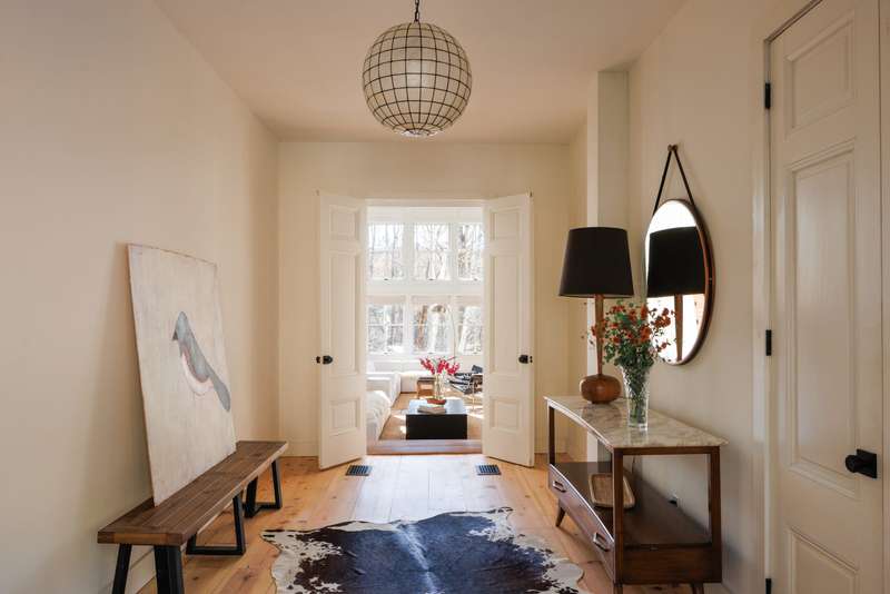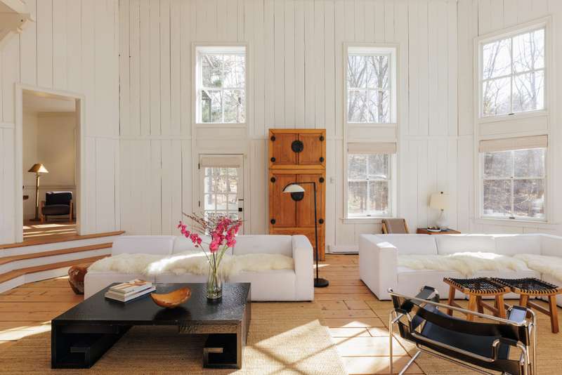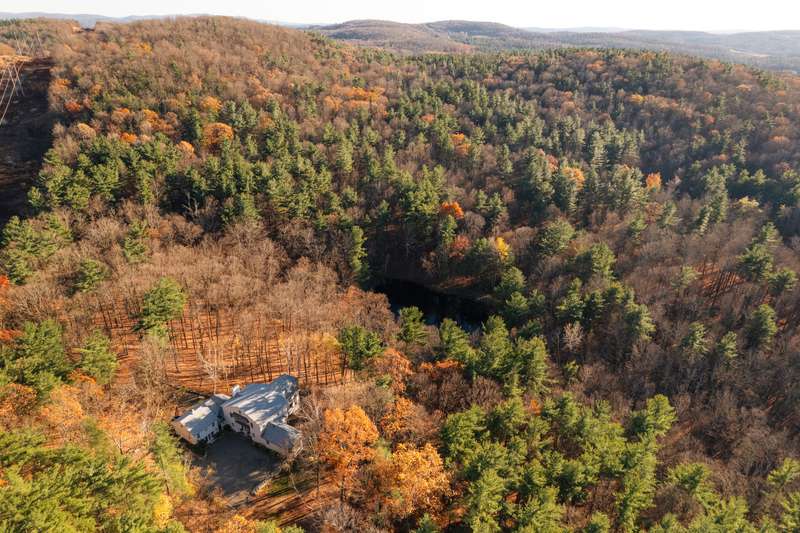 Where Norman charm meets Hudson Valley splendor, 'Dragonfly' stands as a fine example of country living - a rare 130-acre estate that marries grand European sophistication with the pastoral beauty of Claverack. Just twenty minutes from the cultural centers of Hudson and the Berkshires, this property strikes a balance between secluded sanctuary and connected countryside living.A winding private drive leads to the 7,200-square-foot Normandy-style residence with its stately stucco facade. Inside 'Dragonfly'', the great room emerges as the heart of this extraordinary home, where soaring ceilings and dramatic walls of glass dissolve the boundary between interior luxury and a wall of white birches and the natural woodlands that lead to the private swimming pond beyond.Twin wood-burning fireplaces anchor this light-drenched gathering space, which flows to outdoor terraces and a dining room that adapts as gracefully to intimate family gatherings as it does to large dinner parties. The chef's kitchen has a professional-grade 48-inch range, generous island, and abundant storage, with a wall of french doors opening to a large terrace for summer gatherings.The primary suite is accessible via a sculptural staircase with a beautiful artisanal, wrought iron railing. The suite features a sitting room, spa-inspired bathroom with dual shower and soaking tub, walk-in closet, and a serene bedroom warmed by a gas fireplace. A private balcony offers a view over the estate's pastoral panorama.Four additional en-suite bedrooms are distributed throughout the residence, ensuring privacy and comfort for family and guests alike. The home's lower level spans the full footprint, including dedicated quarters for a caretaker.'Dragonfly' is more than a home; it's a rare mix of architectural grace and a natural landscape that threads through the historic, stone walls to the private swimming pond and dock.For the discerning buyer seeking an extraordinary estate property in one of the Hudson Valley's most coveted locations, this singular offering is worth a visit.