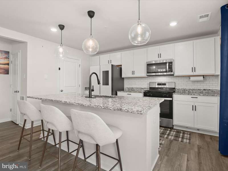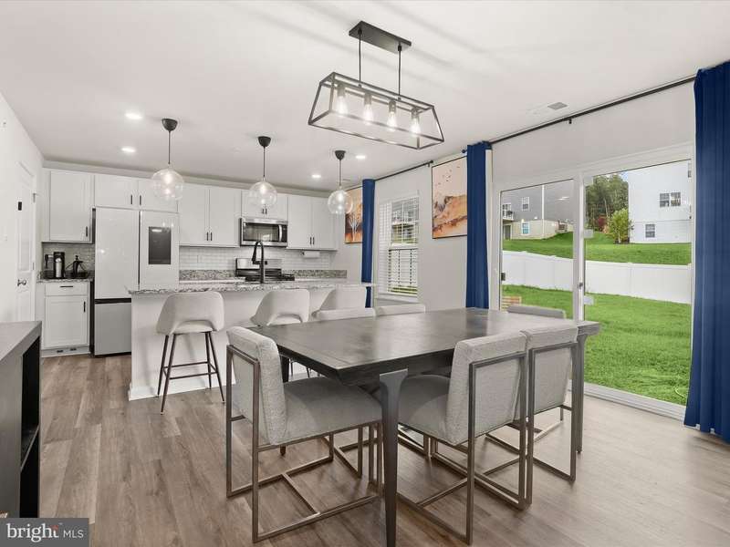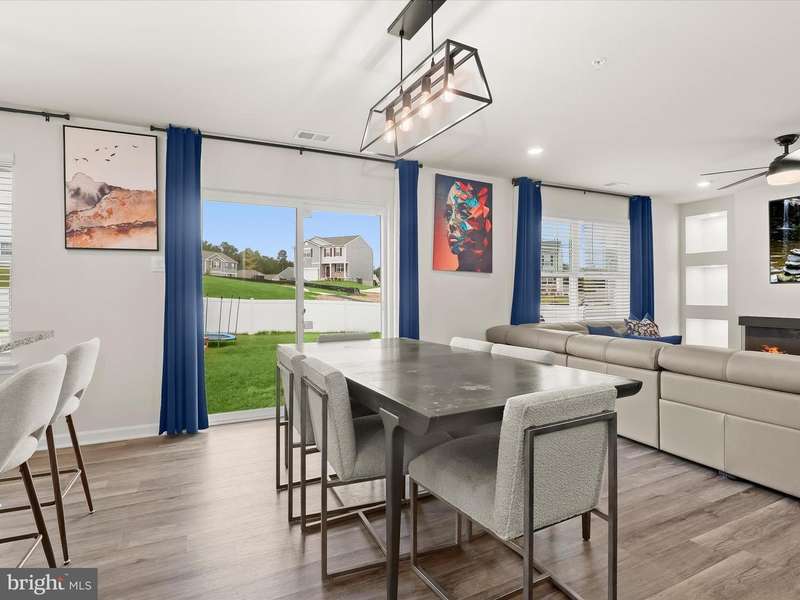 Offering four bedrooms and two and a half bathrooms, this 2024 built D.R. Horton home is located in Ridgely's Reserve, Joppa's premier new community. The open-concept main level features luxury vinyl plank flooring and a living room with custom lighted built-ins and a gas fireplace. The dining area opens through sliding glass doors to the fenced backyard, while the kitchen is highlighted by granite countertops, a subway tile backsplash, upgraded appliances, an island with seating, and a pantry. Finishing the main level is a half bathroom and access to the two car garage. Upstairs, the primary bedroom boasts a walk-in closet and private bathroom with a dual vanity and walk-in shower. Three additional bedrooms, a second full bathroom with a tub-shower, and a laundry room complete the upper level. Outside, the large fenced backyard offers plenty of space for everyone's activities. Community amenities include a playground, open green spaces, walking trails, and a ball field. Conveniently located in Harford County's I-95 corridor, the home is just minutes from downtown Bel Air for shopping and dining, one exit from White Marsh, and an easy commute to Baltimore.