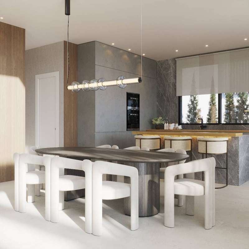In a scenic and highly sought-after location surrounded by nature's beauty, you'll find a collection of 12 luxury villas boasting modern elegance. Tucked away in peaceful surroundings, each villa is carefully designed to blend harmoniously with its natural setting, offering a tranquil and exclusive living experience. Conveniently positioned between Estepona and Marbella, our villas enjoy panoramic views while still being easily accessible from major roads. Situated near La Resina Golf Club on the New Golden Mile, our retreat provides a perfect balance of tranquility and convenience. Designed to maximize natural light, each villa features large windows and high ceilings, creating a bright and airy atmosphere throughout. With careful attention to detail, our homes offer unobstructed views of the Mediterranean, providing a sanctuary for relaxation and contemplation. Experience the luxury of soaring ceilings and breathtaking views as you step into our architectural masterpiece. Our vill