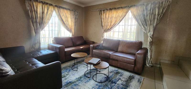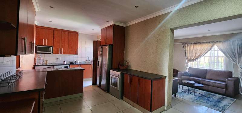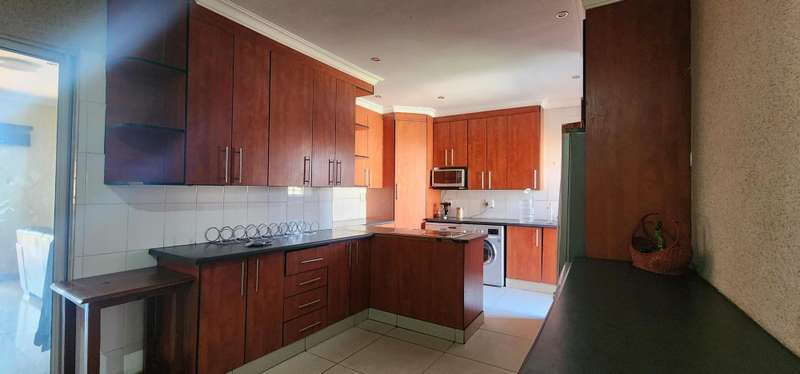 Three spacious bedrooms, Two modern bathrooms. Three versatile living areas for relaxation and family time. Large kitchen, perfect for family. Two garages, accommodating up to 4 vehicles. Spacious enclosed erf. Call me now