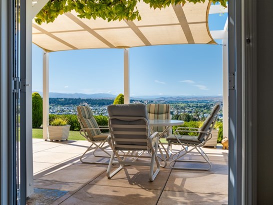 Commanding a premier position with sweeping views from vibrant townscape to majestic mountain ranges, this architectural masterpiece offers a living experience beyond compare. Designed by acclaimed architect Hamish Wixon, the home is a celebration of bold style and sophisticated flair. Spanning two expansive levels, its presence is both striking and refined. From the moment you step onto the tiled entrance, you're met with a sense of grandeur - but it's as you move into the heart of the home that the true "wow" factor reveals itself. The designer kitchen is a fusion of form and function, boasting stone benchtops, premium appliances, and a walk-through scullery that adds practicality with elegance. Comfort is assured year-round with double glazing, flued gas heaters, heat pumps, and underfloor heating - all thoughtfully positioned to harness sunlight throughout the day. Entertain in style from the sun-soaked deck or private patio. Slide open the doors and let the panoramic views pour in, while guests enjoy the beautifully landscaped grounds - complete with lush lawn and a walking trail leading to a hidden cave tucked into schist rock and exotic plantings. Inside, space and flexibility abound. Three generous bedrooms plus a fourth bedroom or office provide ample accommodation for families or guests. The master suite is a private sanctuary, positioned to embrace the vistas and featuring its own secluded balcony. A fully tiled, modern bathroom adds a touch of luxury and ease. Completing the package: a double garage currently used as a workshop/studio (easily converted back), a double carport, off-street parking, and manicured, low-maintenance grounds that balance natural beauty with effortless upkeep. Fall in love with the views, the ambience, and the unmatched privacy. This is more than a home - it's a lifestyle. Don't delay. Viewing by appointment only - contact Carol today to arrange your private tour.