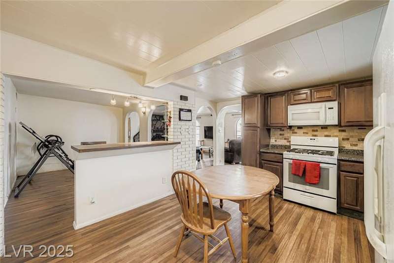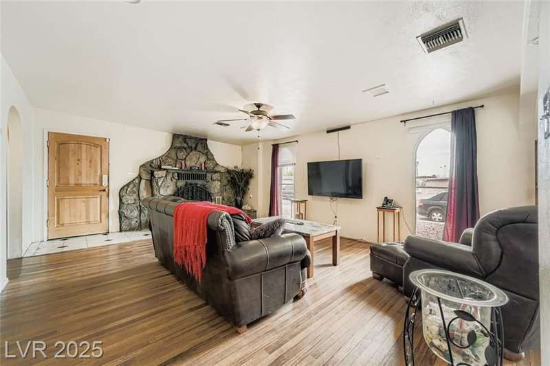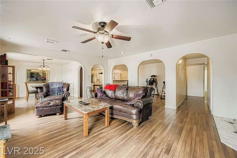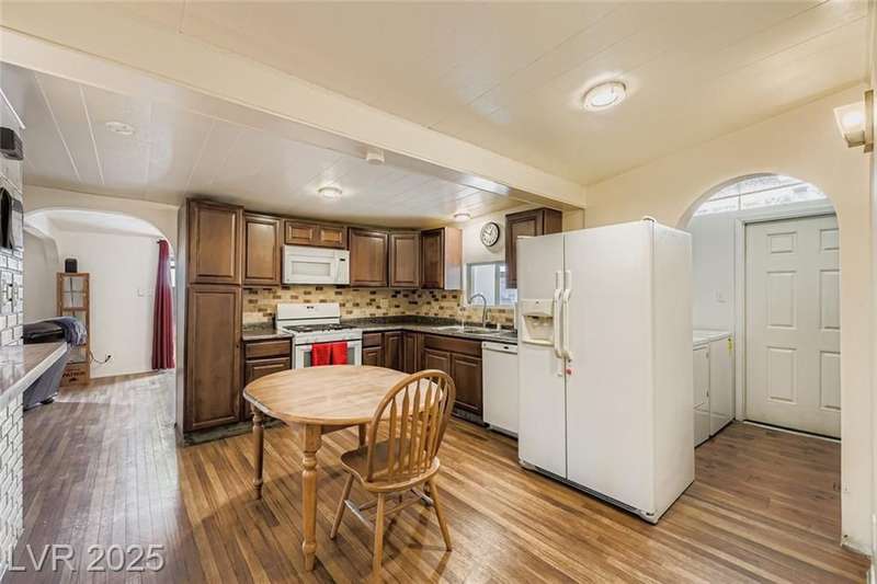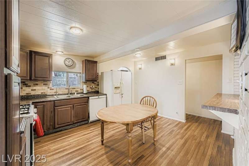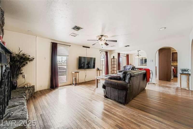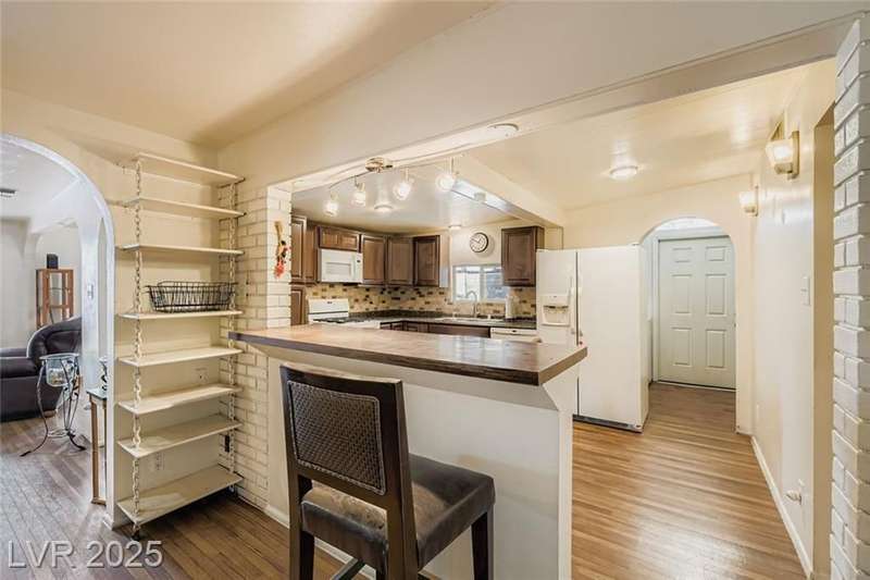 Charming 4-Bedroom Corner Lot Home with No HOA! Discover this inviting 4-bedroom, 2-bathroom single-story home offering 1,834 sq ft of comfortable living space on a 6,098 sq ft corner lot. Built in 1962, this property blends classic character with modern touches. Inside, enjoy an open and bright layout featuring hardwood look vinyl floors, a cozy stone fireplace, and elegant arched transitions between living areas. The large eat-in kitchen is enhanced with a stylish backsplash, making it perfect for everyday cooking and entertaining. The spacious backyard provides endless potential?whether for outdoor living, a garden, potential RV parking, or a future pool?without the restrictions of an HOA. Conveniently located near shopping, dining, and freeway access, this home is ideal for families, first-time buyers, or investors looking for a great opportunity in Las Vegas.