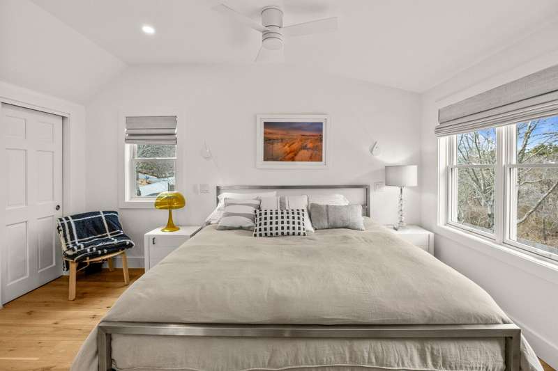 Welcome to the popular private neighborhood of Meadowview Heights in the West End of Provincetown. This 3bdrm/2fb Cape Cod home offers a unique opportunity to purchase a totally restored 'like-new' home where you will see that 'no detail has been left undone.' Set on a rectangular lot just shy of 1/4 acre, there is plenty of parking, room to garden, and possible future development of a garage with an accessory use unit for rental. In addition, enjoy the summer season on the generously sized deck accessible from the first-floor double sliders along the kitchen-dining area.Enjoy all the high-end interior detail immediately apparent upon entering the front door into the common area living, dining and kitchen: white oak flooring, cathedral ceilings with Velux skylights, Mitsubishi split cooling-heating units, propane fireplace, white kitchen countertops with breakfast bar, Thermador stainless appliances with propane range-cooktop, large farmer's sink and more. Exit down the hall to two go