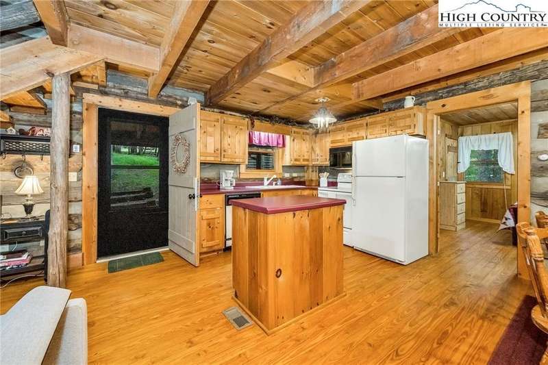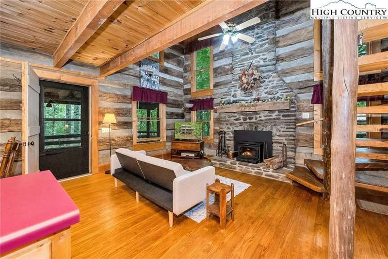 Rustic Charm in the Beloved Stonebridge Community. Experience the warmth and character of this beautifully crafted antique-style log cabin, tucked away in the highly desirable Stonebridge neighborhood. This two-story retreat combines classic log home craftsmanship with the comfort of modern amenities, making it the perfect High Country escape. The main level welcomes you with a bright, open layout where the kitchen, dining, and living areas come together seamlessly. The kitchen offers a spacious island, ample storage, and direct access to a full-length back porch. In the great room, a striking two-story stone fireplace sets the tone for cozy evenings by the fire while walk out access to the covered front porch is perfect for dining al fresco or relaxing in the cool mountain breeze. Also on the main floor, you'll find a comfortable primary suite with private full bathroom, and a convenient laundry closet. Upstairs, a roomy sleeping loft with its own full bath provides plenty of space for guests or family. Outdoors, porches create multiple spots to enjoy grilling, entertaining, or simply soaking up the peaceful wooded surroundings with seasonal mountain views. Centrally located between West Jefferson, Boone, and Blowing Rock, this home offers the perfect blend of quiet mountain living and easy access to shopping, dining, and outdoor adventures. Schedule your showing today and make this inviting log home your vacation retreat, year-round residence, or weekend getaway in the mountains.