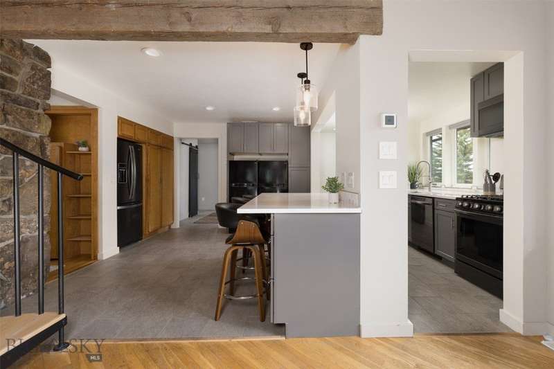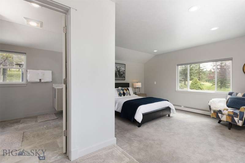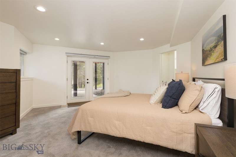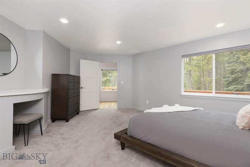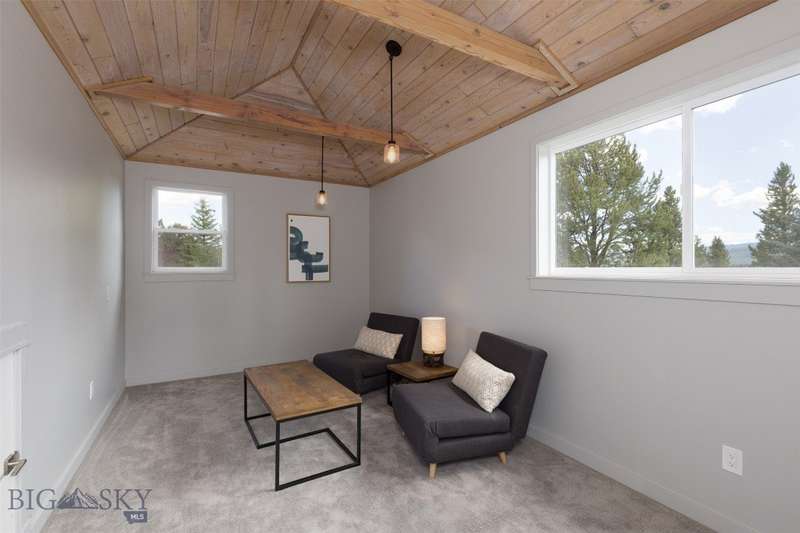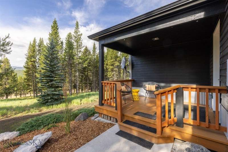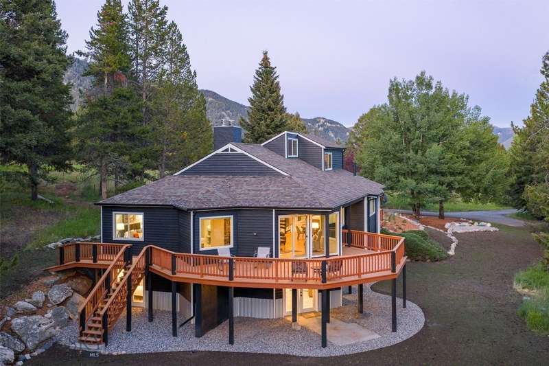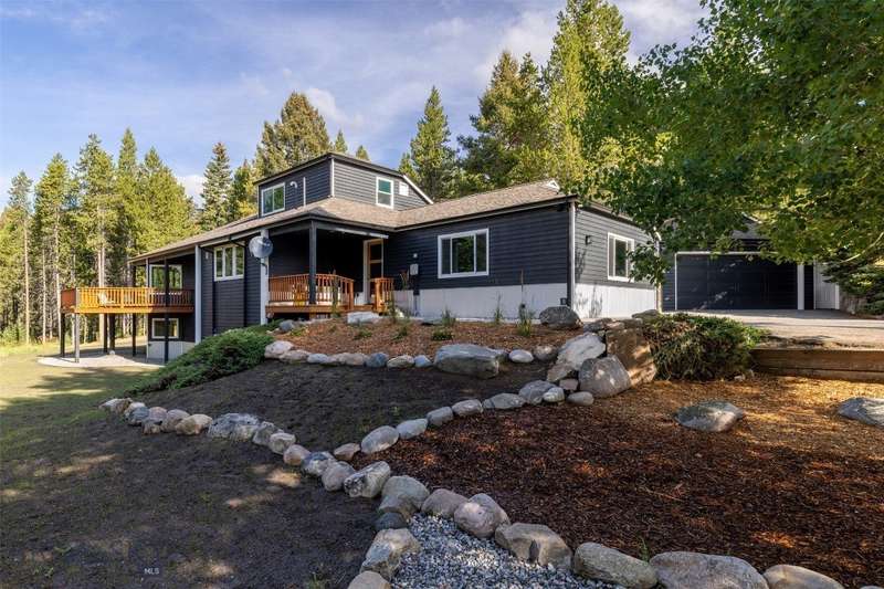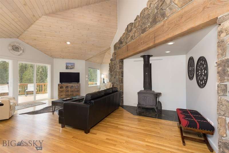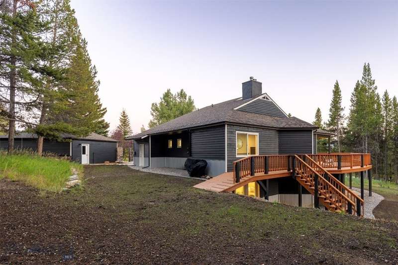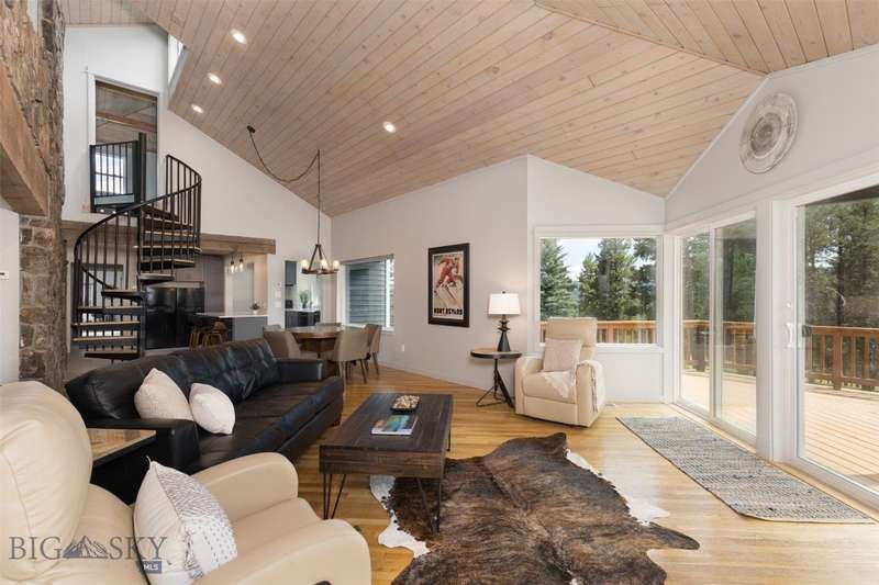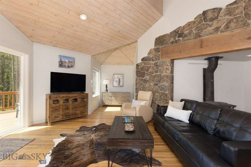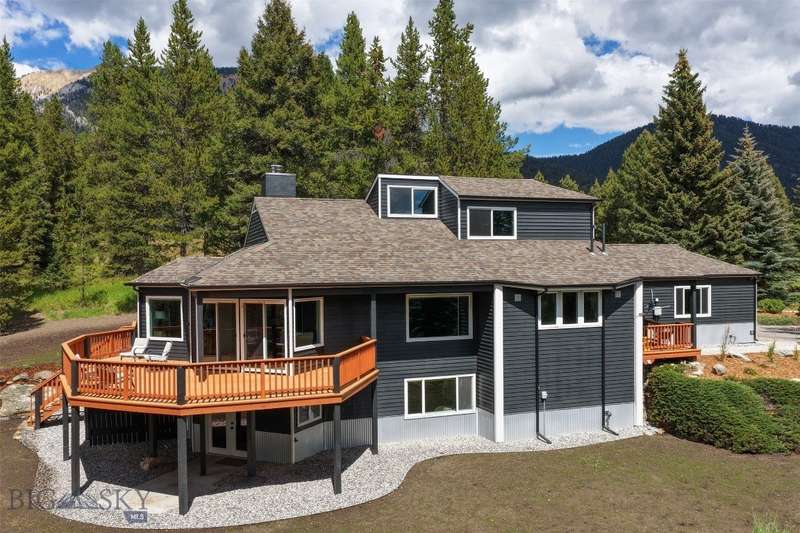 Come see this unique property on 10 acres, with Lone Mountain Ranch ski trails right next door! Located between the Meadow and Mountain Village areas of Big Sky, this three-level home offers five bedrooms, five bathrooms, an entertaining kitchen, and an expansive deck, all in a tranquil, mature tree setting. There are glimpses of the original construction, with timber and rock accents, combined with a flourish of modern updates from a recent remodel. The spacious upper-level room could easily serve as an office, art studio or bonus room. This amazing property is being sold furnished as seen and has the Nordic ski and hiking trail system of the Lone Mountain Ranch adjacent to the property and the resident elk herd is often bedded and grazing onsite. Skiing at the Big Sky Resort is ten minutes away as is fishing and whitewater rafting on the Gallatin River, and the Town Center with all Big Sky area amenities is just down the road, for summer concerts, farmers' market, movie theatre, restaurants and shopping.